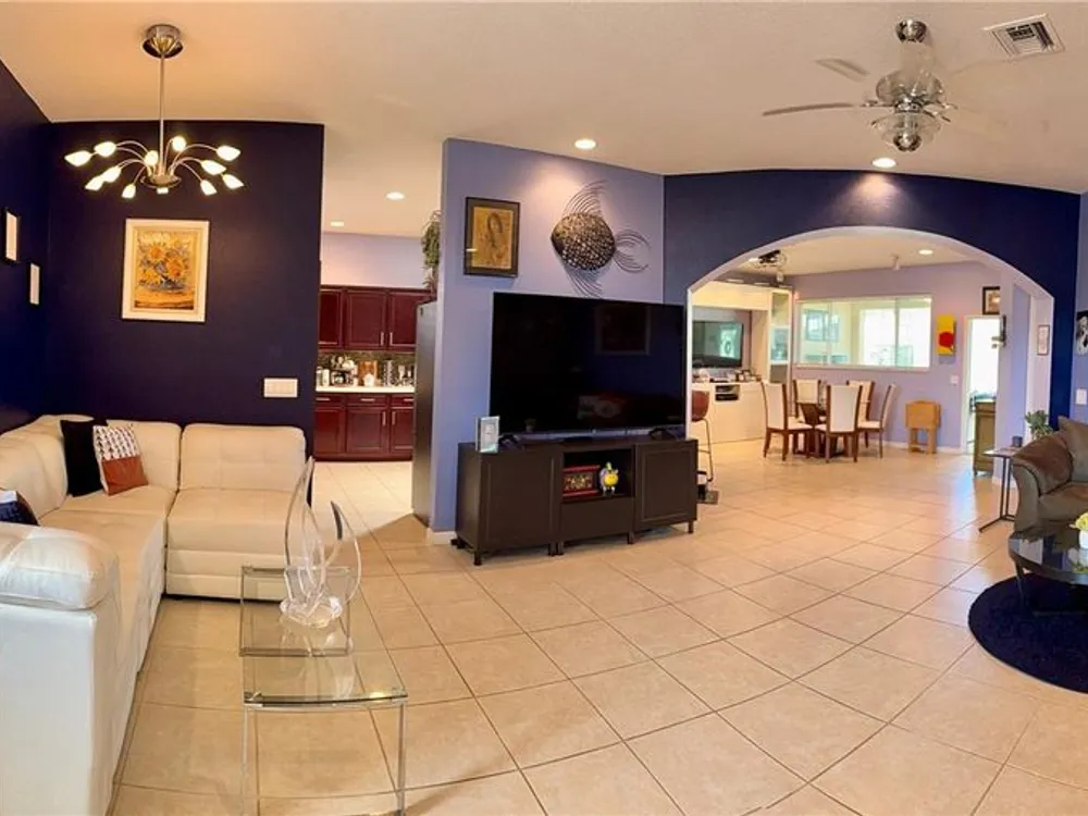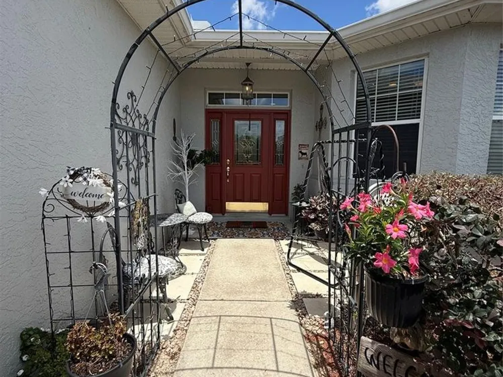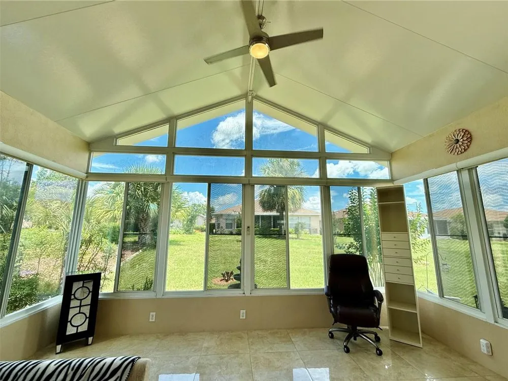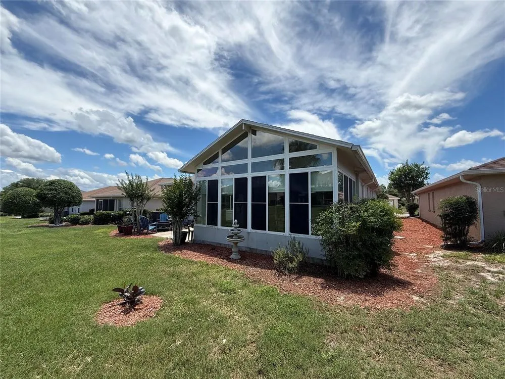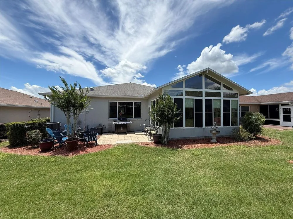 WOW total of 2,142 sqft under air with the HUGE addition! Welcome to this beautifully maintained 2 bedroom, 2 bathroom, 2-car garage home featuring a flex room ideal for a home office, study, or guest space. With an open-concept layout, a dedicated dining area, and a stylish modern built-in, this home perfectly blends comfort and functionality. The kitchen is a chef’s delight, boasting solid surface Corian countertops, an integrated sink, newer appliances including a gas stove, and skylights in the kitchen and bathrooms that bring in abundant natural light. The primary suite features custom tile flooring, a custom-designed closet, and a skylight ensuite bathroom for a spa-like feel. Enjoy luxury touches like a Bose surround sound system, ceiling fans throughout, and dimmable lighting in most rooms. Step outside to your paved backyard patio retreat complete with a gas BBQ grill — directly connected to the home’s gas line — perfect for outdoor entertaining. The enclosed lanai leads to a massive, air-conditioned sunroom addition with Aspen-style windows, remote-controlled window treatments, and vaulted ceilings, adding extra living space and elegance, all climate-controlled for year-round comfort. The garage is equipped with a workshop setup, ideal for hobbyists or extra storage. And for added convenience, the HOA covers all outdoor landscaping, lawn maintenance, and bush trimming, so you can enjoy a low-maintenance lifestyle in this stunning Florida home. Don’t miss this rare opportunity to own a home that offers both indoor luxury and outdoor ease! All information is taken from the taxes.