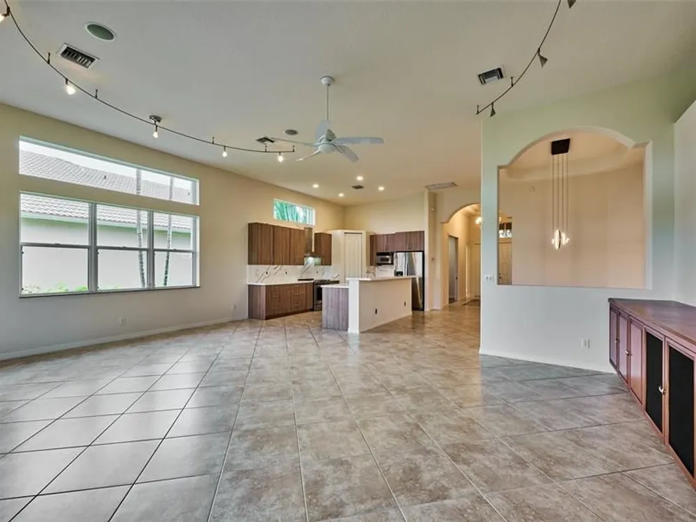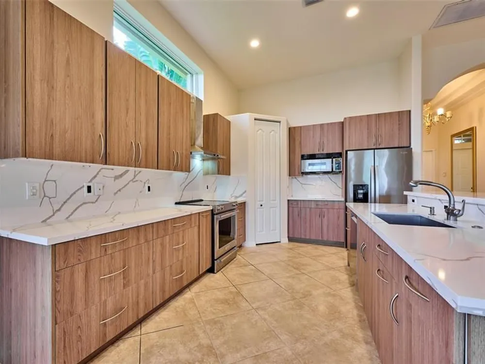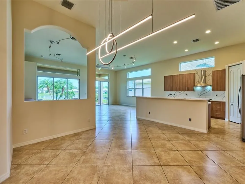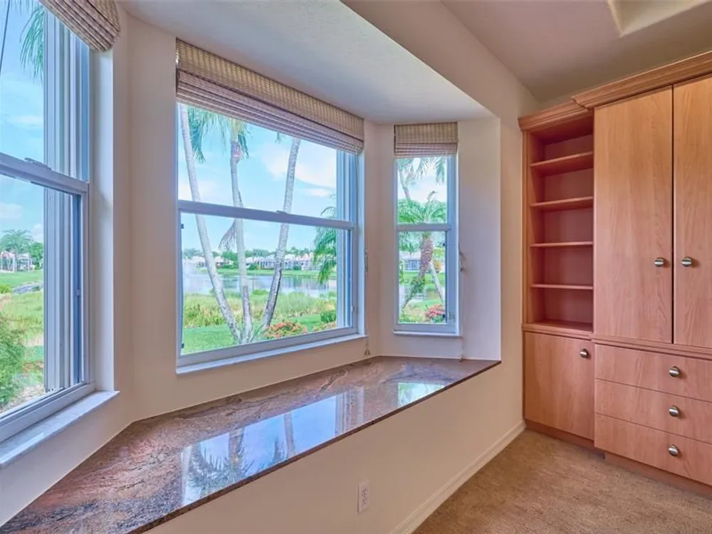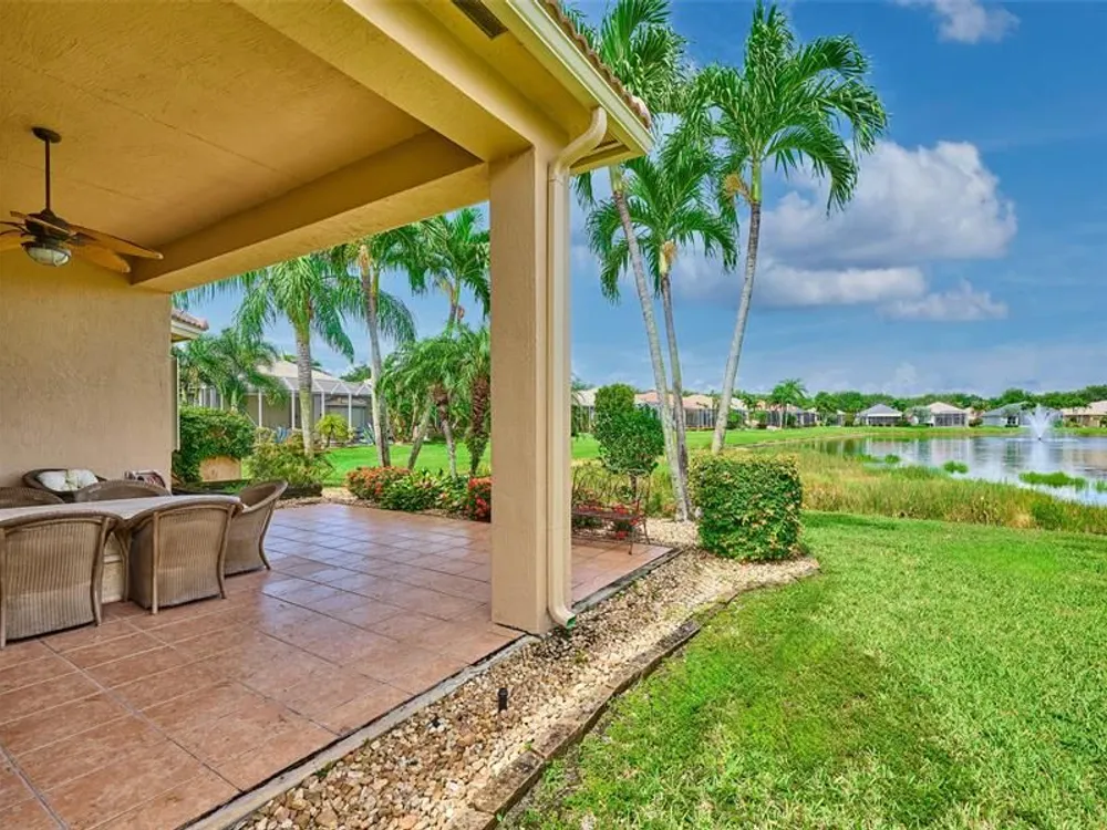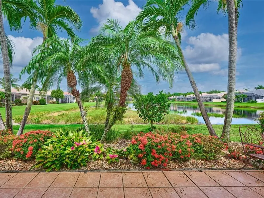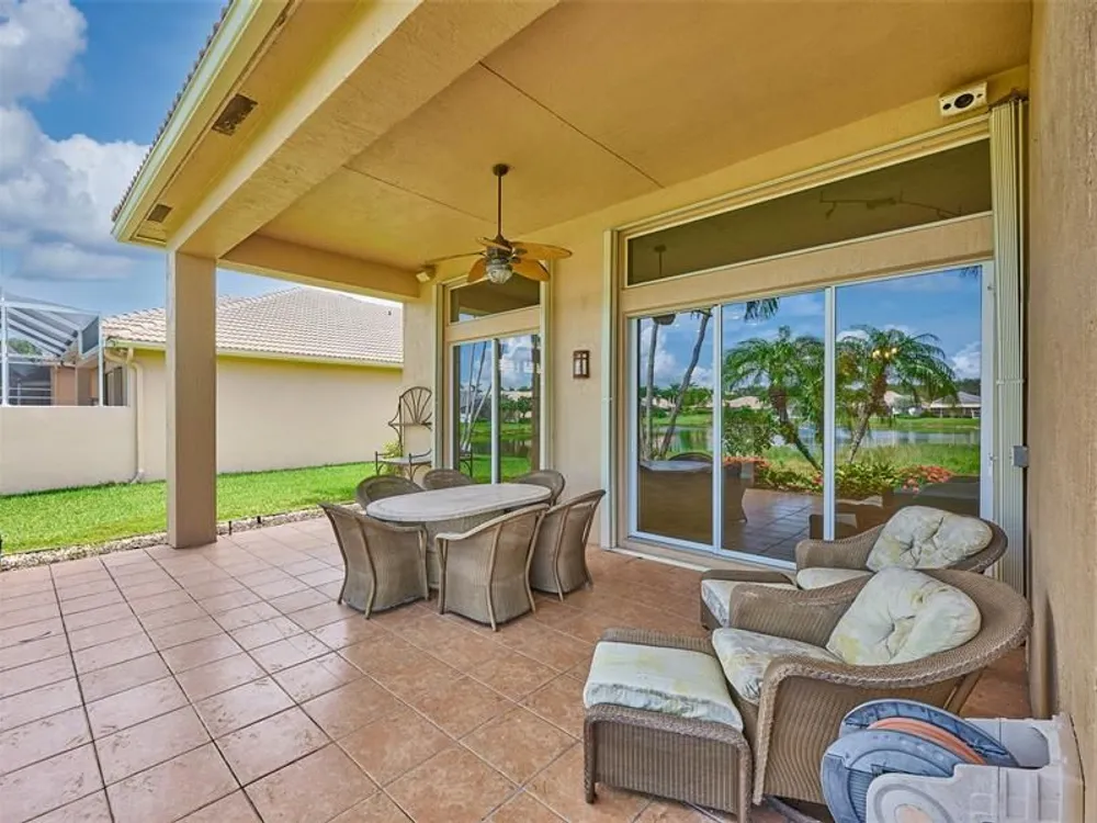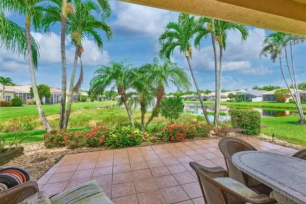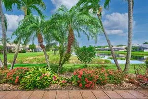 Welcome to Mizner Falls in Boynton Beach. This long lake waterfront view home, with a NEW ROOF (Dec 2024), offers 3 bedroom and 2 1/2 baths, plus a hobby/workout room. (3rd bedroom being used as an office). This home was built for entertaining with its open floor-plan, and glass doors to the open patio. It has majestic Sunset views. The remodeled kitchen offers quartz countertops and stainless steel appliances. The master bathroom was remodeled last year. A/C and W/H were replaced in 2021. Gas Water Heater and Dryer. Gas line for Barbecue on patio too. Hurricane accordion shutters. This over 55 community offers activities and clubs throughout the year. The location of the community makes it easy for shopping, restaurants, highways and the PBI Airport. The Beach is only minutes away.