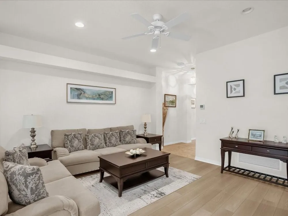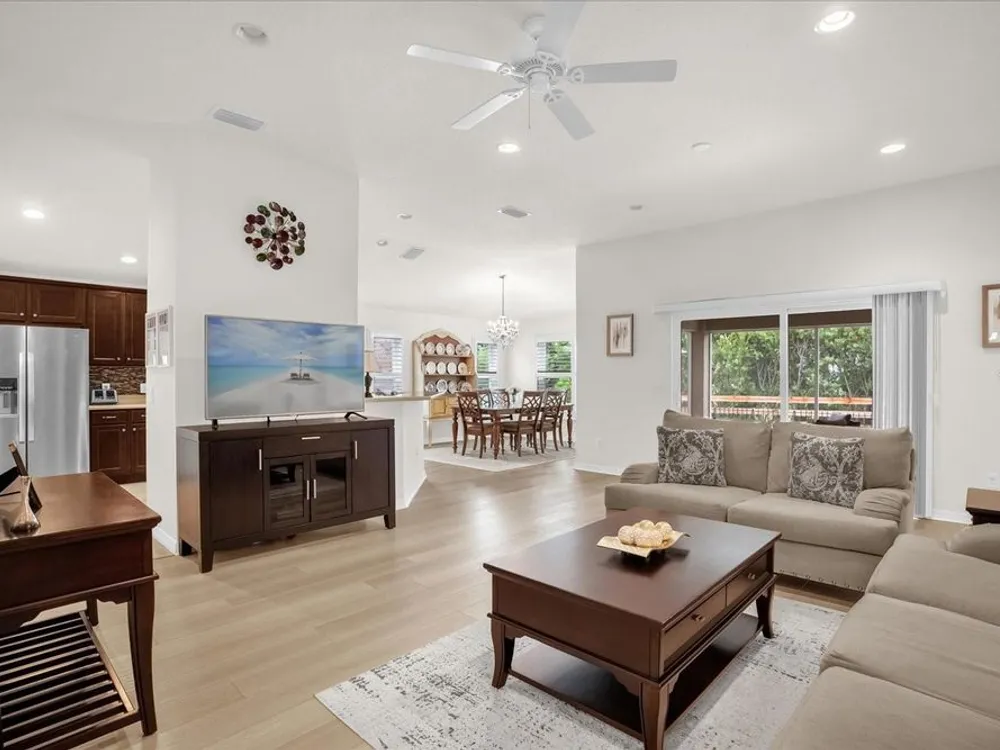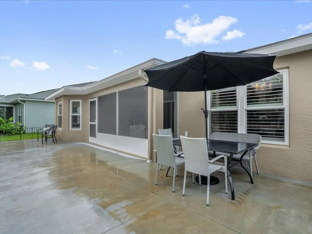 Welcome to the resort-style, maintenance-free community of Lakeside Landings! This gated, family-friendly neighborhood neighbors The Villages and offers an incredible lifestyle filled with comfort and fun. Residents enjoy access to an impressive 13,000 sq. ft. clubhouse featuring a huge resort-style pool, fitness center, billiards and card rooms, and a library. Host your special occasions in the elegant banquet hall complete with a dance floor and catering kitchen. Outdoor amenities include a spa, cabana, putting green, tennis and pickleball courts, and a playground for the little ones—plus a full calendar of community activities! This immaculate 3-bedroom, 2-bathroom single-story home welcomes you with great curb appeal, professional landscaping, and a large covered entry. Inside, you’ll find an inviting open floor plan with hardwood luxury vinyl flooring throughout—no carpet! The well-appointed kitchen features custom cabinetry, ample counter space, abundant storage, and new appliances. The spacious primary suite offers a walk-in closet and ensuite bath, while split bedrooms ensure added privacy for family or guests. Enjoy outdoor living on the extra-large back patio, and take advantage of the 2-car garage for convenience and storage. This beautiful home perfectly combines low-maintenance living with resort-style amenities—offering the best of Florida living at Lakeside Landings!