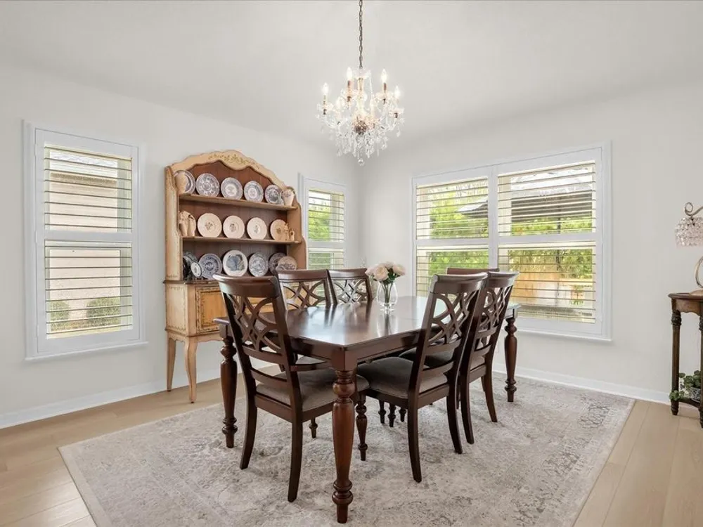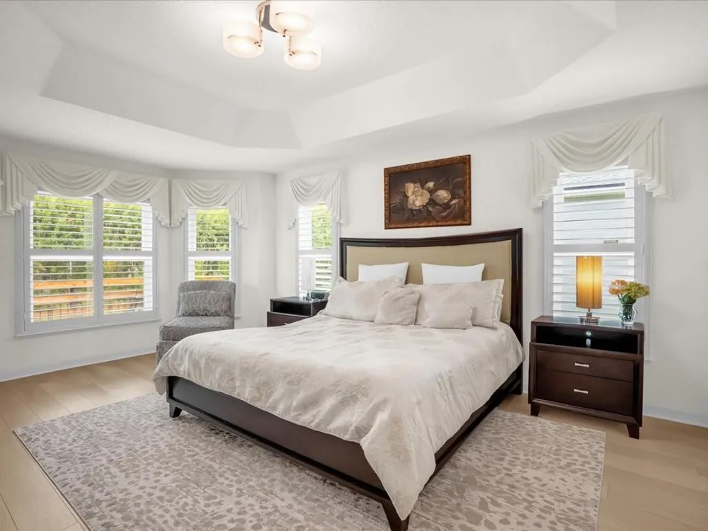 - High Ceilings, Kitchen/Family Room Combo, Living/Dining Room, Open Floorplan, Main Level Primary, Stone Counters, Tray Ceiling(s)