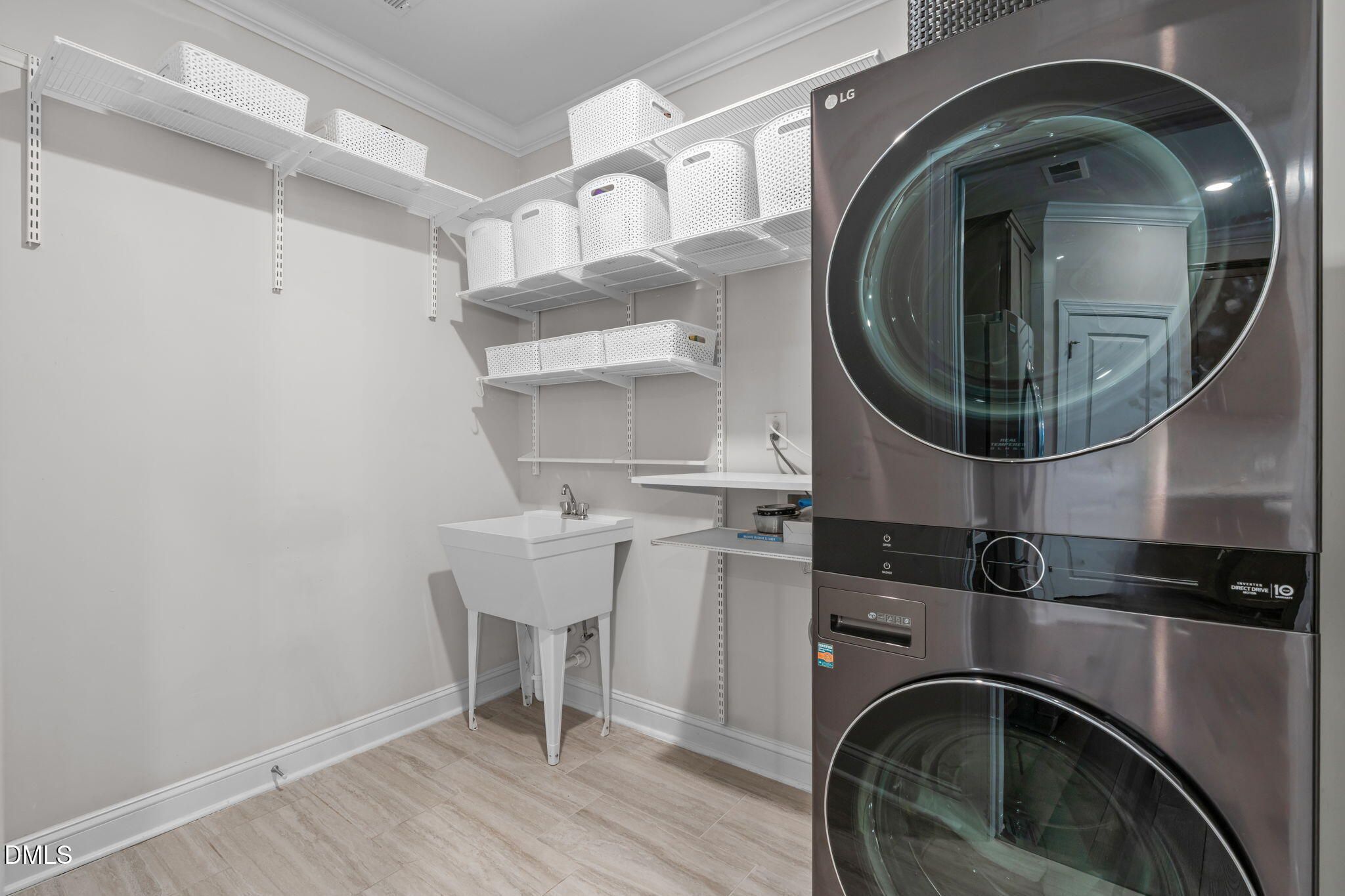 - Built-In Gas Range, Dishwasher, Gas Range, Microwave, Range Hood, Refrigerator, Stainless Steel Appliance(s), Tankless Water Heater, Oven, Washer/Dryer Stacked