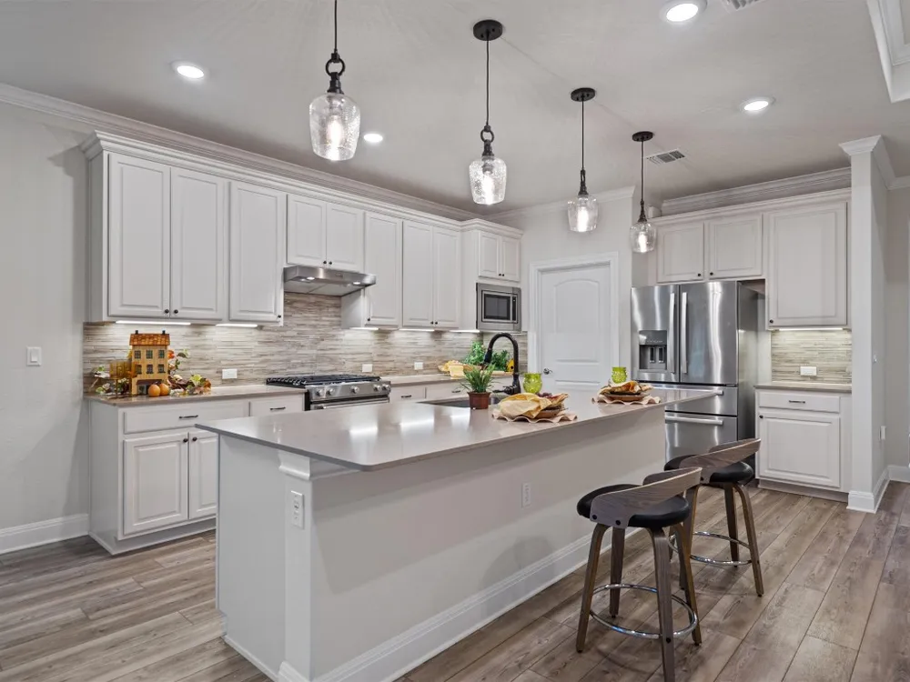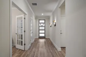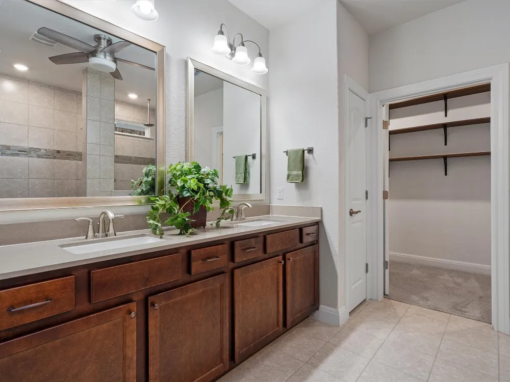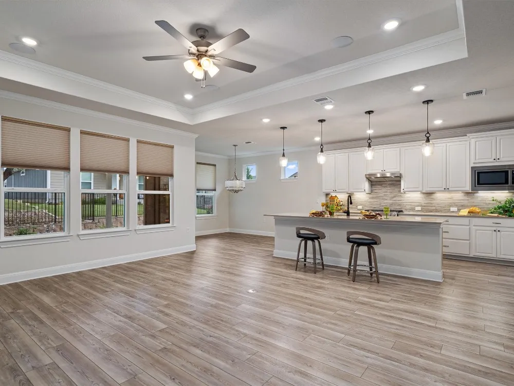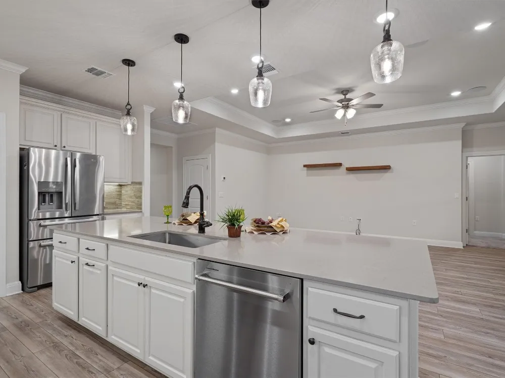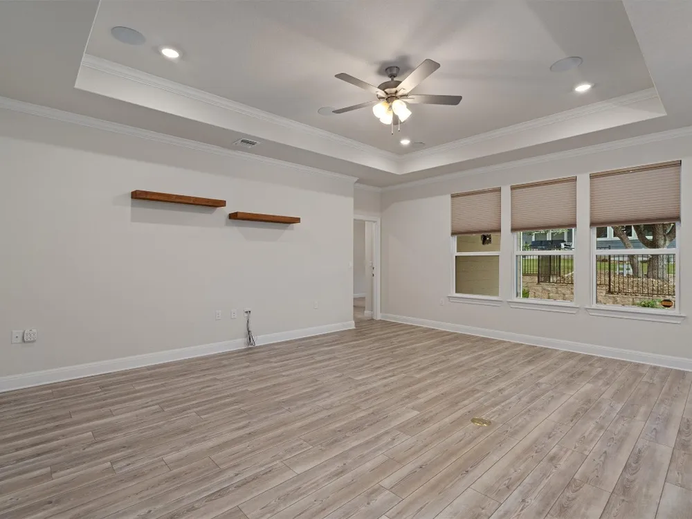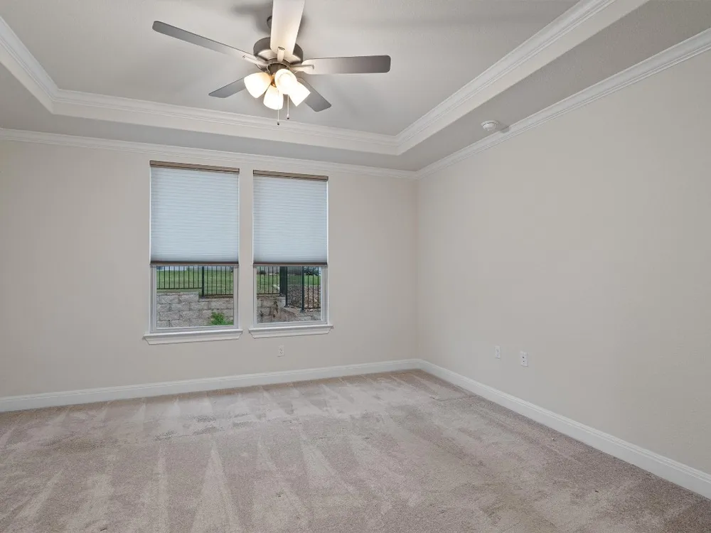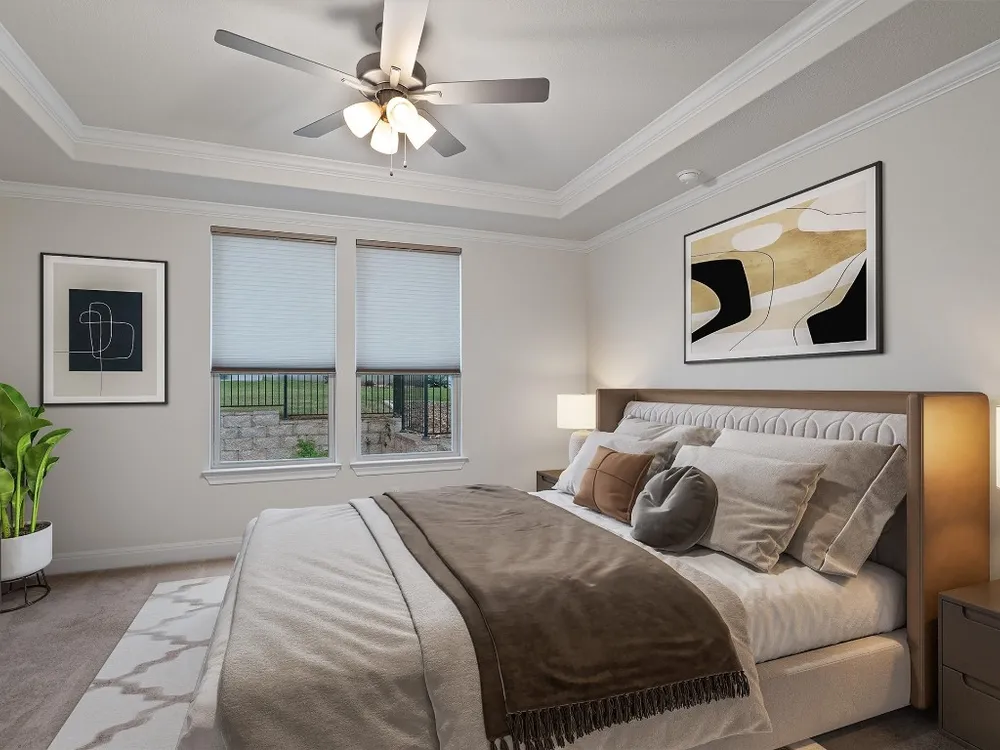 - Breakfast Bar, Tray Ceiling(s), Ceiling Fan(s), Crown Molding, Double Vanity, Entrance Foyer, French Door(s)/Atrium Door(s), High Ceilings, In-Law Floorplan, Kitchen Island, Main Level Primary, Open Floorplan, Pantry, Quartz Countertops, Recessed Lighting, Walk-In Closet(s)