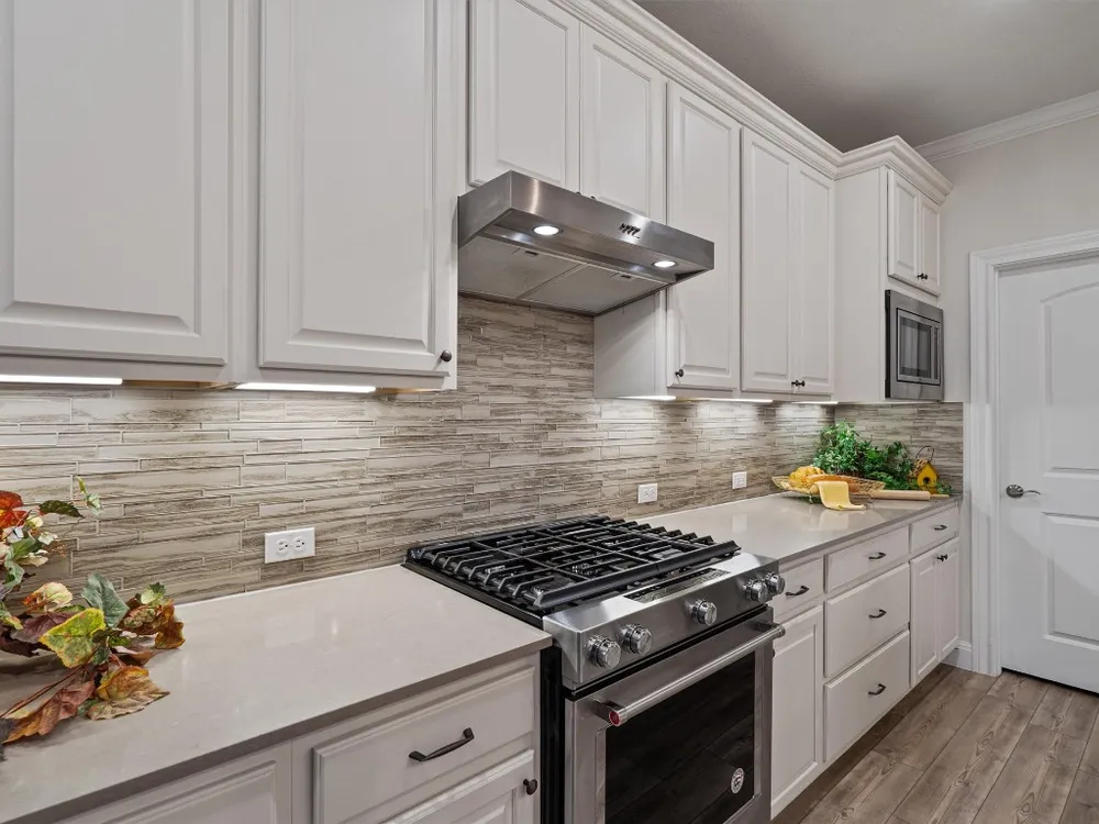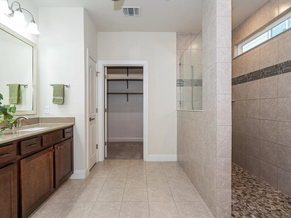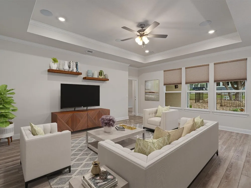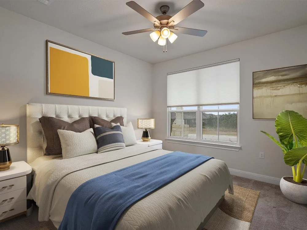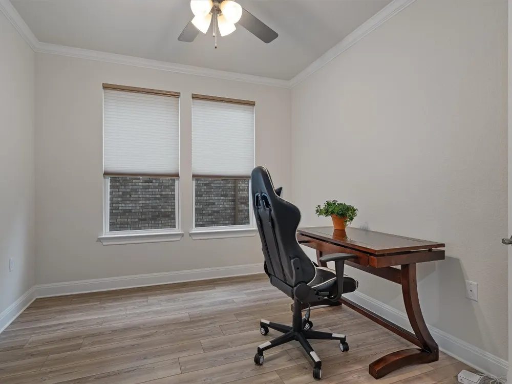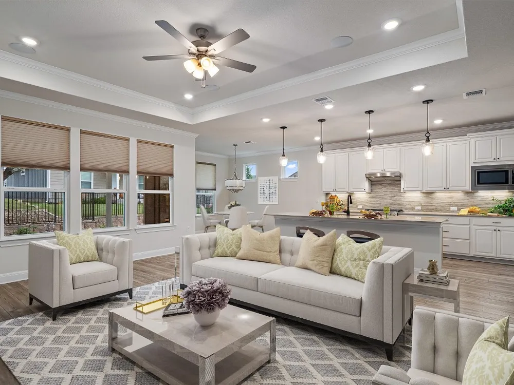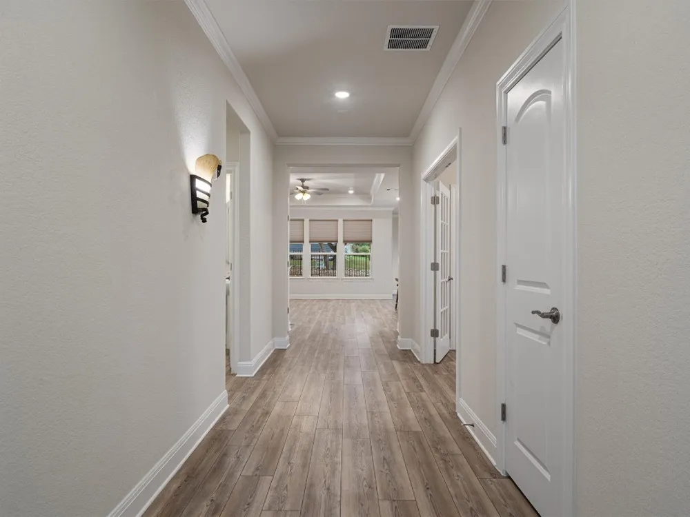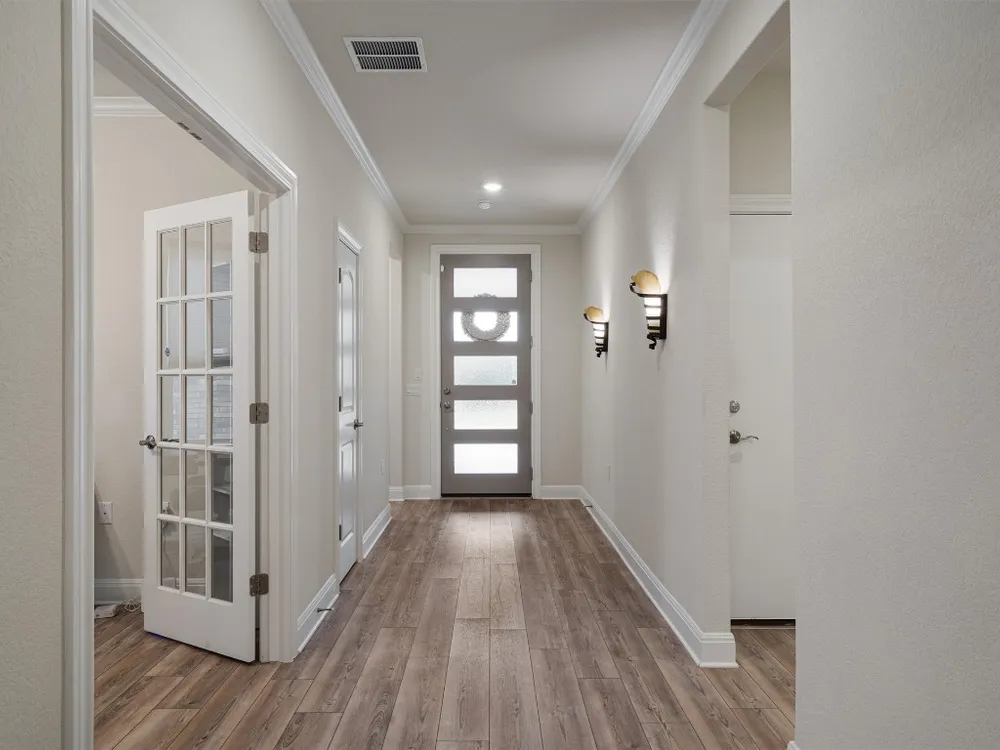 - Breakfast Bar, Tray Ceiling(s), Ceiling Fan(s), Crown Molding, Double Vanity, Entrance Foyer, French Door(s)/Atrium Door(s), High Ceilings, In-Law Floorplan, Kitchen Island, Main Level Primary, Open Floorplan, Pantry, Quartz Countertops, Recessed Lighting, Walk-In Closet(s)