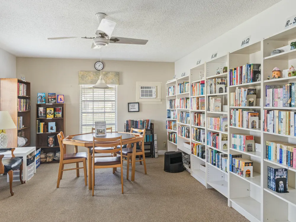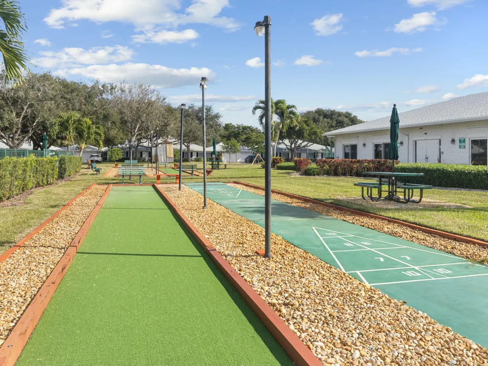 - Bocce, Clubhouse, Community Room, Fitness Center, Game Room, Library, Pickleball, Picnic Area, Pool, Shuffleboard, Street Lights