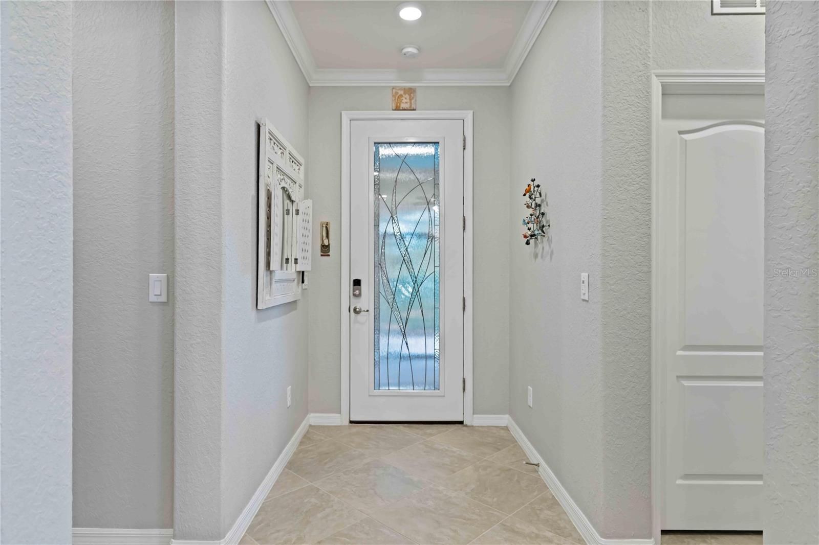 Come see this Charming 8 year old single family home located in an active resort style community. Abundant light in this spacious open floor plan with an expansive preserve/waterfront view. 2 Bedrooms, 2 Baths, a Flexroom/Den, and full Dining-room, stainless steel appliances, luxury vinyl master bedroom flooring, diagonal tile flooring throughout. The Upgraded 30' extended lanai and the screened front porch add even more tranquil space to this already open floor plan. The $60k added value upgrades include Hurricane Accordion Shutters, Impact glass designer front door, the 30' Extended Lanai with new screens and premium pavers, 220v dedicated electric to the Hot Springs Spa hot tub, luxury vinyl master bedroom flooring, expanded driveway, gutters and baffles, an added kitchen pantry, beautiful glass backsplash, garage storage racks, attic stairway with attic flooring, dedicated electric outlet in garage, upgraded ceiling fans, timers, and several technological home features. The master suite has 2 walk-in closets and en-suite bathroom with double sinks. What you will love about this home is the location - nestled in Sarasota National, has an Audubon International Certified Signature Sanctuary Golf Course in this gated community with 1,300 acres of preserves and lakes. From this waterfront view, you will witness bird migrations, eagles, osprey, turtles, hawks, alligators, otters, sandhill cranes, bobcats, panthers and much more! If you are looking for amenities, look no further as Sarasota National has resort style living! Exercise at the fitness center or lap pool, play pickleball, bocce or tennis, swim in the resort pool, relax in the hot tub and relax under an umbrella, participate with others in the game rooms, dine and drink at the tiki-bar, outdoor or indoor full-service dining room during themed nights such as Prime-Rib night. The dog park has recently been upgraded, there’s a playground for the family, an event lawn, organized weekly themed events, music nights, trivia, bingo, and year-round fun, all ready to fill your leisure time. The coffee lounge is another place to relax and grab a book. The Hurricane accordion shutters and a beautiful hurricane impact front door will ease your mind of any worries - 15 minutes and ready! This Estate home is also maintenance grounds free - no worries about irrigation timers, hedges and trees to be trimmed, mulch placed in the gardens, mowing, lawn treatments….you can be away a week or months without stressing about your home - a well-deserved carefree lifestyle! Basic cable is included too! The granite counter kitchen has plenty of space with a larger working kitchen area with the new pantry added. The light and airy open space floor plan makes it comfortable to entertain both inside and out. Very few homes are currently for sale in this lower HOA community that does not require any golf resort fees. Conveniently located near Wellen Park and beaches. Partially furnished, photos show some furniture no longer there.