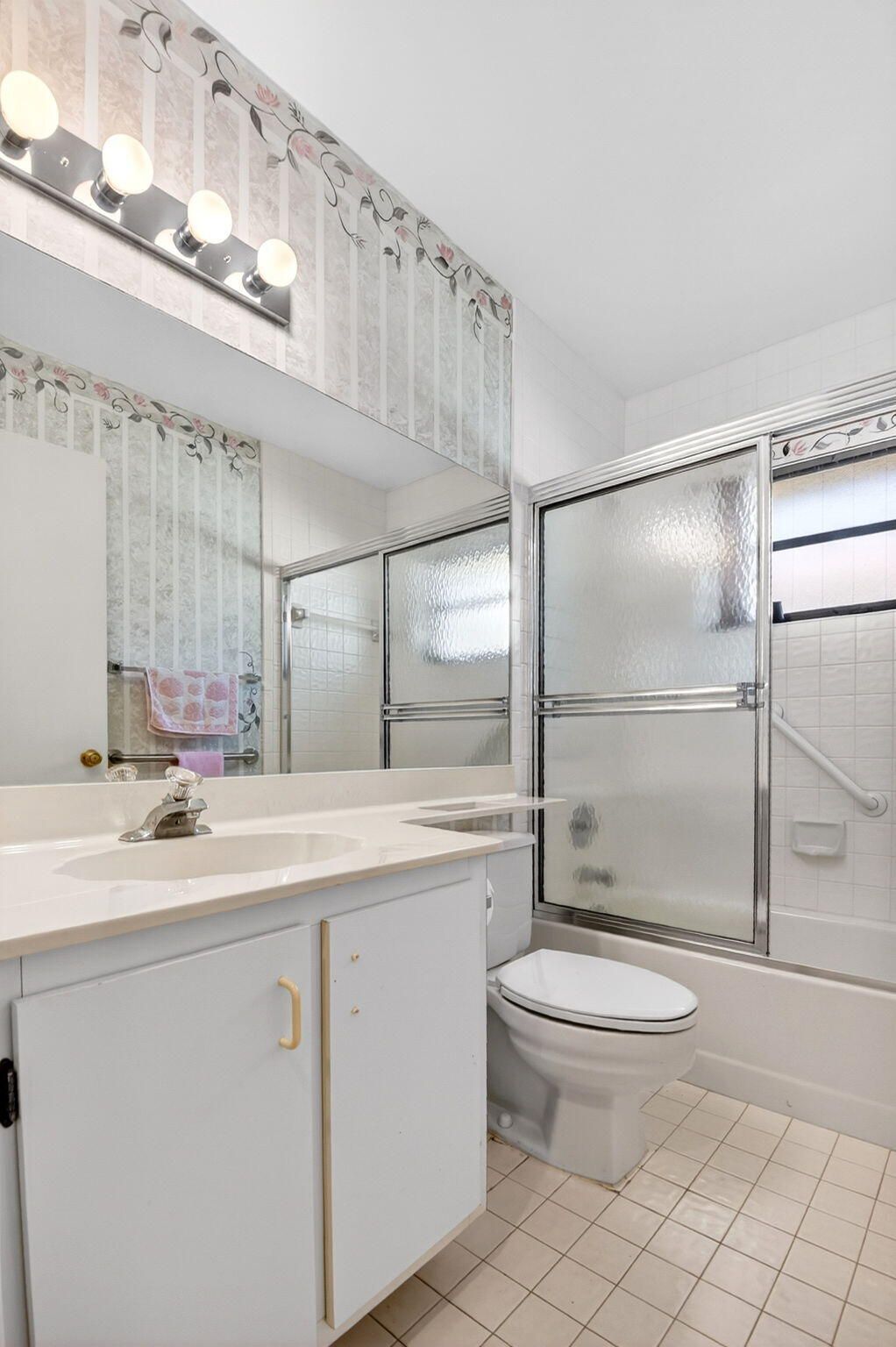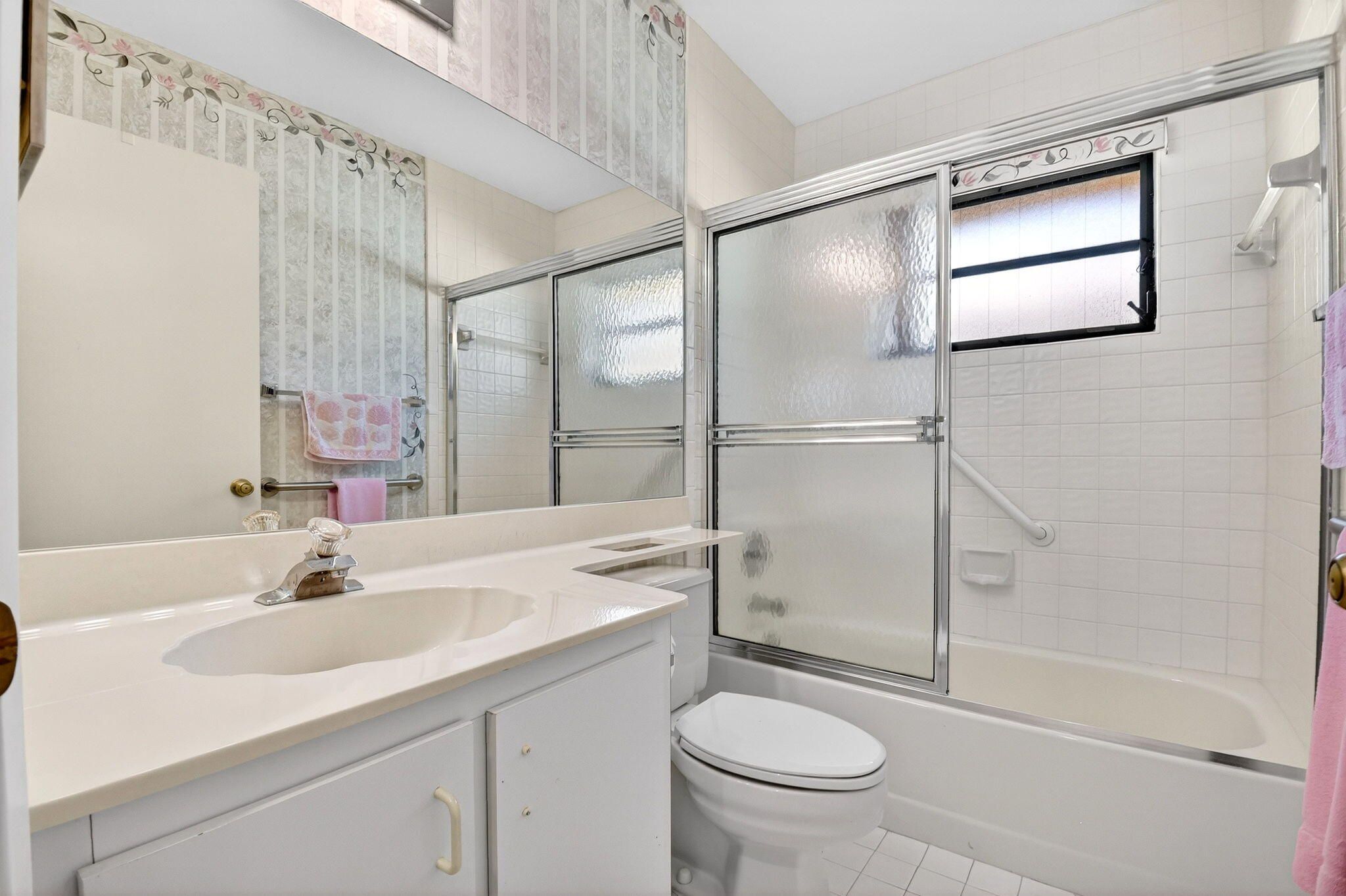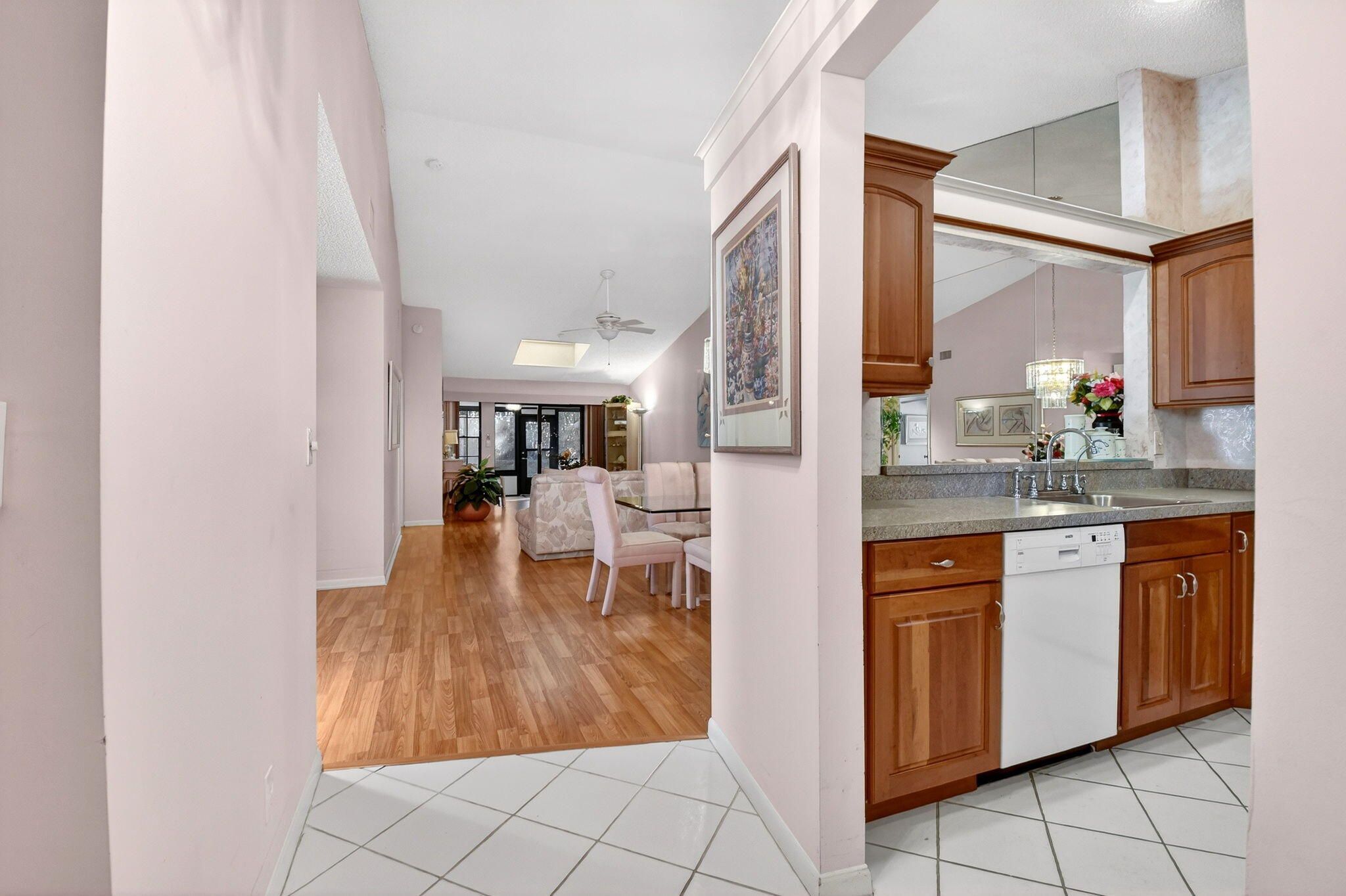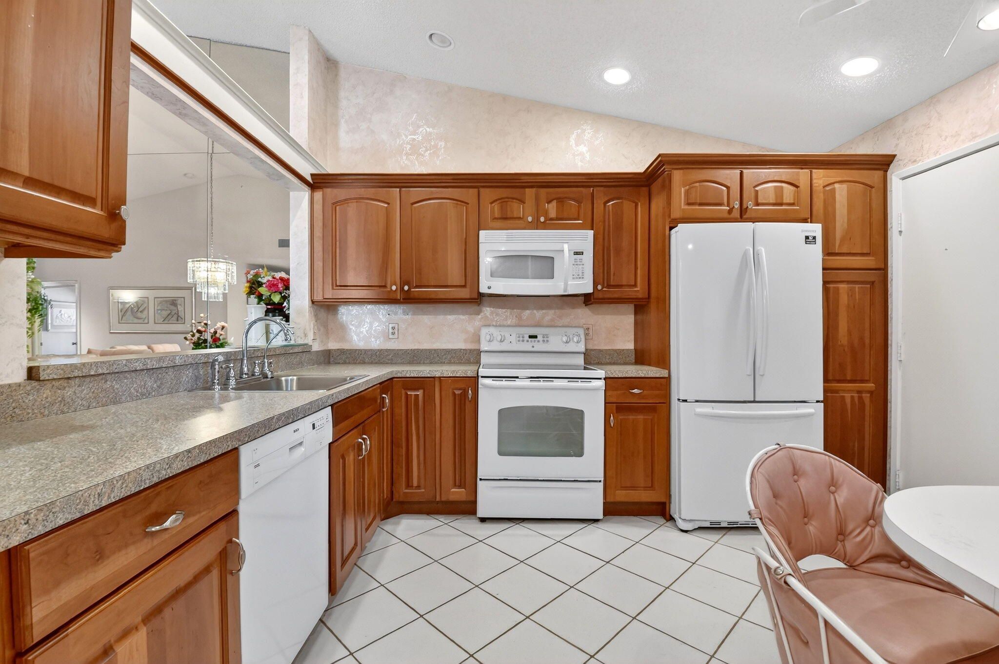 Well-kept 3BR/2BA villa with a one-car garage and a large 300 sq ft enclosed lanai in the desirable 55+ Palm Chase Lakes community. This light-filled home offers two bedrooms plus a flexible den or third bedroom, skylights, and a 2024 A/C. Enjoy resort-style living with a clubhouse, fitness center, pools and sauna, pickleball, tennis, billiards, shuffleboard, and an active social calendar. Ideally located close to I-95, the Florida Turnpike, shopping, dining, and within walking distance to houses of worship.