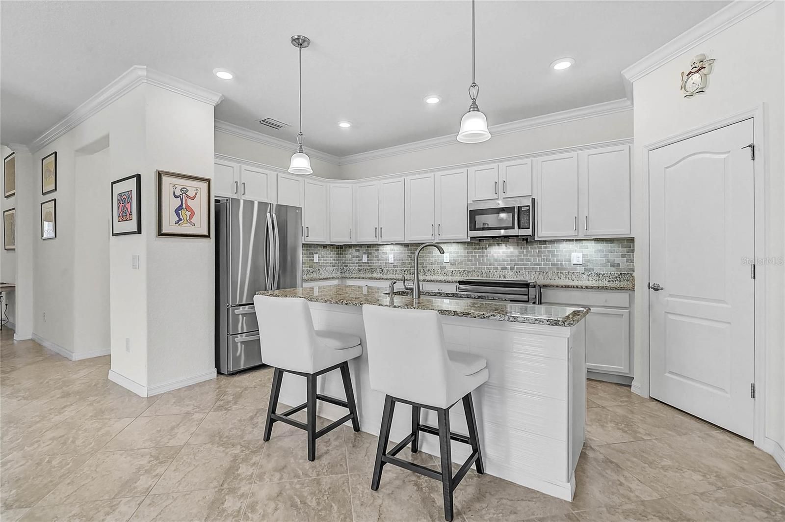 Tucked within the resort-inspired setting of Sarasota National, this inviting Crooked Creek Drive residence offers a lifestyle where mornings begin with birdsong over preserved greenspace and evenings settle into quiet moments beneath the Florida sky. Located in Venice, Florida, this home blends relaxed elegance with effortless access to beaches, golf, and coastal charm. From the moment you arrive, the setting feels special. A paver driveway leading to the front door creates beautiful curb appeal, while the front entry overlooks open greenspace and the screened front porch becomes a favorite place for sunrise coffee or a peaceful pause at the end of the day. Step inside to discover high ceilings, crown molding, and abundant natural light, all enhanced by plantation shutters throughout—creating a timeless, airy atmosphere that immediately feels like home. At the heart of the home, the open kitchen is designed for gathering and entertaining, featuring granite countertops, a pantry, and a seamless connection to the main living spaces. Whether hosting family and friends or enjoying quiet evenings at home, this layout makes every moment feel effortless. Sliding glass doors lead to the paver-screened lanai, where tranquil preserve views create a private outdoor retreat—perfect for reading, dining, or unwinding in nature’s calm. The primary suite is a true sanctuary, featuring two walk-in closets with custom shelving, elegant Italian ceramic tile, and a spacious bath designed for relaxation. The bath includes a private water closet with an upgraded bidet system for added comfort, along with thoughtful finishes that elevate everyday routines. Two additional bedrooms, finished with Berber carpet, offer cozy guest spaces or flexible rooms for hobbies and work-from-home living. A cedar-lined coat closet adds character, while the laundry room with built-in shelving keeps daily life beautifully organized. With three tubs throughout the home, comfort and convenience are always close at hand. Beyond your front door, life at Sarasota National feels like a year-round getaway. Residents enjoy championship golf, resort-style pools, fitness amenities, scenic trails, and a vibrant social calendar—all within a beautifully maintained, gated setting. Just minutes away, downtown Venice invites you to explore boutique shopping, waterfront dining, and live music, while the Gulf beaches offer sun, sand, and unforgettable sunsets. Here, days are shaped by simple pleasures—morning walks through the community, afternoons at the beach, evenings on the lanai watching the light fade over the preserve. This is more than a place to live. It’s a place to slow down, connect, and embrace the best of coastal Florida living in one of Venice’s most beloved communities. Welcome home to a lifestyle that feels peaceful, purposeful, and perfectly Florida. ¤ Please see 3D Tour and Video ¤