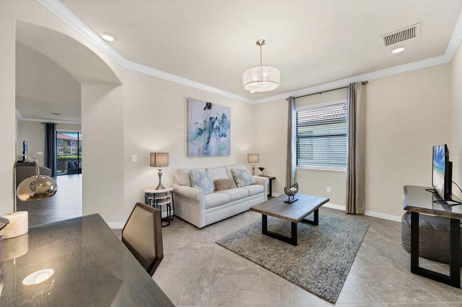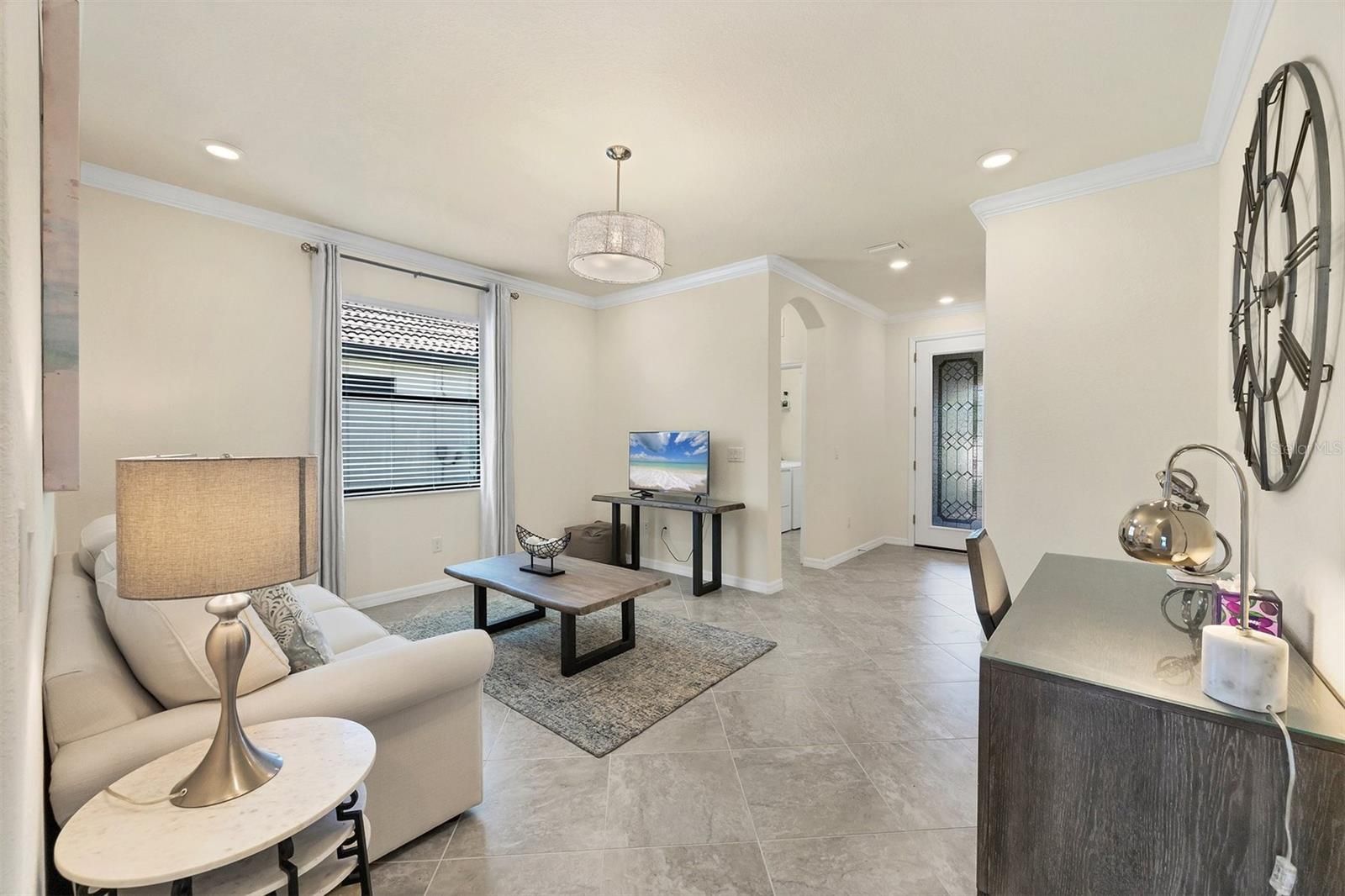 Panoramic lake views in a premier Venice golf community! Discover effortless elegance in this beautifully designed 2 bedroom, plus den residence. Tucked within a sought-after golf course neighborhood, offering the perfect blend of comfort, convenience and resort-style living. Step inside to a bright, open layout where the kitchen shines with white cabinetry, granite countertops, and stainless steel appliances. The living room, master suite, and screened lanai all showcase panoramic views of the tranquil lake, creating the ultimate backdrop for your morning coffee or evening unwind. The HOA takes care of your yard maintenance, so you'll enjoy a beautiful lawn without the work - leaving you more time to enjoy everything this vibrant community and the nearby Wellen Park area has to offer including the Atlanta Braves spring training park, upscale boutiques, and a variety of sidewalk cafes and gourmet restaurants. For those seeking an effortless move, the professionally designed furniture and decor package is available for purchase. Schedule your showing today. Start living the Florida lifestyle!