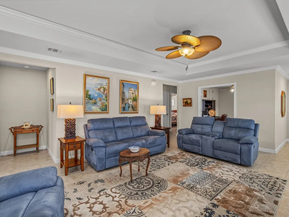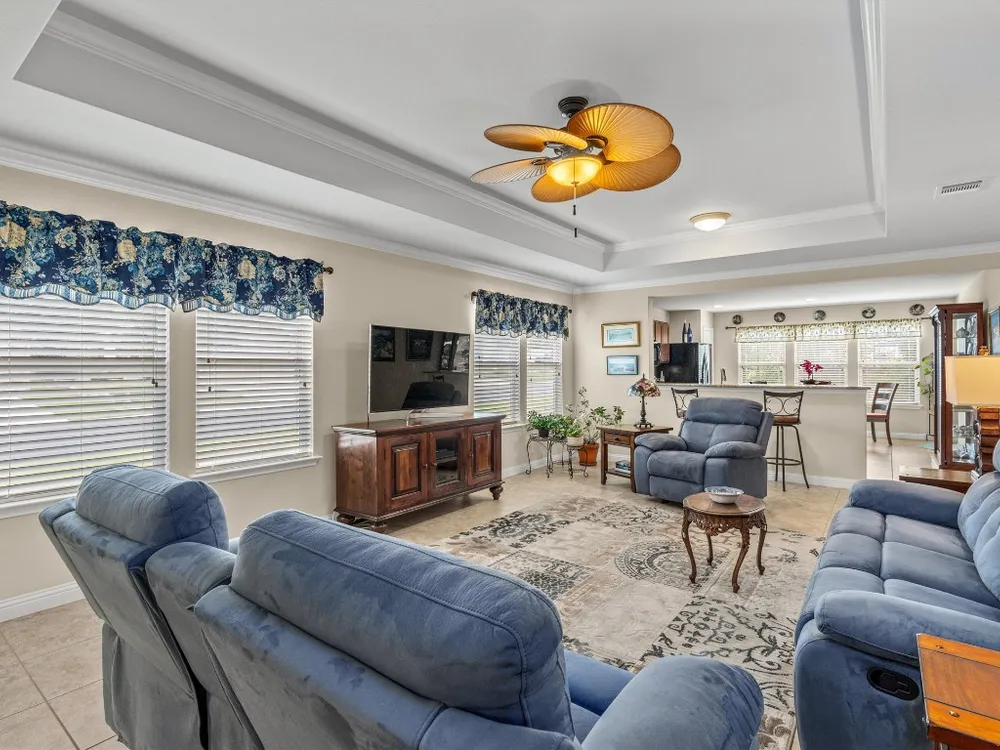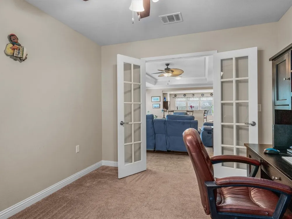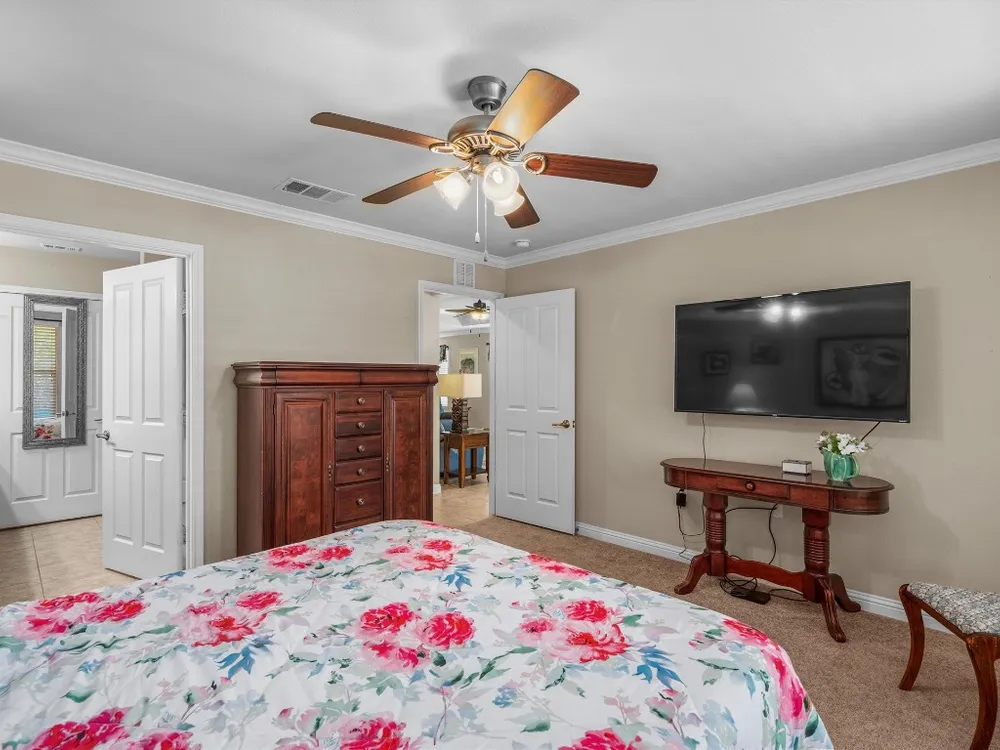 - Breakfast Bar, Tray Ceiling(s), Ceiling Fan(s), Crown Molding, Separate/Formal Dining Room, Double Vanity, Entrance Foyer, French Door(s)/Atrium Door(s), Granite Counters, Multiple Dining Areas, Main Level Primary, Open Floorplan, Pantry, Recessed Lighting, Walk-In Closet(s)