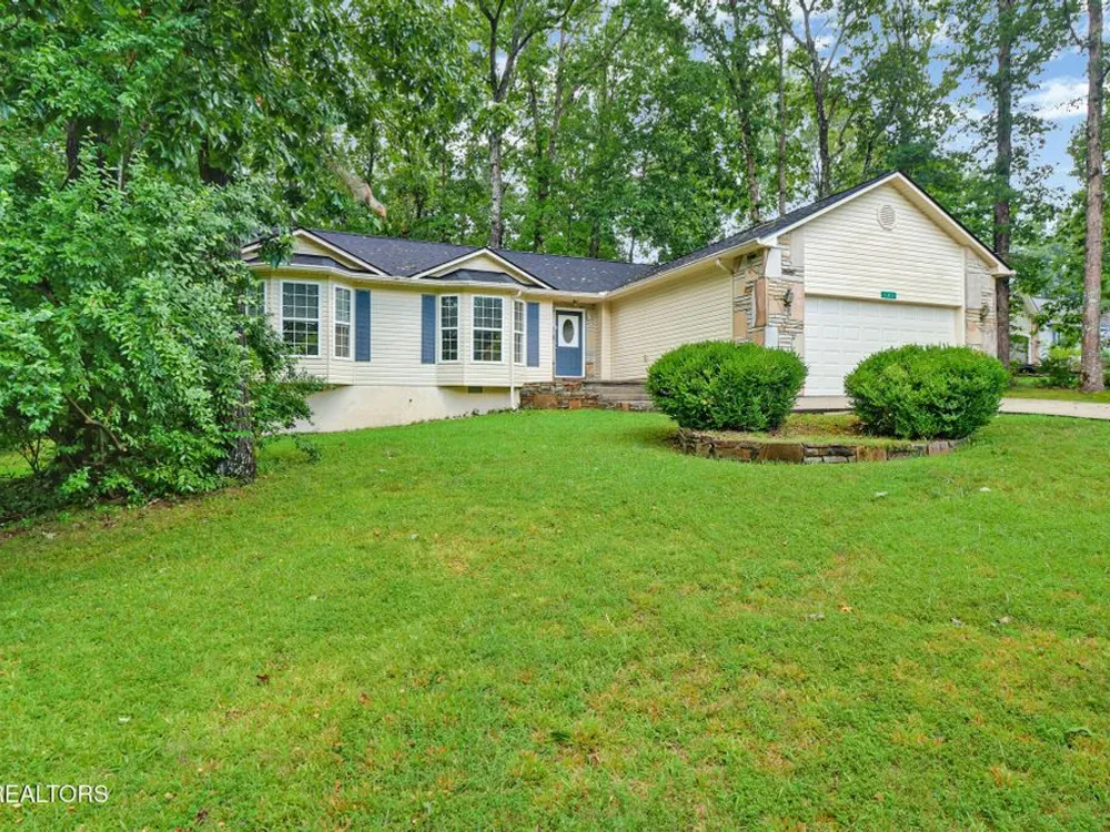 Consider the possibilities for this charming ranch in Tennessee's highly sought-after Fairfield Glade. Nestled in a quiet community that features five championship golf courses, multiple lakes, and dozens of hiking trails, this gem invites you to imagine what's next. Enjoy access to nearby resort-level amenities, and endless nature at your doorstep. This 3-bedroom, 2-bathroom treasure offers one level convenience on a large corner lot with maintenance-free living. Recent updates include a roof, water heater, a 2020s HVAC, garage door, and more. All appliances convey. The cozy living room opens to the dining area and a functional kitchen featuring custom-built cabinets in solid wood. This home features abundant storage throughout, including a large laundry-room/mud room, and an attached two-car garage that provides practical storage or a potential creative space that awaits your unique touch.The exterior offers the sanctuary of professional landscaping and a nature lover's dream. Enjoy your morning coffee, backyard cookout, or quiet evening retreat on the large deck out back, facing a deep lot which provides a rare opportunity for you to create your very own backyard paradise. Welcome home to the perfect fusion of natural history and potential. Consider the possibilities as you mold this neutral space into your dream home! Call today to schedule your exclusive viewing. This jewel won't last long.