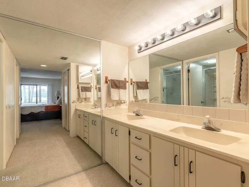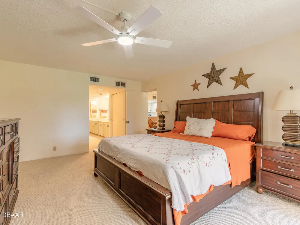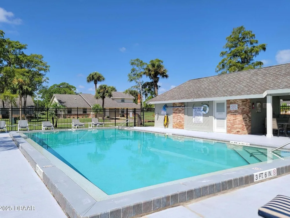 Maintenance-free living at its finest. Welcome to a beautiful 1st floor, 3-bedroom, 3-bathroom end unit condo in the highly sought-after gated community of Pelican Bay. This condo is a true gem, offering concrete construction for peace and quiet, with an open and spacious floor plan that includes two primary suites. The living room/dining room combo flows seamlessly into a generous rear patio accessible from both the living room and primary bedroom. You'll also appreciate the convenience of in-unit laundry. Living here means embracing a carefree lifestyle with the following included in your monthly fees: exterior building insurance and maintenance, ground care, water, sewer, trash collection, lawn care, pest control, roof maintenance (windows have been updated), plus access to heated community pool facilities and BBQ grills—all within a secure environment. You're just minutes away from the shoppings, restaurants, Embry Riddle and 15 minutes to the beach.
