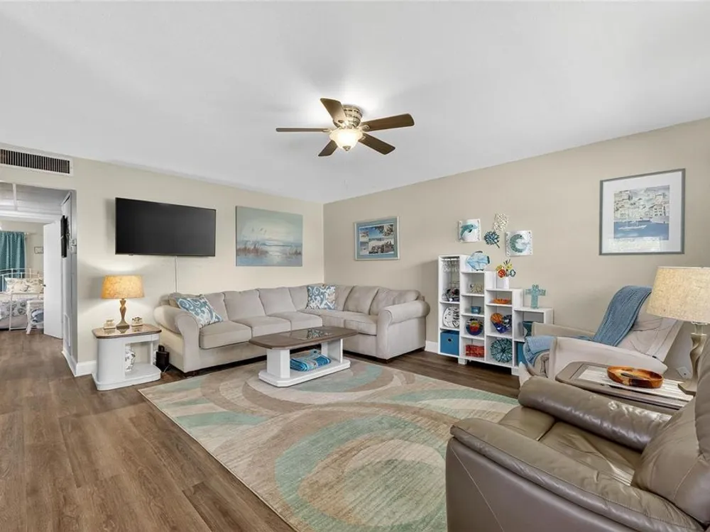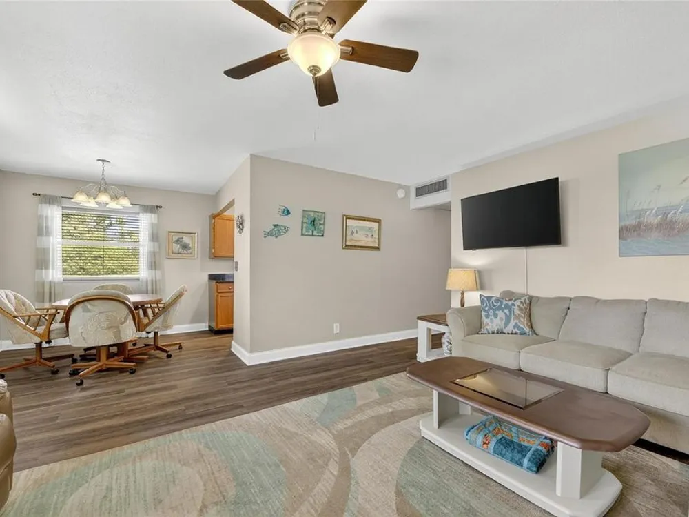 Beautifully Renovated Condo in Kings Point – Florida’s Premier 55+ gated community. Move right in and start living the lifestyle you deserve! This spacious, TURN-KEY FURNISHED home has been thoroughly updated, blending modern elegance with everyday comfort. All you'll need is your toothbrush to start living the dream. Step inside to an open, light-filled layout featuring luxury wood-look vinyl plank flooring and 6" baseboards. The chef’s kitchen will impress with sleek granite countertops, rich hardwood cabinetry, a breakfast bar, and stainless-steel appliances. Enjoy the flexibility of both a formal living room and a separate family room—perfect for relaxing or entertaining. Two pullout sofas are ideal for company. The furnishings include three flat screen TV's and a king size bedroom suit. The primary suite is generously sized with a massive walk-in closet, while both bathrooms have been tastefully upgraded with stylish finishes. Outside, the expansive corner lot is truly a rare find. Your covered parking space is steps from the Florida rooms golf cart doors. The convenience of being able to drive your groceries into the condo is priceless. With updated plumbing and electrical systems already in place, all that’s left to do is move in and enjoy. THE CAMBRIDGE I HOA WILL GLADLY ACCEPT EMOTIONAL SUPPORT ANIMALS. Kings Point offers a resort-style, maintenance-free lifestyle with world-class amenities, including golf, pools, fitness centers, social clubs, dining, and endless activities. Priced to sell quickly—this is a fantastic opportunity to own an exceptional home in one of Florida’s most desirable active adult communities. Don’t wait! Schedule your private showing today—this one will not last! Enjoy the Kings Point lifestyle with 2 stunning clubhouses, 6 heated pools, hot tubs, an elegant spa and 2 state-of-the-art fitness centers. An 850-seat theater with live shows and events, tennis, pickleball, billiards, and 3 golf courses. Dozens of active clubs and social groups provide endless year-round entertainment. 24/7 gated security, free ambulatory and paramedic services, exterior maintenance and groundskeeping are included in the condo fees. Also included are premium cable, high-speed Internet, water, sewer, trash, pest control and irrigation. The building is insured as well, reducing homeowners' insurance costs, and property taxes in this maintenance-free community are very low. With a hospital just outside the main gate, your peace of mind is part of the package. Kings Point provides free transportation throughout Sun City Center's self-contained community and there's golf cart-friendly access to medical centers, shopping, dining, and everything you'll ever need or want. Centrally located near an assortment of world-class beaches, Tampa’s convenient cruise port, and world-famous attractions like Disney World and Busch Gardens, award winning Kings Point is one of Florida's best places to live.