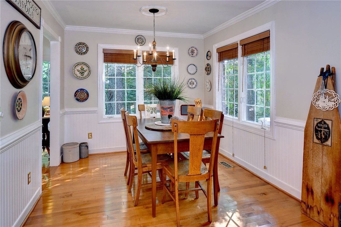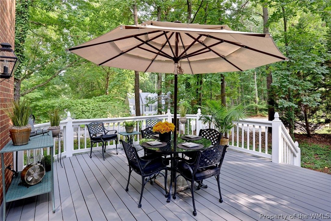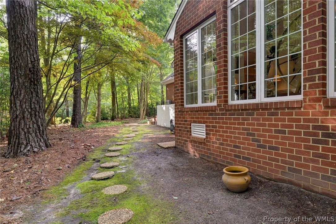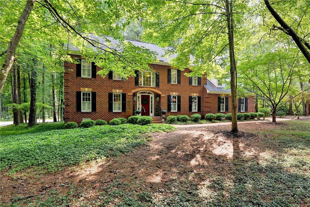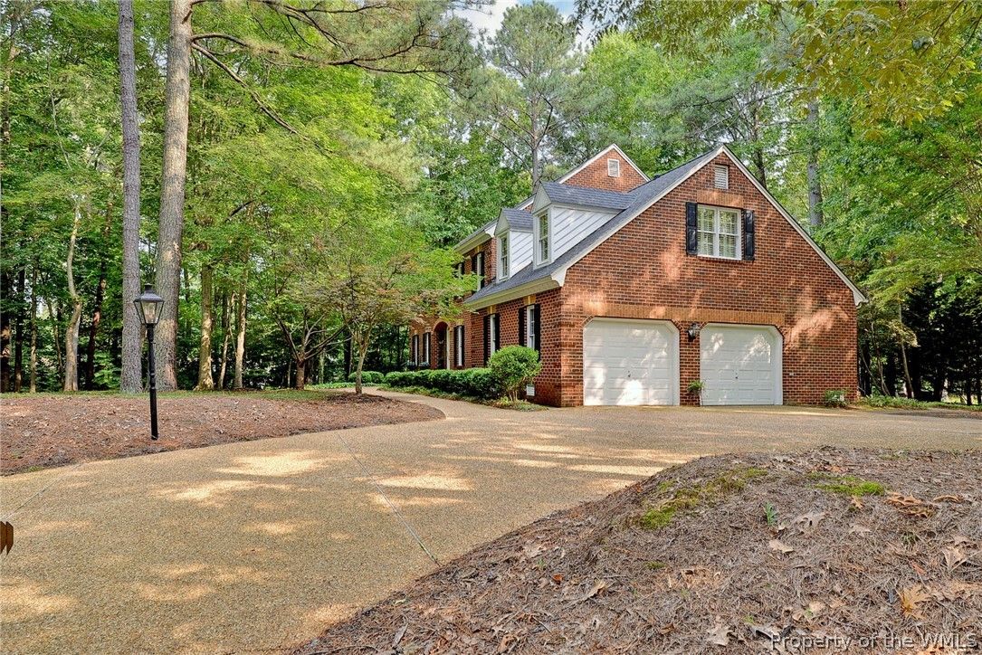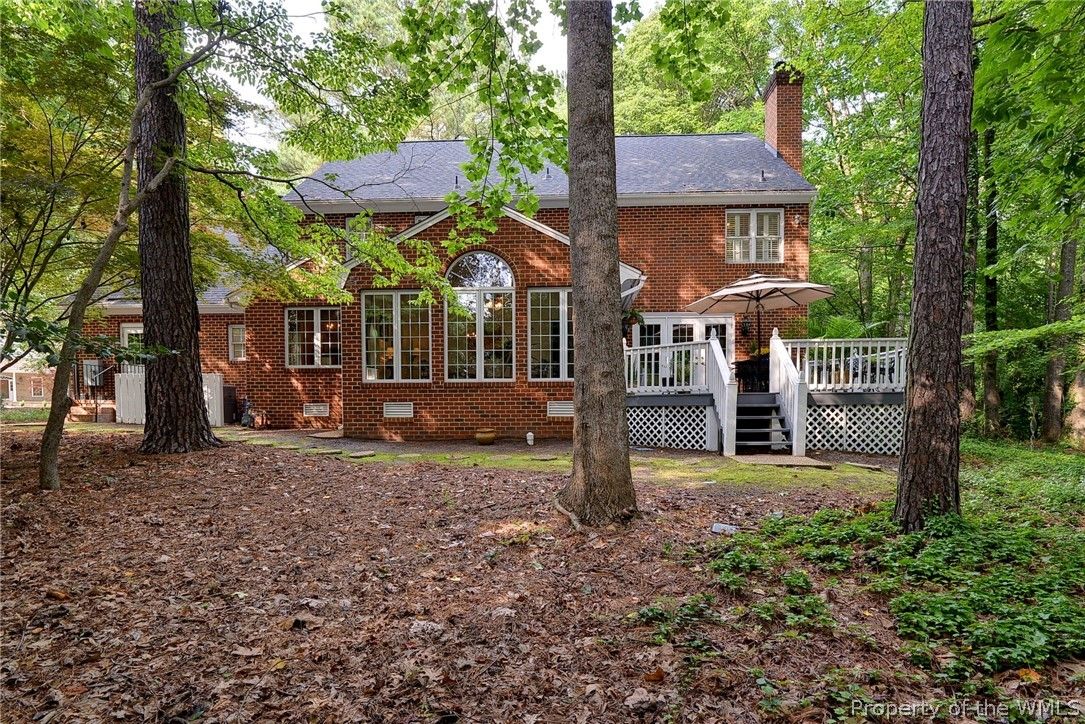 Glorious all-brick Colonial on 1/2-acre wooded lot, 1 mile from the Fords Colony Country Club. This home has been loved and renovated over time with updated primary bathroom and kitchen, newer windows, HVAC and water heater and a 6-year old roof. The landscaping has been converted to a low maintenance grounds keeping with no lawn to mow. Irrigation system installed, but not used for 10 years, conveys as is. Flexible first floor layout has formal rooms, family rooms, sun room and a breakfast area that opens to a private deck. Upstairs, there are 4 bedrooms and 2 full bathrooms. Or, use bedroom 4 as a flex or play room.