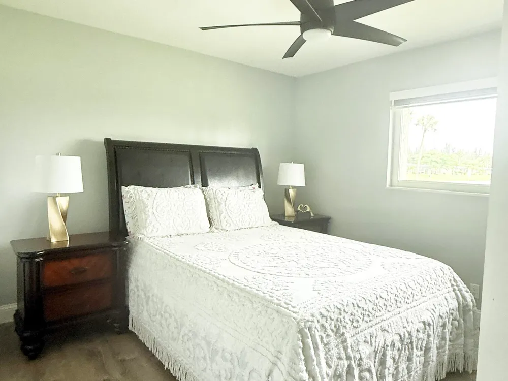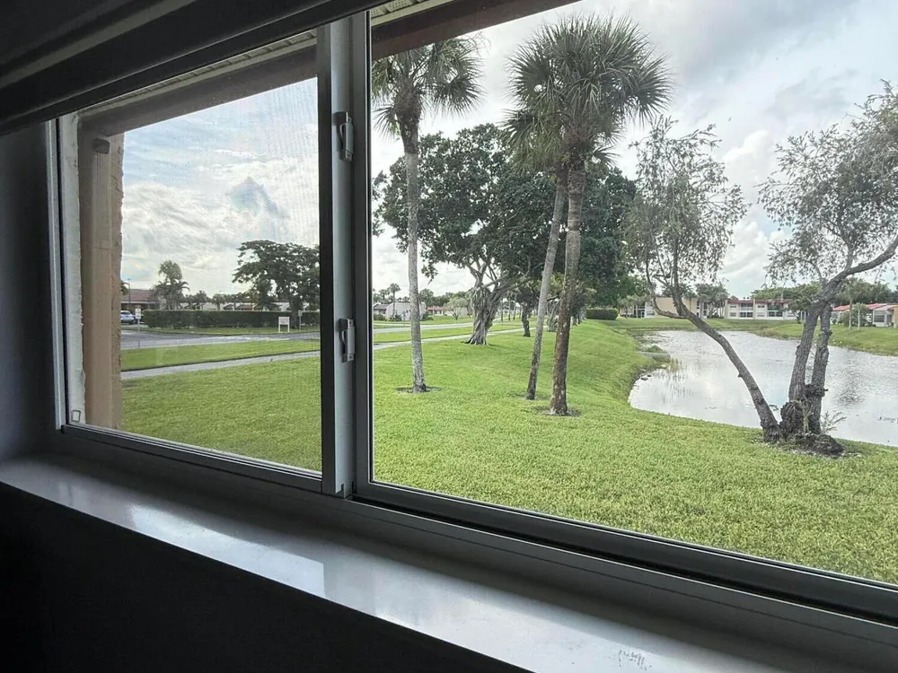 Beautifully updated 2-bedroom, 2-bath corner condo with gorgeous lake views! This home offers modern finishes throughout--open kitchen with quartz counters, stainless steel appliances, and stylish backsplash. Bright living spaces with recessed lighting, updated bathrooms, impact windows, plus washer & dryer included. Enjoy peaceful mornings on your private patio overlooking the water. Golden Lakes is an active community with clubhouse, heated pool, spa, fitness center, tennis, shuffleboard, bingo, shows, and convenient bus service to shopping and medical centers. A must-see!55+ Community.