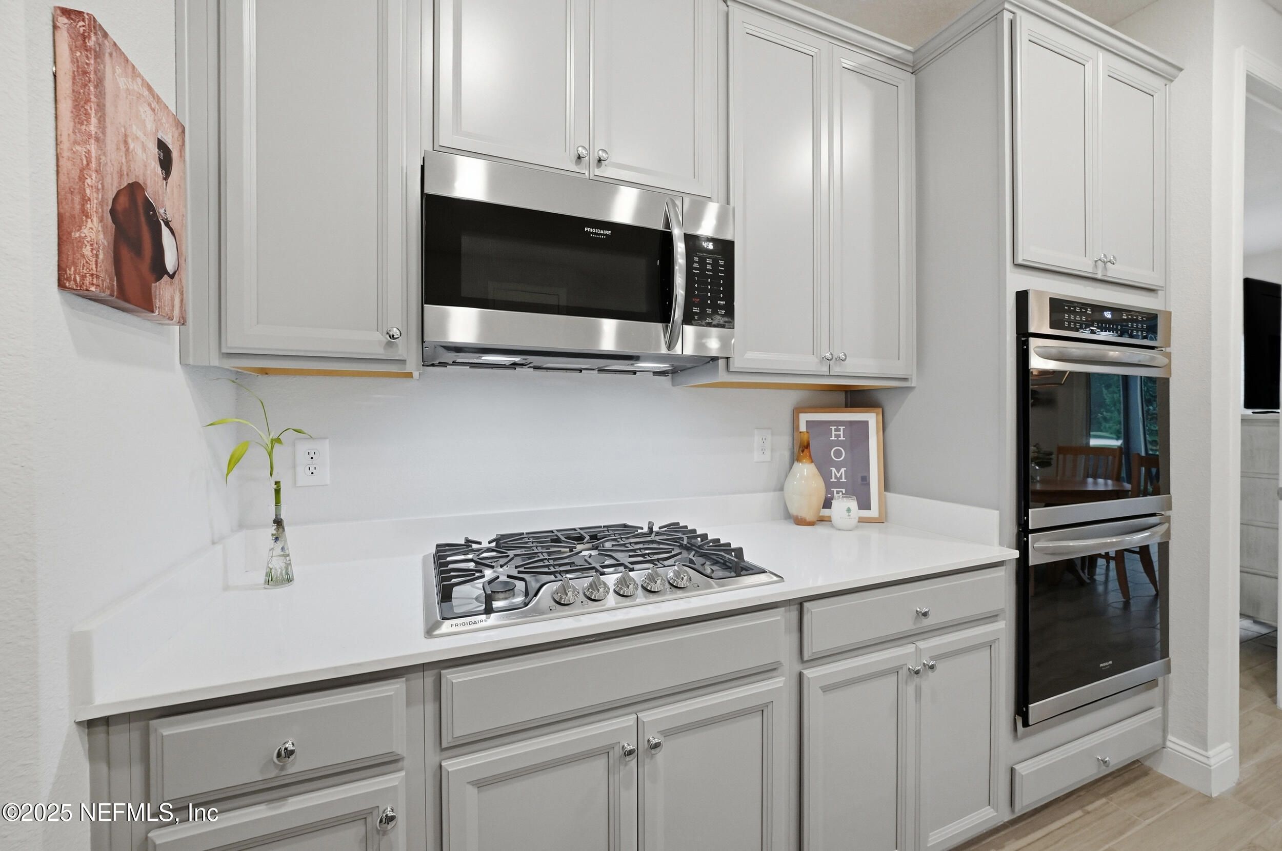 - Dishwasher, Disposal, Double Oven, Dryer, Gas Cooktop, Gas Water Heater, Microwave, Refrigerator, Tankless Water Heater, Washer, Water Softener Owned