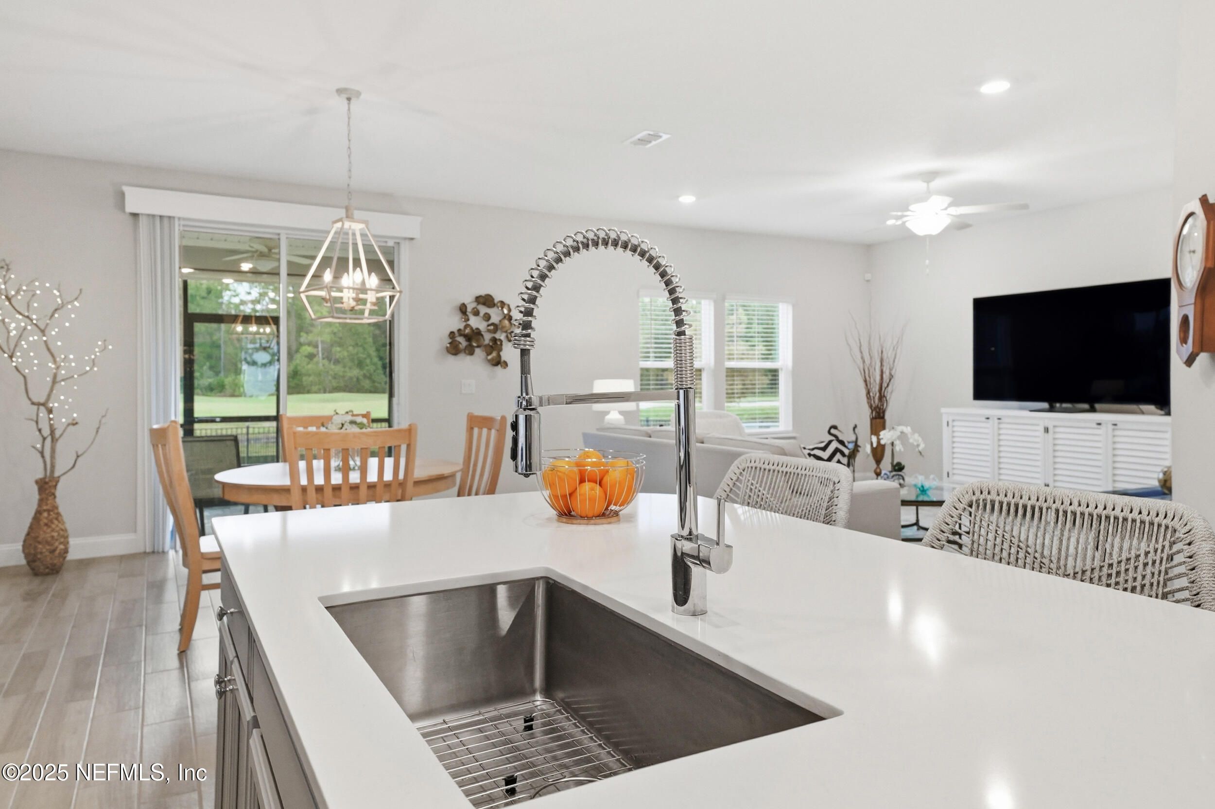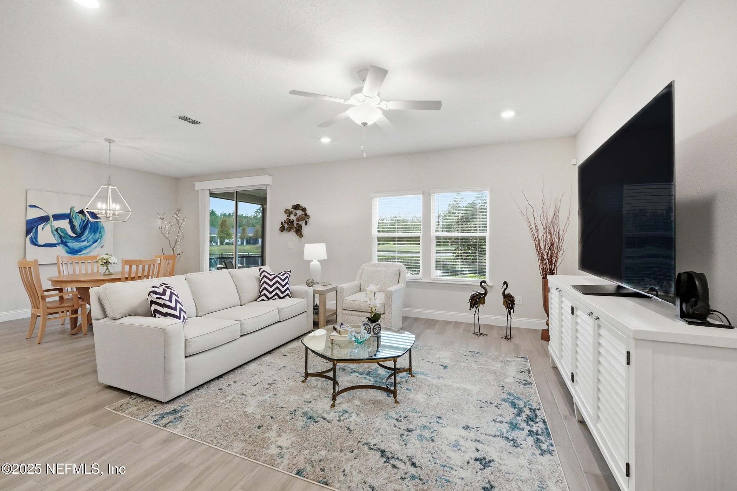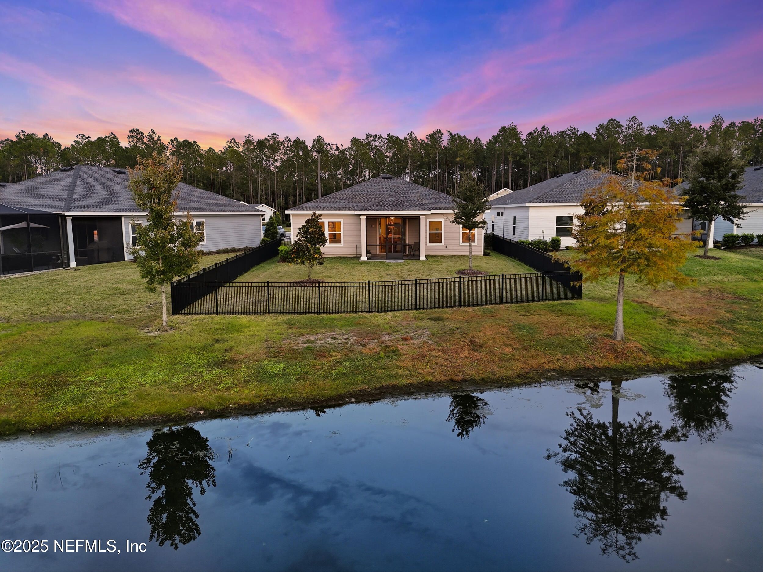 Welcome to Stillwater — St. Johns County's premier active adult golf community. Set on a premium cul-de-sac lot, this beautifully maintained home offers serene water-to-golf views of the 2nd hole and the perfect blend of comfort and style. Inside, you'll find a bright open floor plan with wood-look tile throughout — no carpet anywhere. The kitchen features quartz countertops, stainless steel appliances, gas cooktop, and double ovens, while the spacious primary suite boasts an oversized shower and walk-in closet. A private office with French doors provides the perfect work or flex space. Additional highlights include a tankless water heater, water softener, and a large screened lanai overlooking the fenced backyard. Behind the gates, residents enjoy a Bobby Weed-designed golf course, Top Tracer driving range, resort-style amenities — including a heated pool, tennis and pickleball courts, bocce, fitness center, and full-service clubhouse with restaurant, bar, and lounge.