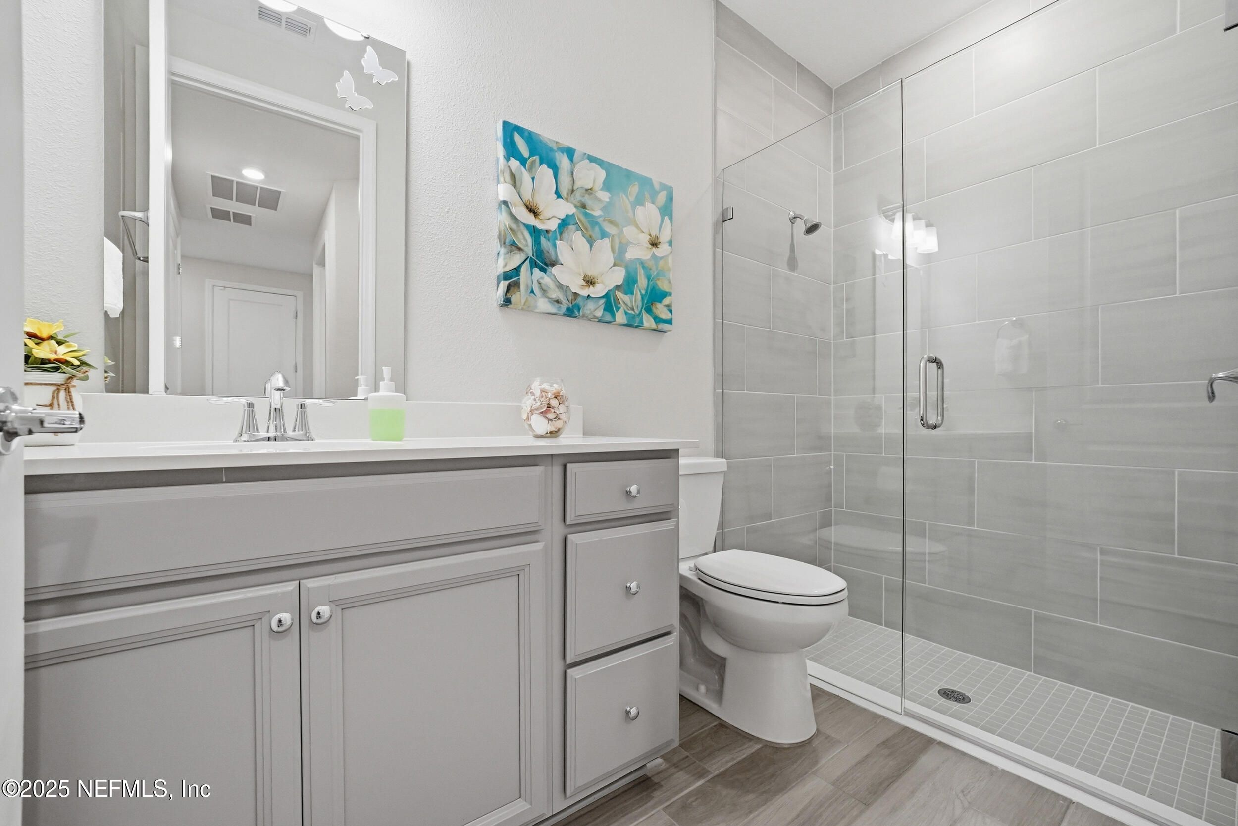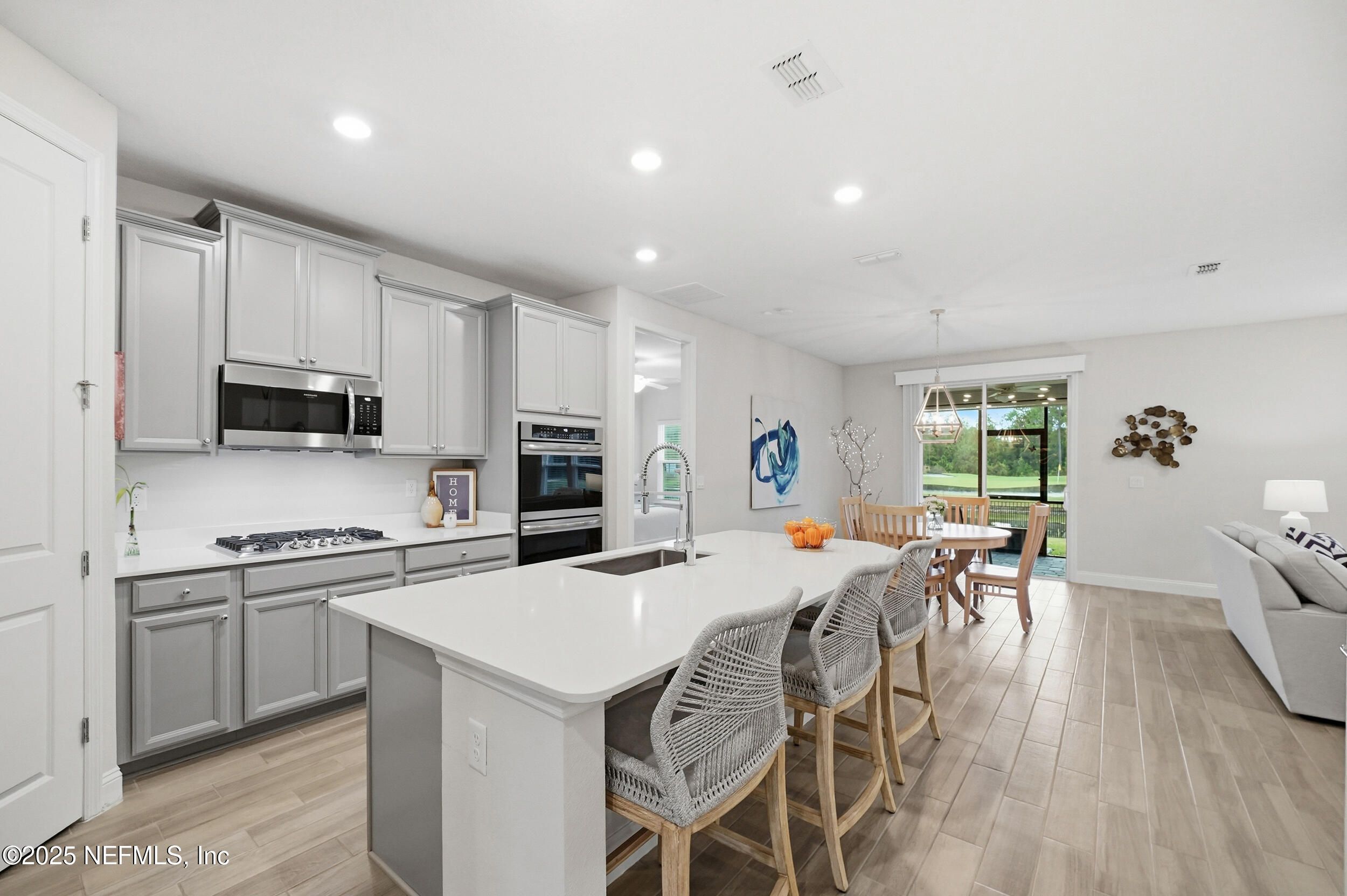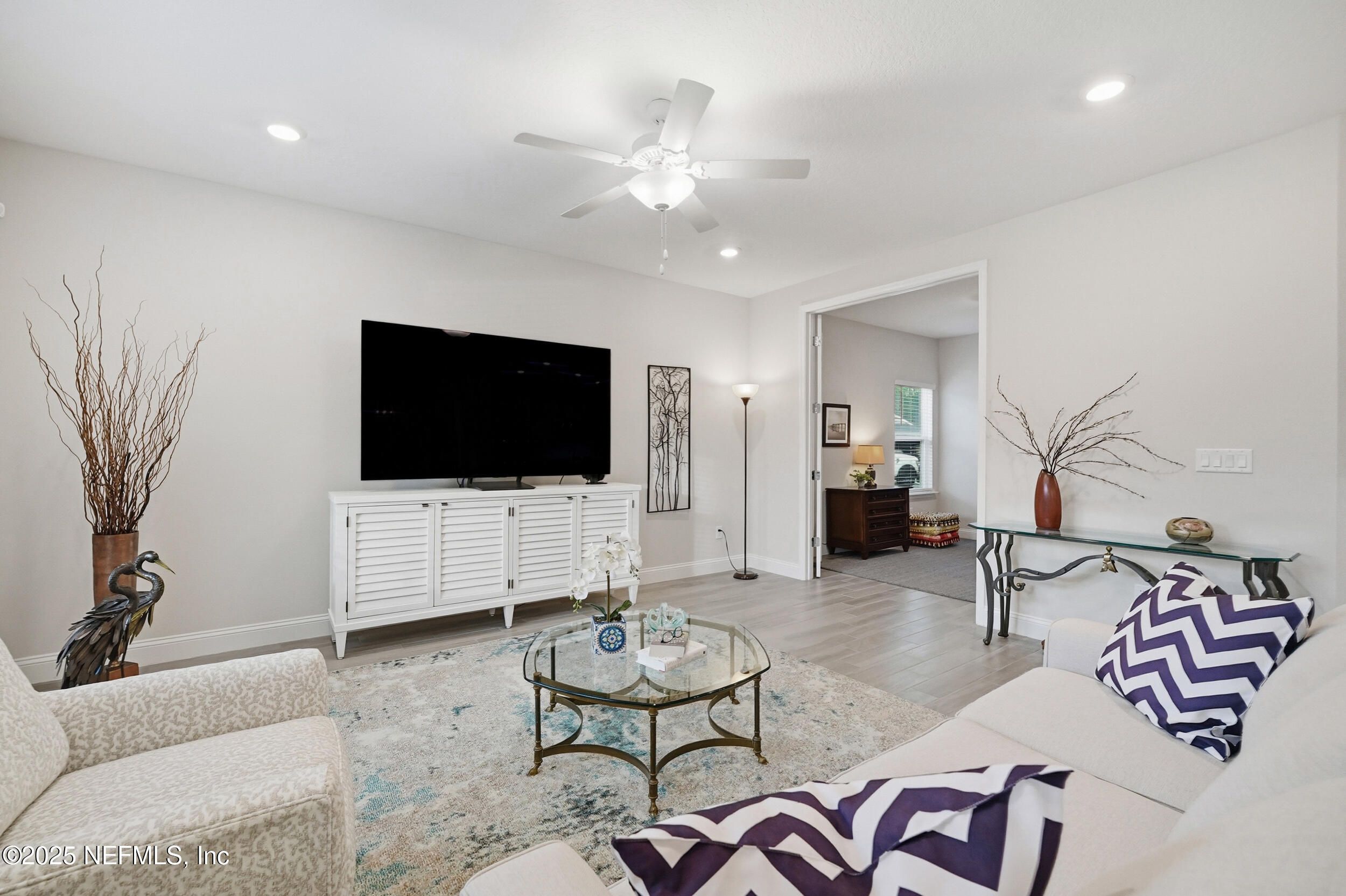 Welcome to Stillwater — St. Johns County's premier active adult golf community. Set on a premium cul-de-sac lot, this beautifully maintained home offers serene water-to-golf views of the 2nd hole and the perfect blend of comfort and style. Inside, you'll find a bright open floor plan with wood-look tile throughout — no carpet anywhere. The kitchen features quartz countertops, stainless steel appliances, gas cooktop, and double ovens, while the spacious primary suite boasts an oversized shower and walk-in closet. A private office with French doors provides the perfect work or flex space. Additional highlights include a tankless water heater, water softener, and a large screened lanai overlooking the fenced backyard. Behind the gates, residents enjoy a Bobby Weed-designed golf course, Top Tracer driving range, resort-style amenities — including a heated pool, tennis and pickleball courts, bocce, fitness center, and full-service clubhouse with restaurant, bar, and lounge.