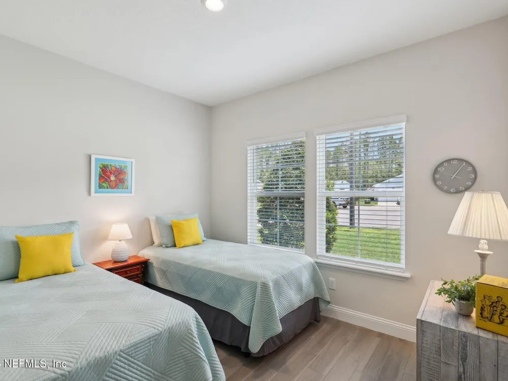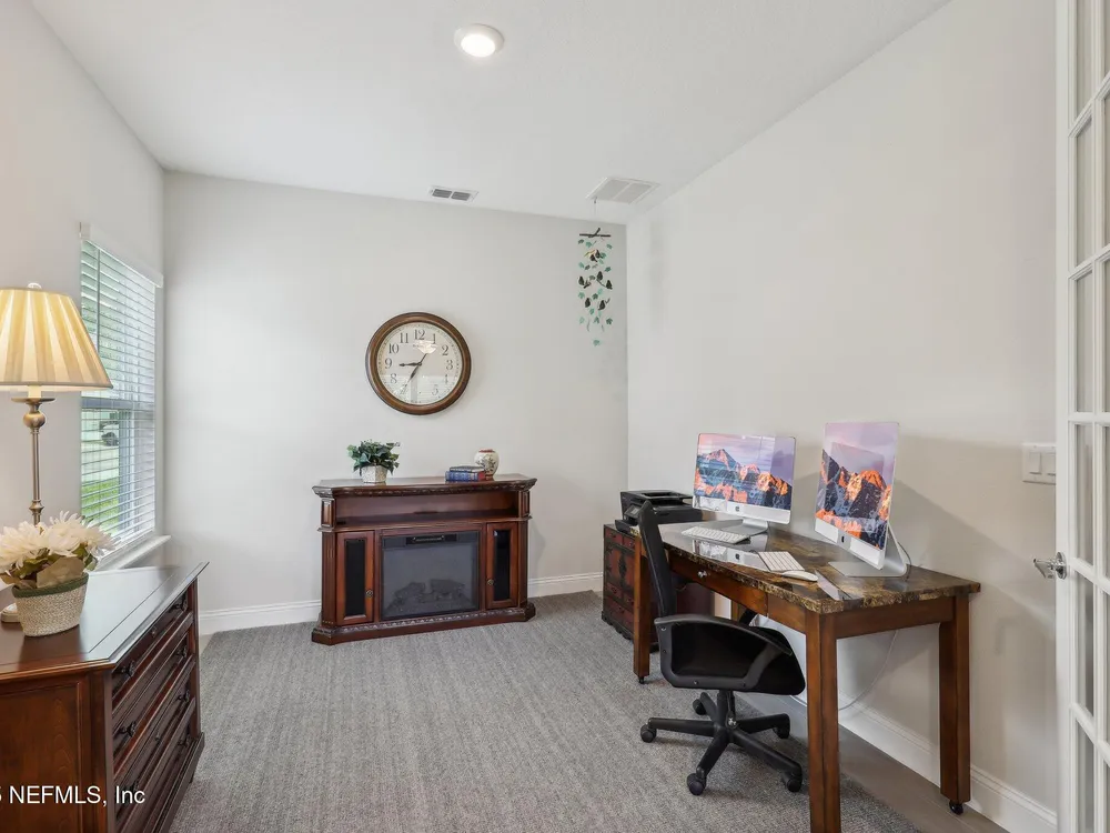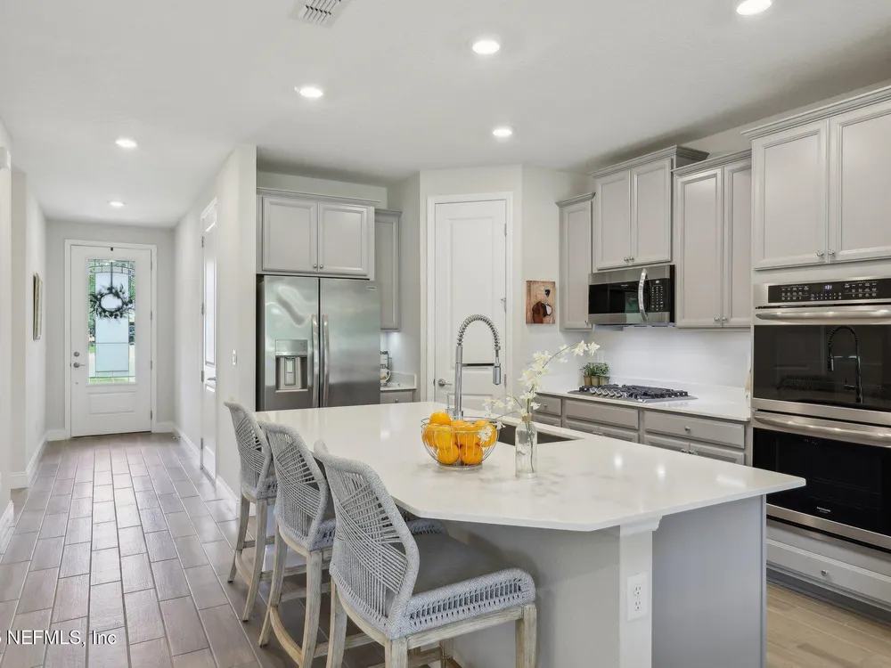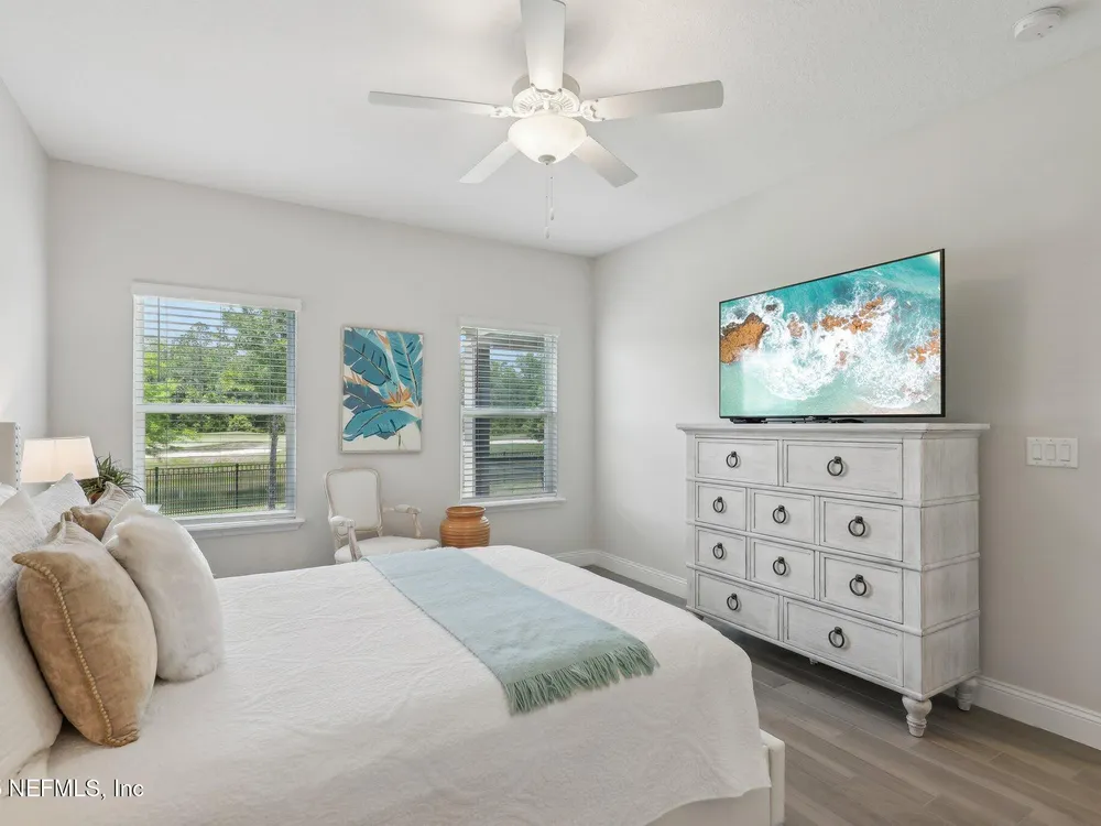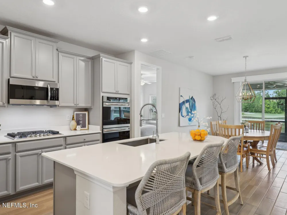 Welcome to St Johns County's premier active adult golf community, Stillwater. Nestled on a premium cul de sac lot, offering water-to-golf views of the 2nd hole. Home features a bright, open floor plan with 2 spacious bedrooms, an office with French doors and wood look tile throughout. The kitchen boasts quartz counter tops, gas cook top and double ovens. Home features tankless hot water heater and water softer. Relax on large, screened lanai overlooking expansive fenced backyard with water and golf views. The HOA covers yard and common ground maintenance, providing time to enjoy the community's amenities including Bobby Weed Golf Course and a state-of-the-art Top Tracer driving range, Amenity Center and clubhouse, featuring a heated pool, tennis and pickleball courts, bocce, and a modern gym. The clubhouse hosts year-round events, with a full restaurant, bar and lounge. Located minutes to shopping, restaurants and entertainment.