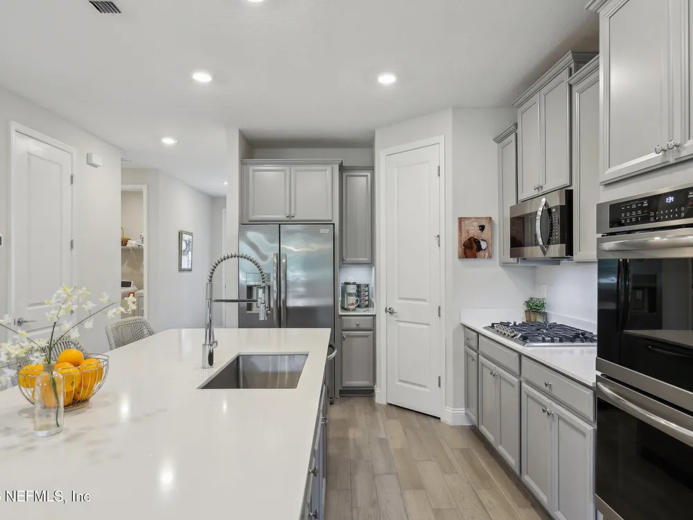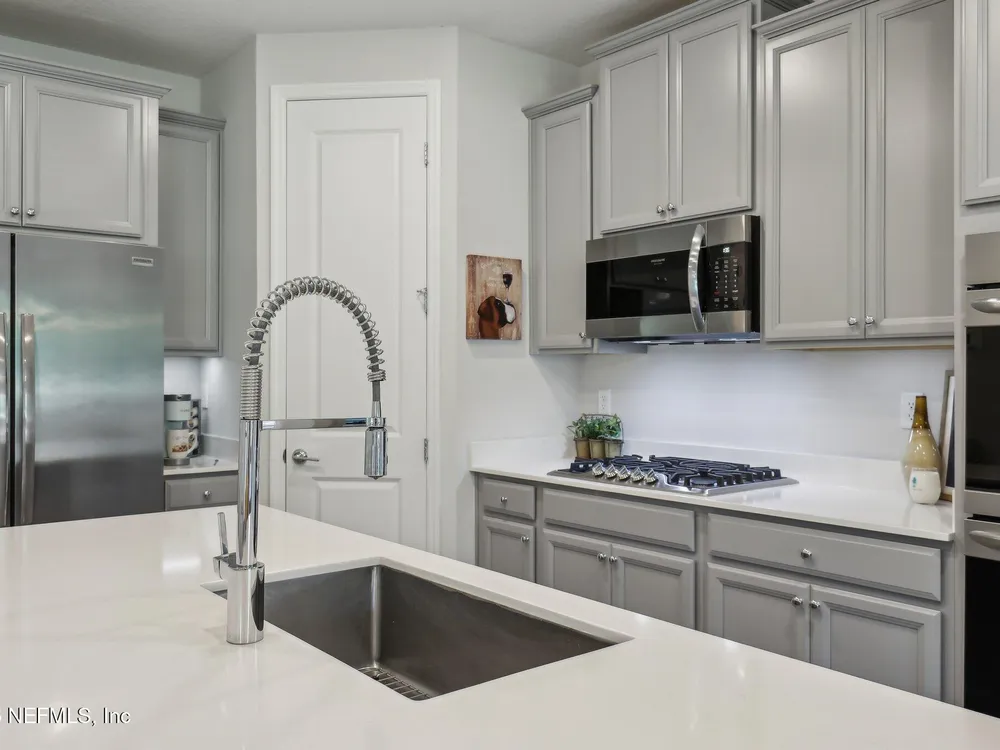 - Dishwasher, Disposal, Double Oven, Dryer, Electric Water Heater, Gas Cooktop, Microwave, Refrigerator, Tankless Water Heater, Washer, Water Softener Owned
