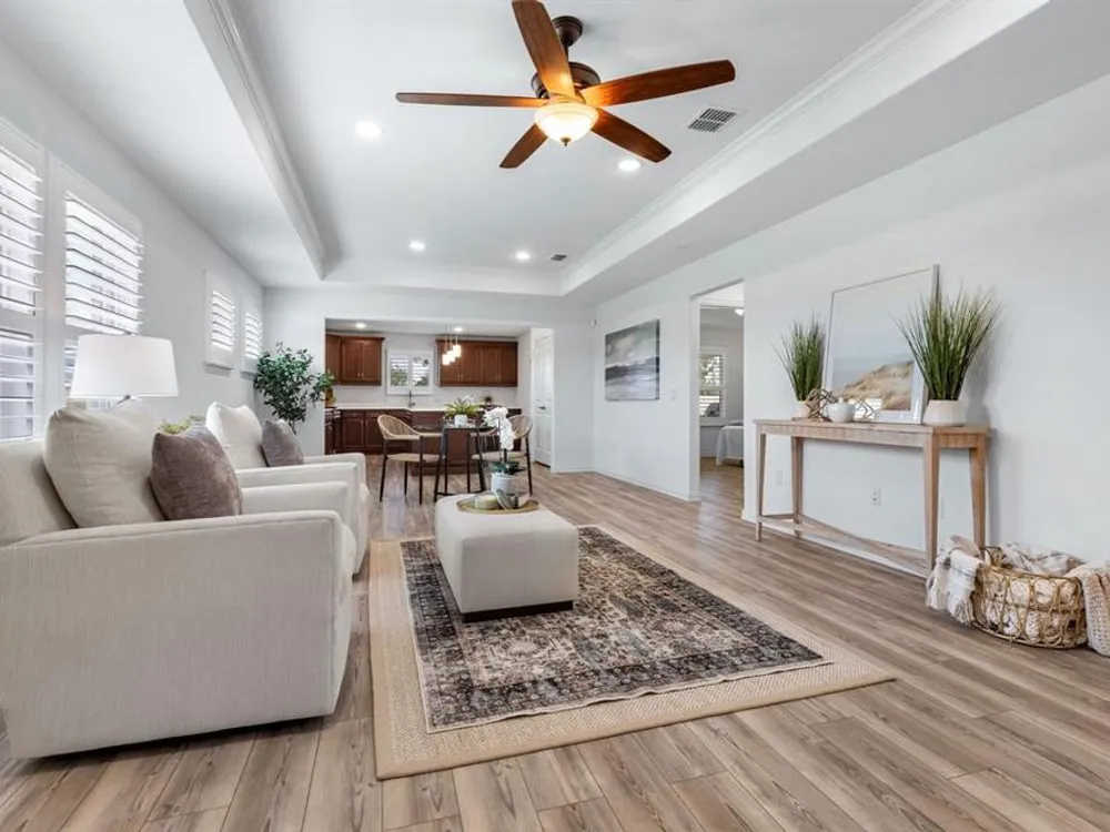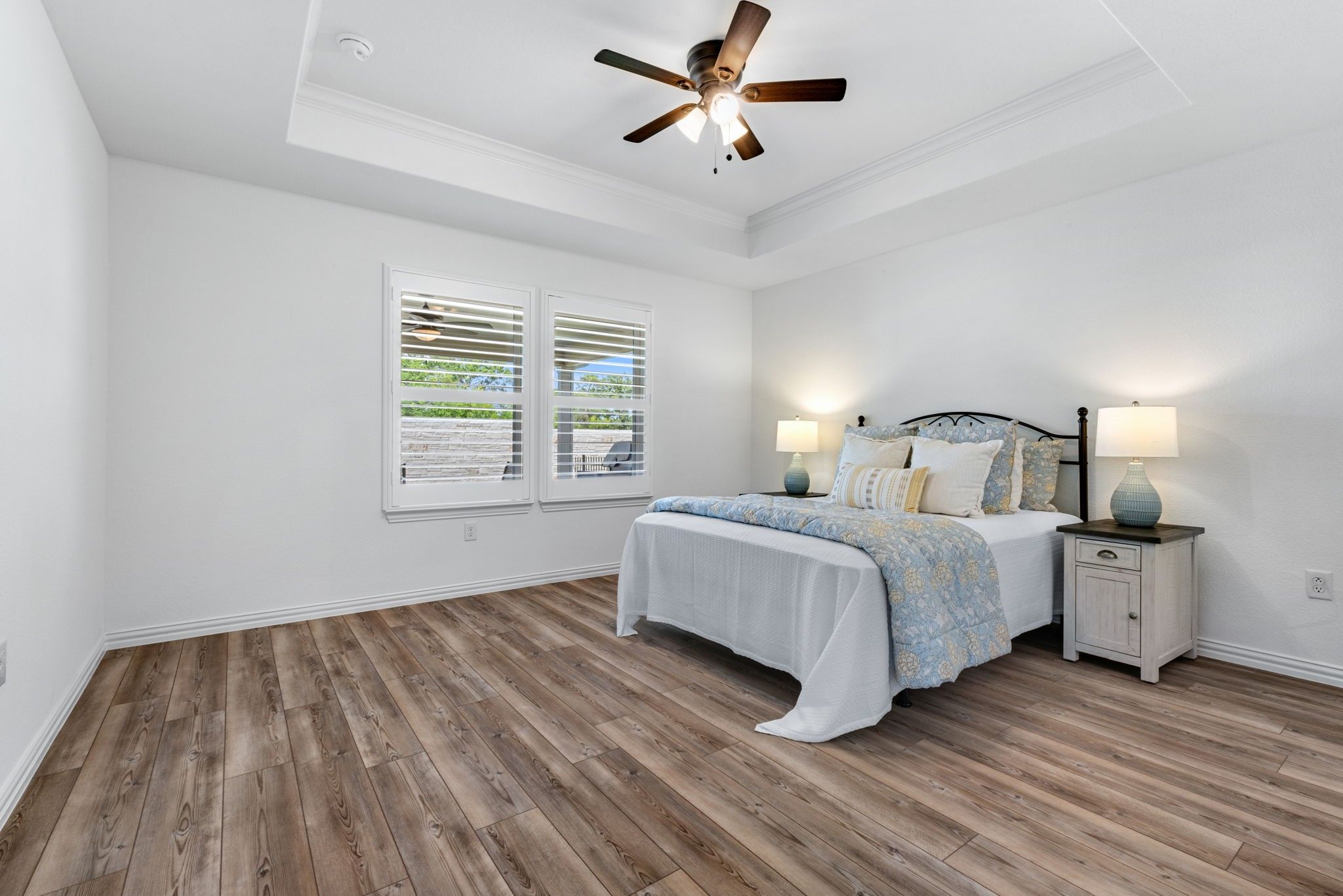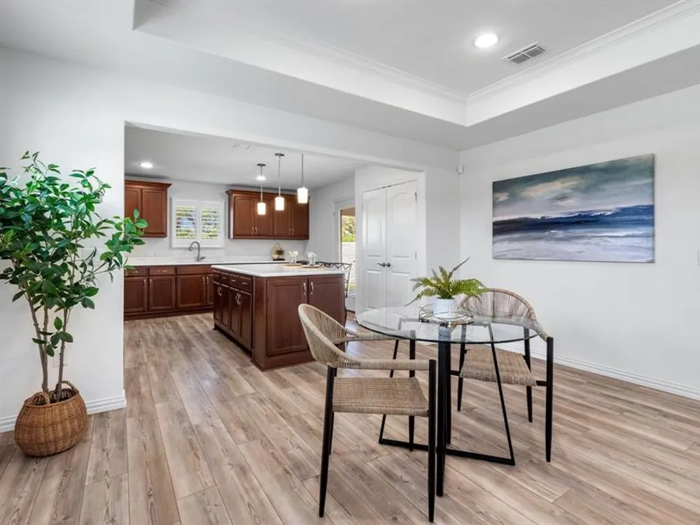 You'll feel like you're always on vacation in this beautifully upgraded super popular Taft plan on RARE Oversized Lot in Del Webb’s Active 55+ Community! Don’t miss this opportunity to own a LIKE NEW home with a $30,000 premium oversized lot plus over $40,000 in luxury upgrades! This thoughtfully designed home offers casual elegance with level 4 quartz counters and plantation shutters...functionality with 3 bedrooms or two split bedroom plan with Study and a private outdoor retreat with expanded patio, wrought iron fence and a like new gas grill ready for entertaining! Step inside to discover extensive luxury vinyl plank flooring for easy care and timeless appeal (NO CARPET!!) and a HUGE chef-inspired kitchen with level 4 quartz countertops that make both cooking and entertaining a joy. Incredible storage with beautifully stained cabinets and a double door pantry, too! Natural light flows seamlessly through the open concept living and dining areas, highlighting the modern finishes. The oversized backyard offers ample space for gardening, outdoor dining, or simply relaxing in a peaceful setting—ideal for those who want extra room and privacy without compromising low-maintenance living. Nestled within McKinney’s sought-after Del Webb community inside beautiful Trinty Falls, residents enjoy resort-style amenities, social clubs, walking trails, Bocce Ball, tennis and pickleball, fitness facilities, and a true sense of community.