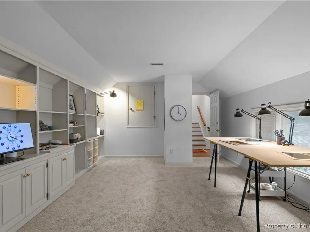 Beautifully refreshed home in coveted Moody’s Run! A welcoming courtyard leads to a gracious foyer and a dramatic great room with soaring ceilings and a wall of windows. The open dining area features sliding doors to the deck and screened porch—both overlooking a tranquil fountain. The bright white kitchen with new refrigerator flows into a cozy den. Main-level primary suite includes new carpet and an updated bath with comfort-height counters. A large laundry room and stylish powder room complete the main floor. Upstairs are two spacious ensuite bedrooms, a finished attic space, and a dedicated office. Ample closet space throughout. Includes a one-car garage, driveway, and guest parking. Enjoy Kingsmill’s top-tier amenities: three outdoor pools, miles of walking trails, and more. Moody’s Run also offers its own private pool. Move-in ready and waiting for its new owners!