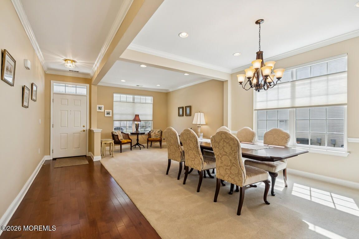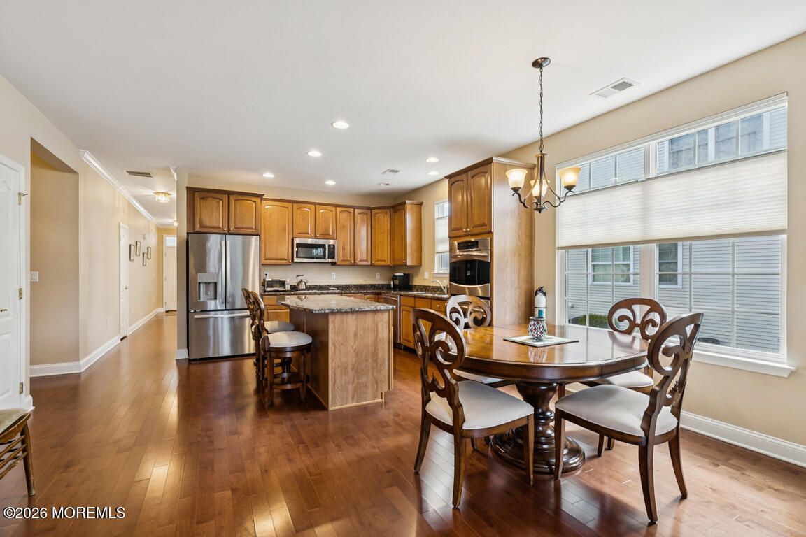 Welcome to this beautifully maintained home in the highly sought-after Four Seasons at Metedeconk 55+ community, where comfort, elegance, and convenience come together in one exceptional offering. This spacious residence features a formal living and dining room, along with a warm and inviting family room complete with a gas fireplace--perfect for relaxing or entertaining. The upgraded kitchen is a chef's delight, showcasing granite countertops, 48'' cabinetry with pull-out drawers, a pantry, and a full stainless steel appliance package including a double oven and stovetop. The home offers 3 bedrooms, 2 bathrooms, engineered hardwood flooring, decorative molding, and mounted TVs with brackets included. The expanded primary suite boasts a tray ceiling and bay window, creating a bright and and airy retreat, along with a luxurious en-suite bath featuring double sinks, a jacuzzi tub, and a separate shower stall. Additional highlights include a 2-car garage with walk-up attic access for ample storage, as well as a patio. Ideally located near the clubhouse and additional parking, this home provides both convenience and community. Residents enjoy resort-style amenities including a clubhouse, indoor and outdoor pools, fitness center, billiards and card rooms, tennis courts, bocce, pickleball, and scenic walking paths--making this an exceptional place to call home.