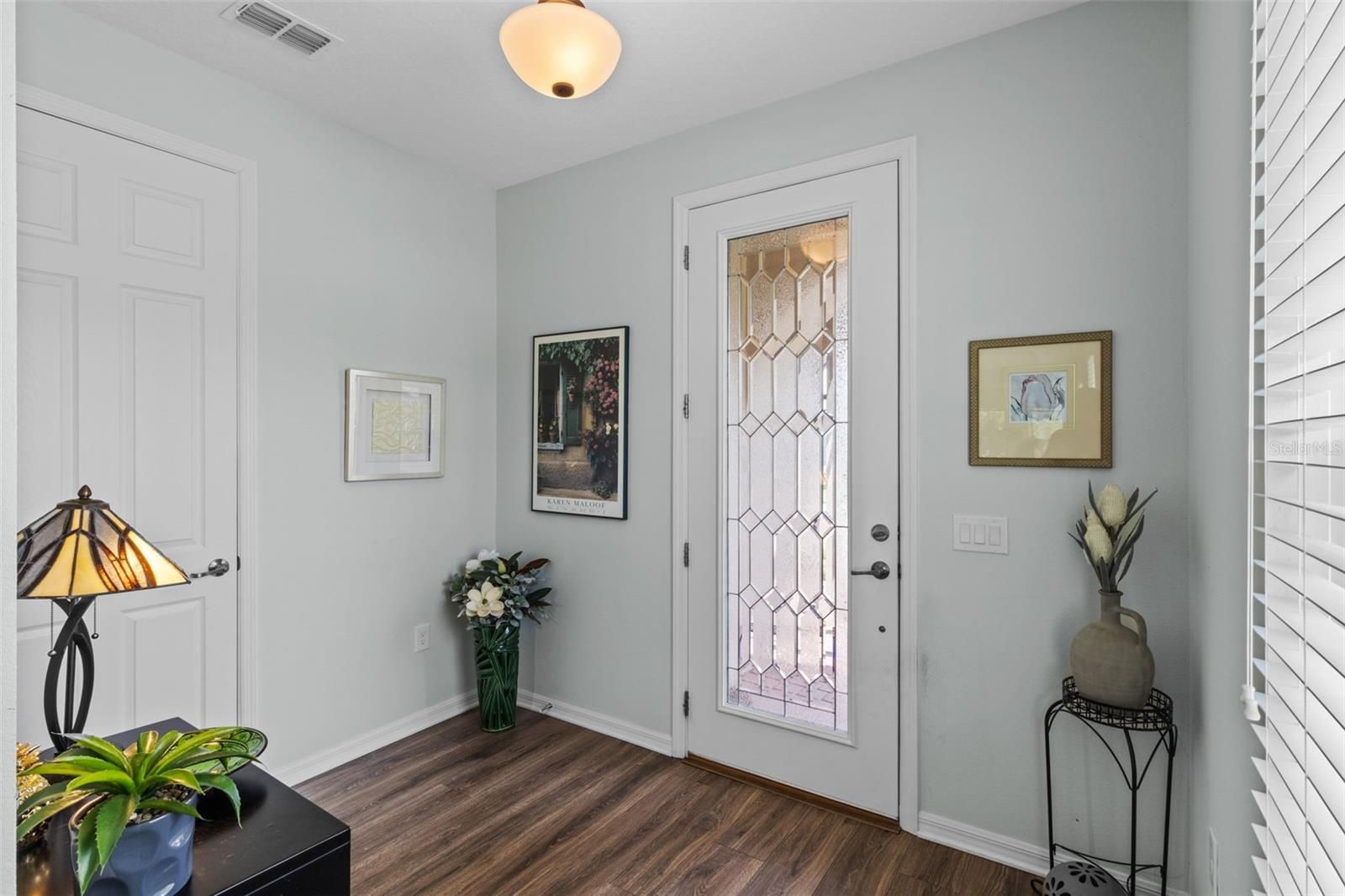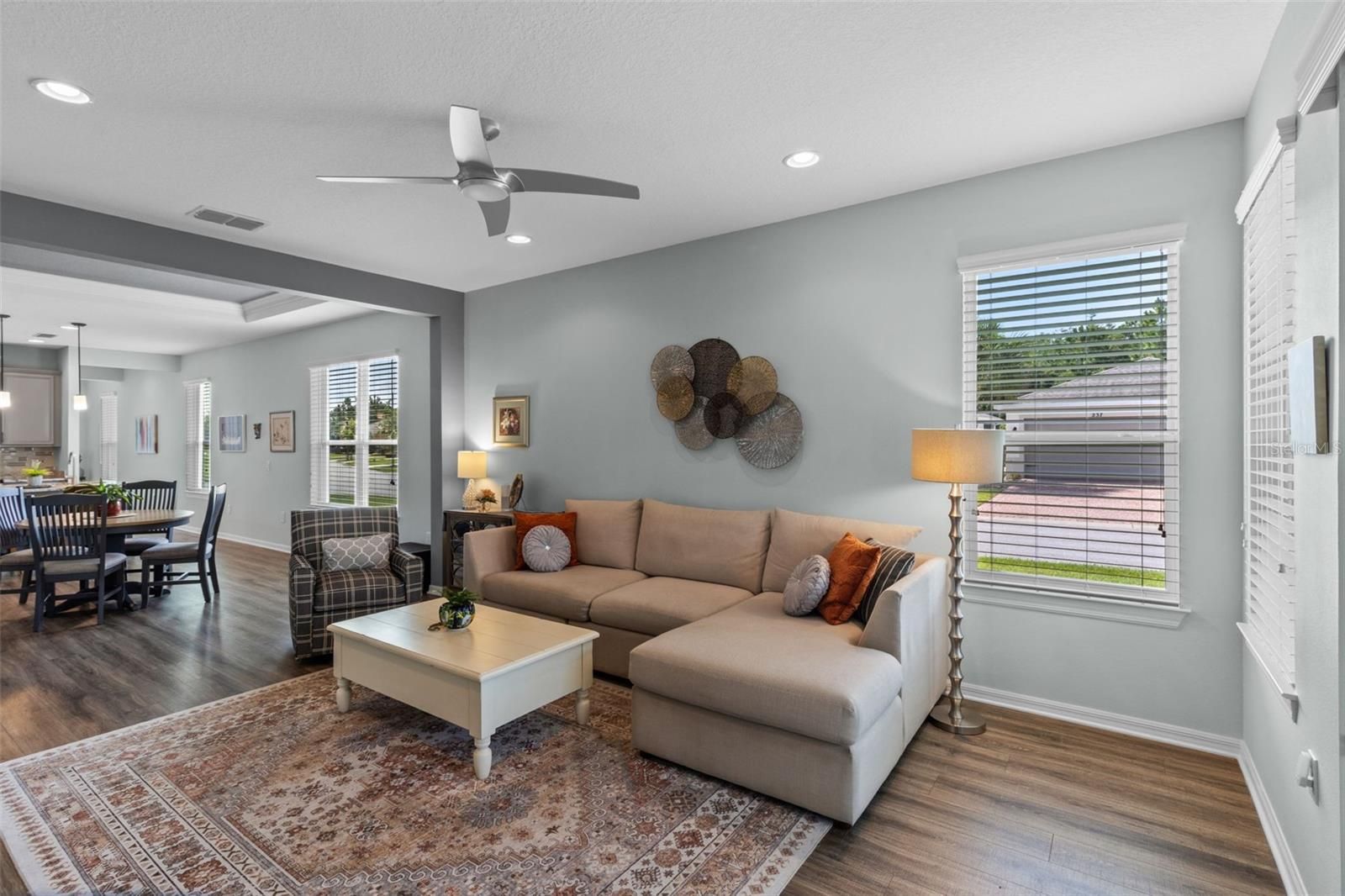 Welcome home to this immaculate *TURNKEY*, *CORNER LOT*, Private View home in beautiful Solivita! (Note: This home can come furnished PLUS with the golf cart!) This home is surrounded by pretty trees and luxurious landscaping, and only minutes away from the Village Center! The lanai is completely private with no rear neighbors, surrounded by privacy trees - perfect for you to enjoy all year round as you relax in the shade and enjoy the Florida sunshine! This gorgeous 2 bedroom + Den/2 bathroom home is an OPEN CONCEPT with upgrades including high ceilings, laminate flooring in the living areas, and stunning kitchen! The kitchen has 42” cabinets, lots of counterspace, and a beautiful backsplash to match. The living area and dining room overlook your PRIVATE SCREENED-IN Lanai - perfect for entertaining guests, or simply relaxing and enjoying your coffee in the Florida breeze. The Master bedroom boasts a large walk-in closet, and an En-Suite Bath with dual sink vanity and glass shower. The extra bedroom and den are on the opposite side of the home for a great split floorplan, with the 2nd bath conveniently located in between the rooms. Does it get much better than this? Solivita offers endless amenities including 14 heated swimming pools, indoor pool and indoor walking track, state of the art fitness centers, pickleball courts, lighted tennis courts, golf, over 250+ clubs to join, 3 community restaurants, Farmers Markets every Monday and Friday, and so much more! Only 30 minutes from Disney and all of Orlando’s major attractions! Publix, Aldi’s & Super Walmart are also just a few miles outside the Main Gate! Convenient to shopping and major roadways. Poinciana Lakes Plaza is a MAJOR NEW SHOPPING CENTER that opened directly across from the Solivita Main Gate! This AMAZING new shopping center features so many restaurants and shopping including: Sprouts Grocery, Ross, TJ MAXX, ULTA Beauty, Hair Cuttery, Burlington, Rack Room Shoes, PETCO, Outback, 5 Guys, First Watch, Urgent Care, Dentist, TD Bank – AND SO MUCH MORE TO COME! Call today to schedule your private showing!