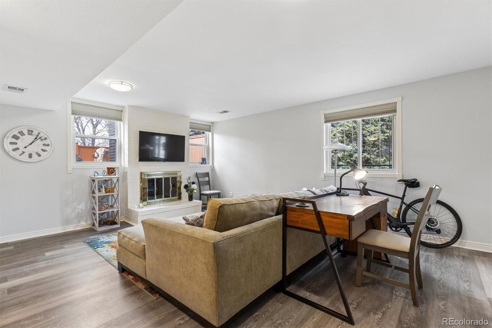 Welcome to The Villas! A wonderful adult community nestled in a quiet, parklike setting in Lakewood’s Belmar neighborhood. This beautifully kept, 3 bedroom, 4 bath home is set on a lovely, tree-lined cul-de-sac, and boasts over 2,300 sqft. of finished living space. Ideally located within walking distance of the Belmar shopping district and O’Kane Park, this meticulously maintained home also provides easy access to downtown Denver, Golden, DTC and the mountains. On the main floor you will enjoy an open-concept design with gleaming hardwood floors, a formal dining area, ample living space with patio access, and an updated kitchen with solid wood custom cabinetry, quartz countertops, high end stainless appliances, dual sinks, and a breakfast island. Make your way up to the primary suite and enjoy light-filled space, a LARGE walk-in closet, and a newly remodeled primary bath with new cabinets, stone countertops, and a private water closet, On the same level you will also find a large secondary bedroom, and a freshly updated full bath. Just a few steps below the main level you will find a spacious family room with new LVP flooring, a wood burning fireplace, lots of natural light, and a thoughtfully placed half bath. The home’s basement provides a private getaway for guests with a large carpeted bedroom, a half bath, a full laundry room, and a separate area with tons of storage. Venture outside to enjoy a new, professionally landscaped retreat with artificial turf, beautiful gardens with drip system, and it’s fully fenced so your furry friend can safely roam. On the front of the home you will find additional outdoor living space that is also fenced, and a wonderful place to enjoy the sunrise. Additional home features include new paint throughout the interior, a newer roof, new sewer line, recently replaced windows, updated window coverings, new whole-house humidifier, and newer appliances. This move-in ready home is waiting for you.