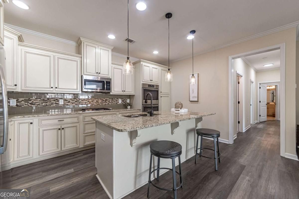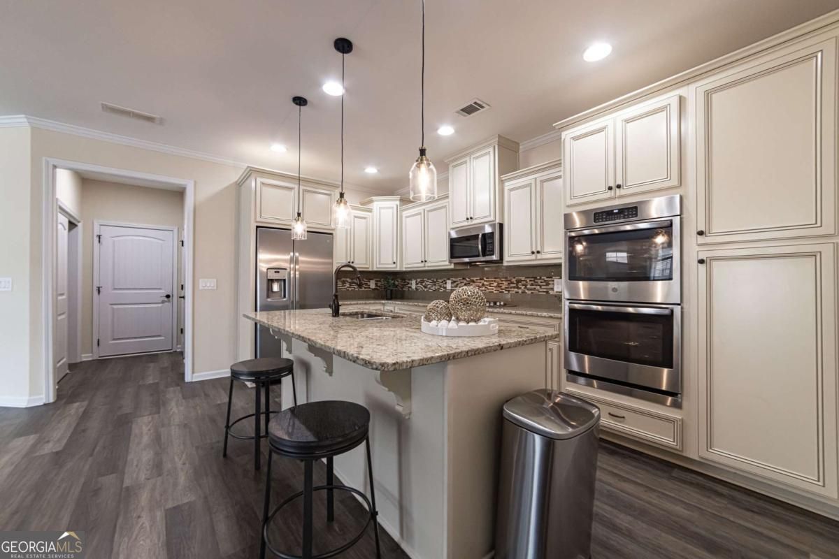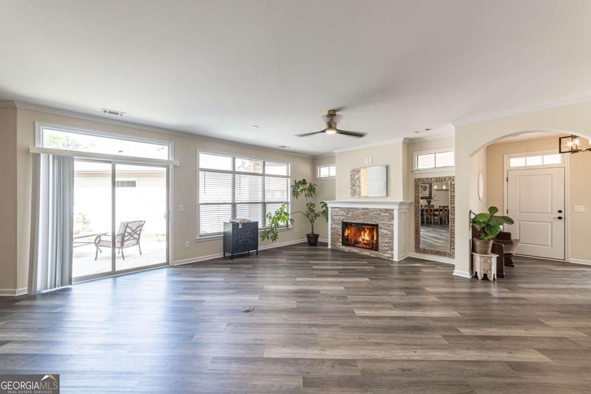 Welcome to the best of both worlds at The Meadows at Jodeco-where the ease of condo living meets the privacy of a detached home. Nestled within this beautifully maintained gated community with two separate entrances, this residence offers a rare opportunity to enjoy low-maintenance living with HOA-covered exterior upkeep, water, and trash, while still feeling completely your own, with no shared walls and space to breathe. Built by Epcon Communities and featuring one of the largest detached floor plans in the community, this home impresses from the moment you walk in. A versatile flex space at the entrance sets the tone-perfect for a home office, den, or creative retreat-before opening into a light-filled, airy living space designed for both everyday comfort and effortless entertaining. The family room, anchored by a stunning stone-accented fireplace, flows seamlessly into your private, fenced patio through elegant doors, creating the perfect setting for morning coffee, evening wine, or intimate gatherings under the open sky. The gourmet kitchen is a true centerpiece, showcasing custom cabinetry, granite countertops, a stylish backsplash, stainless steel appliances including a refrigerator, and double ovens-all thoughtfully designed to open into the living area so you're always part of the moment. Expansive windows throughout the home, all fitted with blinds, flood the space with natural light, enhancing the warm, inviting atmosphere. The oversized owner's suite on the main level is a private sanctuary, complete with tray ceilings, a cozy sitting area, direct access to the patio, a generous walk-in closet, and a spa-inspired bathroom featuring double vanities and a beautifully appointed shower. A spacious secondary bedroom on the main level also enjoys its own private bath, while the upstairs retreat offers incredible flexibility with a third bedroom suite that includes its own living area, kitchenette, walk-in closet, and full bathroom-ideal as an in-law suite, guest quarters, or even a second owner's suite. Hardwood floors flow throughout the main level, complemented by modern designer light fixtures and ceiling fans with remote controls, while a conveniently located laundry room with washer and dryer adds to the ease of everyday living. A two-car garage completes the home. Residents of The Meadows at Jodeco enjoy access to a clubhouse, swimming pool, and fitness center, all within a secure, gated setting. Ideally located in McDonough, you're just minutes from Costco, along with a variety of shopping, dining, and everyday conveniences. Enjoy nearby outdoor escapes like Heritage Park and Alexander Park, perfect for walking trails, recreation, and weekend relaxation, while easy access to major highways keeps everything within reach. Offered at $385,000, this is a rare opportunity to own a spacious, thoughtfully designed home that truly delivers comfort, flexibility, and lifestyle-all in one.