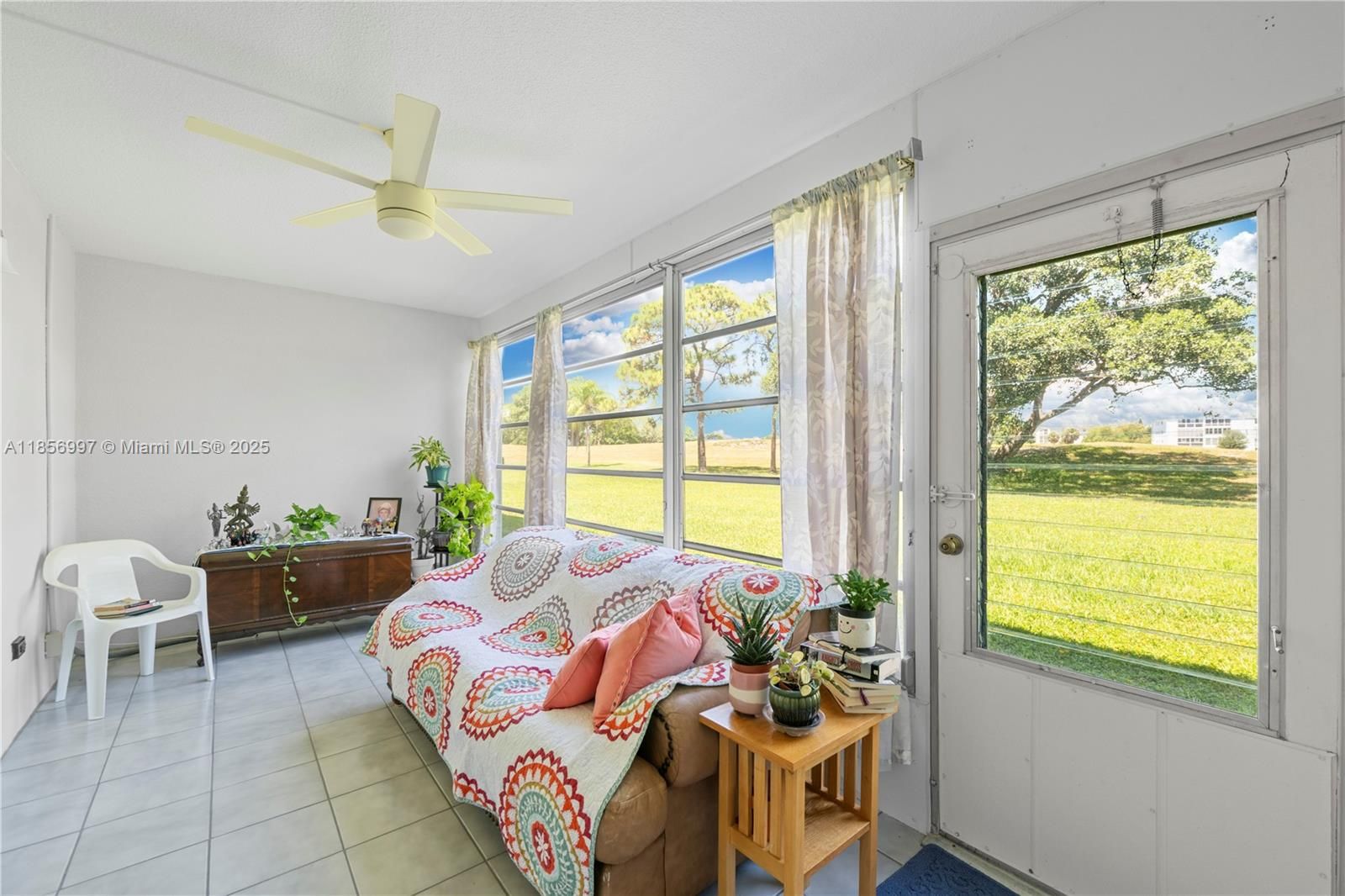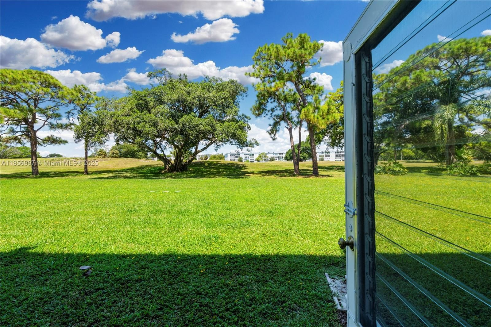 Ground-floor unit in a well-maintained 4-story building located in Century Village. This 1-bedroom, 1.5-bath condo is fully tiled throughout and offers convenient parking directly in front of the unit. Spacious with an oversized enclosed patio featuring serene views. Primary bedroom includes a complete bedroom set and an updated bath with walk-in shower. Century Village offers an unparalleled active-adult lifestyle with resort-style amenities, including 17 swimming pools, a fully equipped fitness center, tennis, pickleball, shuffleboard, volleyball, bocce ball, art and stained-glass classes, a library, and a 1,700-seat theater for live shows and movies. Community bus service to the beach (just 3.3 miles away)every hour. Non-skid walkway for added safety. NO RENTALS ALLOWED.