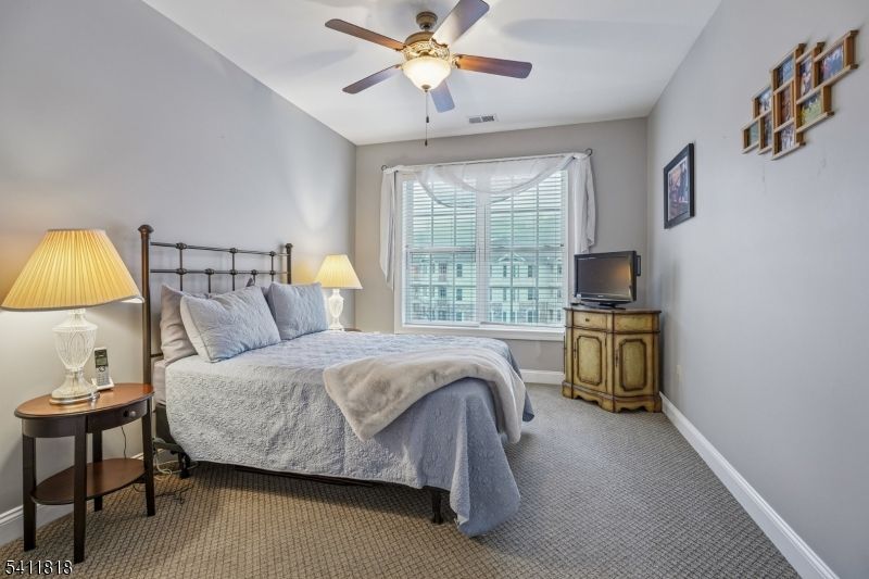 This bright and spacious residence boasts one of the premier locations within the community and offers two generously sized bedrooms and two full baths. The inviting living room features a cozy gas fireplace and opens to a private deck perfect for morning coffee or relaxing at day's end. A formal dining room with elegant coffered ceilings adds architectural charm and an ideal setting for entertaining.The large eat-in kitchen and adjacent den create a warm, versatile space for everyday living.The primary suite is a peaceful retreat with vaulted ceilings, a generous walk-in closet, and a private balcony with serene views. The luxurious en-suite bath has been recently updated and features a soaking tub, stall shower, and dual vanity.Additional highlights include motorized window coverings, in-unit laundry, a spacious private storage closet in the garage, and assigned underground parking for one vehicle with convenient elevator access. Unassigned parking is available on a first-come, first-served basis, along with uncovered parking for a second vehicle and ample guest spaces. Electric vehicle charging stations are also available.Enjoy resort-style amenities including an outdoor pool, pickleball and tennis courts, bocce, a clubhouse with billiards, and a modern fitness center. Ideally located near major highways, shopping, and dining, this home blends elegance, comfort, and convenience. Fireplace as-is. Living room TV included.