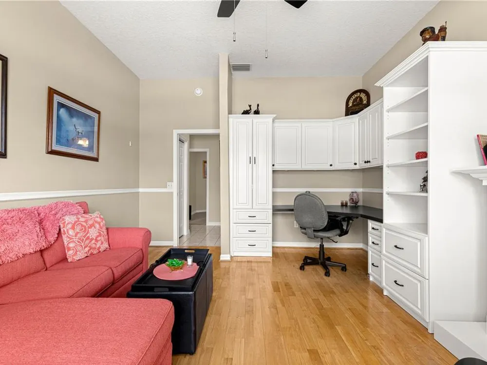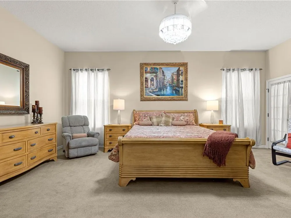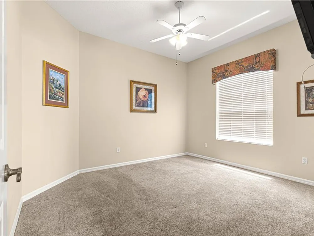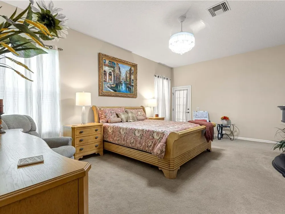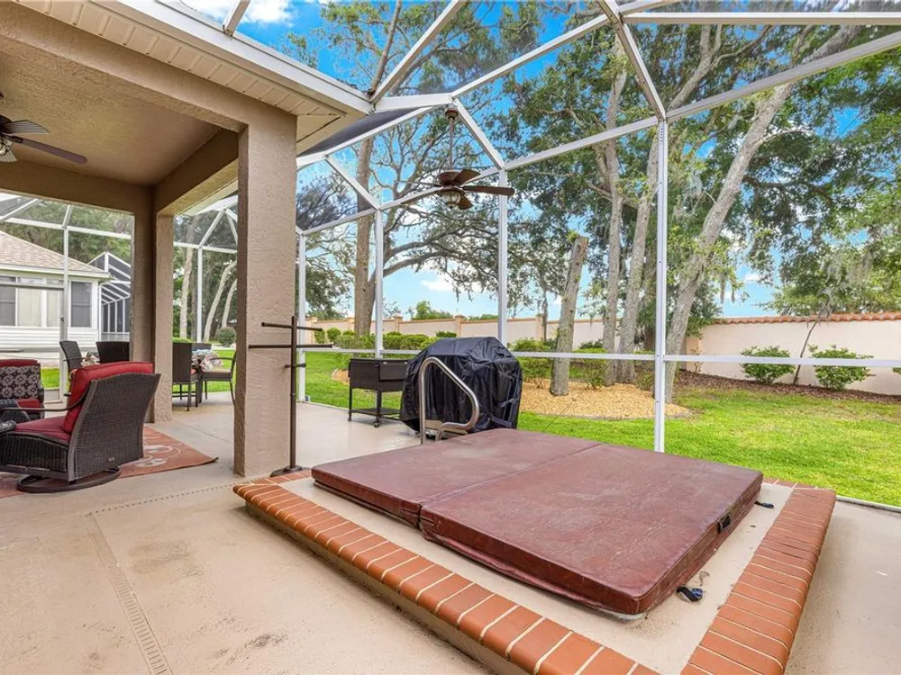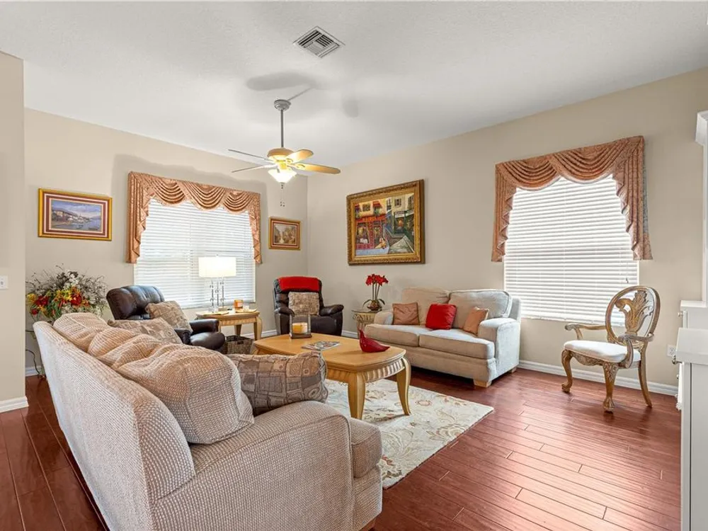 1 YEAR BROWARD FACTORY WARRANTY INCLUDED***BOND PAID!!! ROOF & HVAC 2017!! Welcome to the charming village of La Zamora, where this beautiful Premier Rancho Mirage model awaits you! Ideally situated between Spanish Springs and Lake Sumter Landings, this home offers the perfect blend of convenience and tranquility. With its inviting curb appeal, highlighted by a brick-pavered driveway, lush landscaping, and a peaceful cul-de-sac location, the exterior is just the beginning. As you step inside, you'll be greeted by soaring 12-foot ceilings and a chef's dream kitchen, complete with stunning granite countertops, stainless steel appliances, and a movable island that adds both functionality and style. The spacious living room features a built-in entertainment center and an electric fireplace, creating the perfect ambiance for relaxation and unwinding. The primary bedroom is a true retreat, featuring a fandelier (a chandelier with a fan), dual closets, and a luxurious ensuite bath with dual sinks, a makeup vanity, a soaker tub, and a gorgeous walk-in shower with glass doors. The front guest bedroom offers a built-in desk, making it a versatile space for overnight guests or a home office. Step outside to the screened-in back porch, where you'll find new sliding glass doors, a built-in hot tub, and a covered area, perfect for enjoying year-round outdoor living. With updates including a 2017 roof, 2017 HVAC, and updated hot water heater, this home is move-in ready and a must-see! *** FURNITURE IS AVAILABLE SEPARATELY***