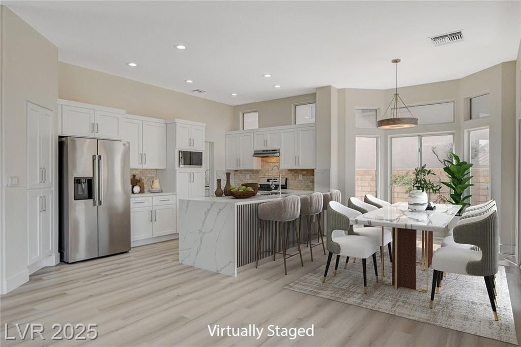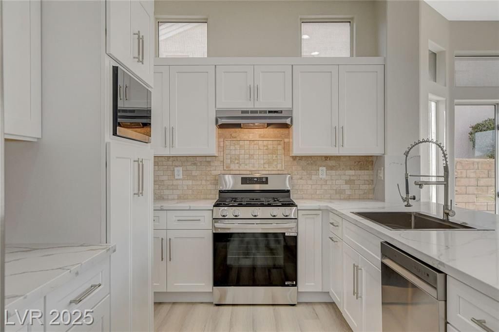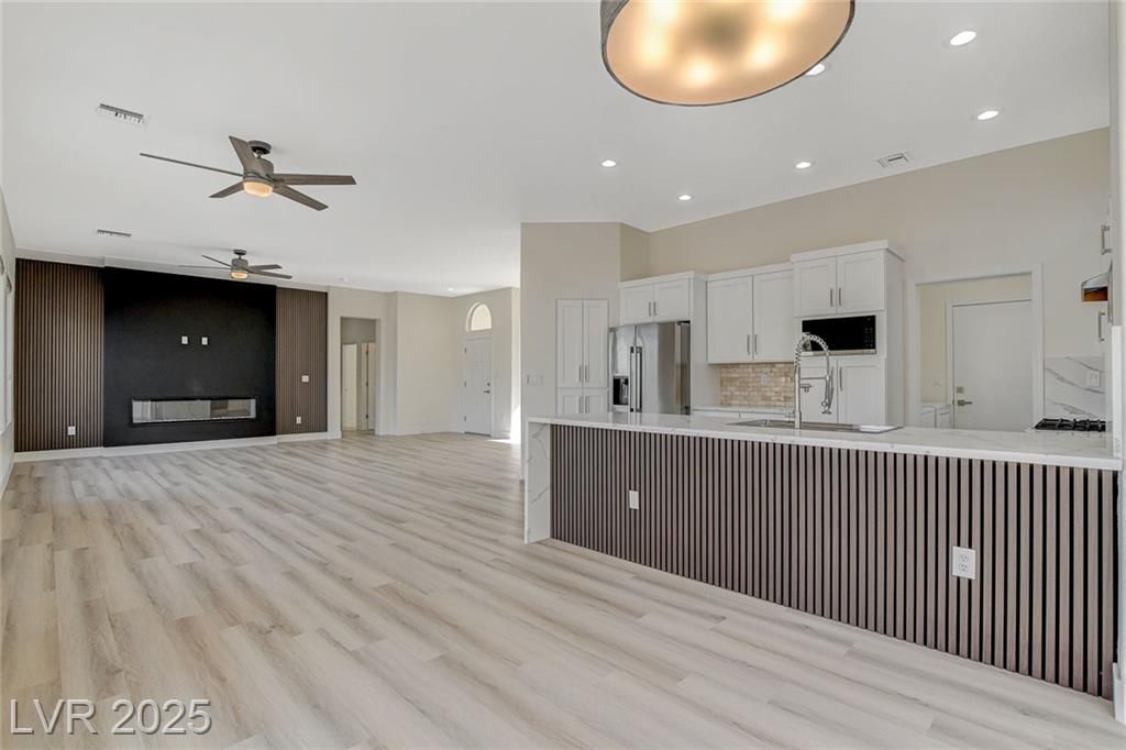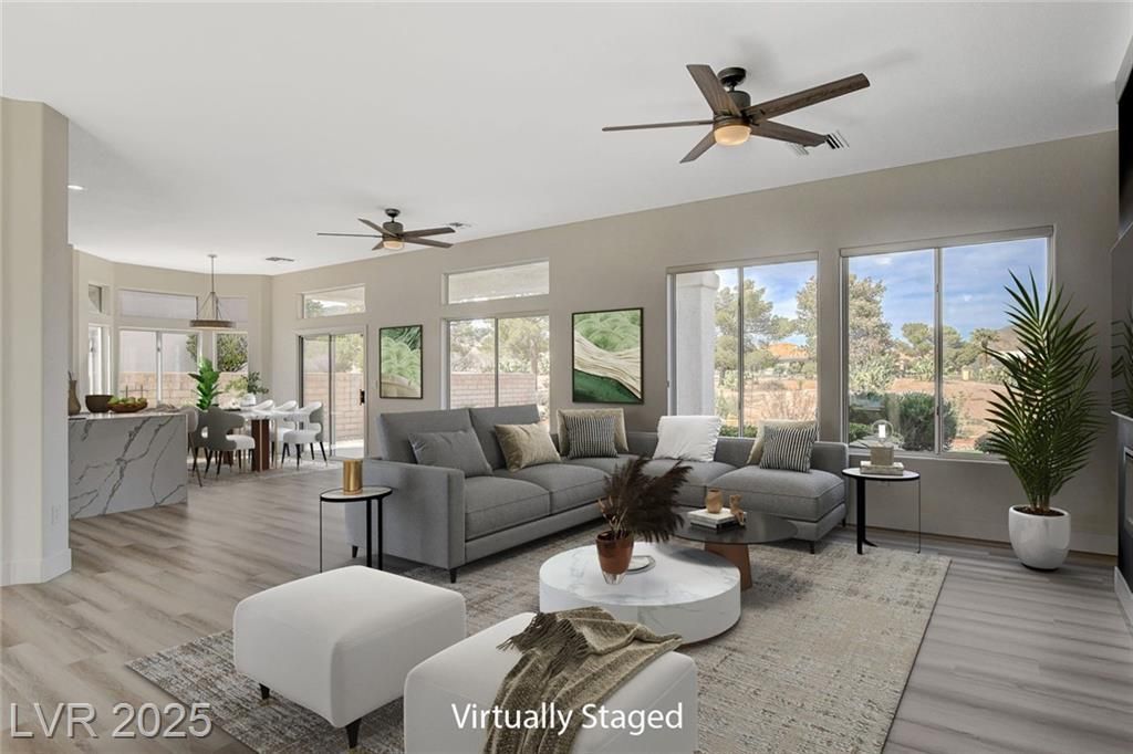 Professionally designed Sun City Summerlin view home located ON the golf course. This premium elevatedgolf lot also boasts city & mountain views and is Located near the clubhouse with all the amenities you canexpect from one of the top golf communities in Las Vegas. Home features bright open floorpan with whitecabinetry, designer hardware, wood plank luxury vinyl floors, 5" baseboards, oversized elegant walk inmaster shower with custom tile, brand new top of the line stainless steel appliances, hand picked fixturesand faucets, high end lighting package, fresh interior paint, and custom Wi-FI ready LED fireplace. Sit inyour relaxing backyard, take in the views with a glass of wine or cup of coffee, and enjoy the scenic golfcourse view. An absolute Must See.