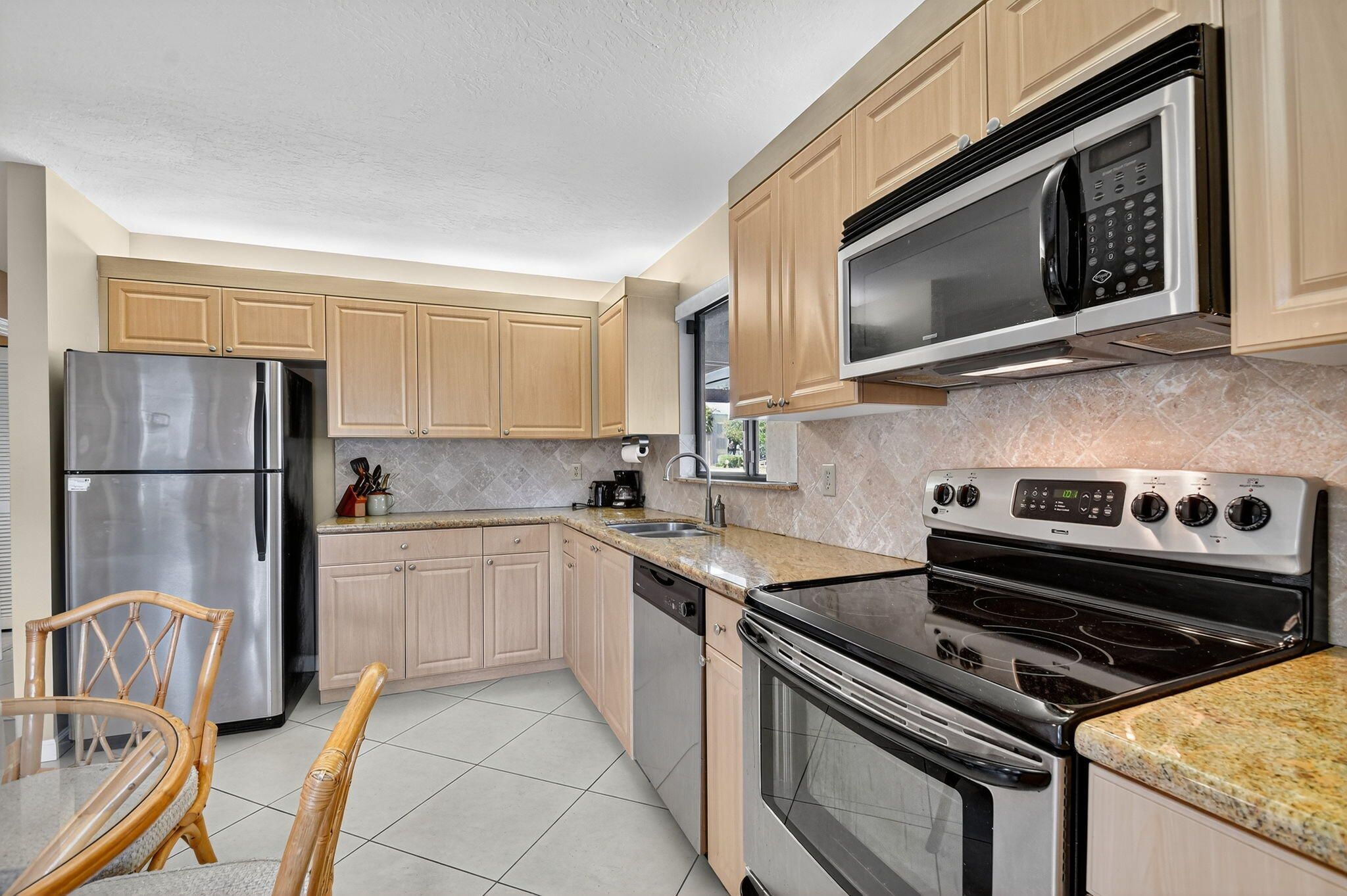Stunning Villa In Prime Banyan Springs Location - Move-In Ready! Enjoy Florida Living At Its Finest In This Beautifully Maintained Villa, Ideally Located In The Heart Of Banyan Springs. The Spacious Great Room Features A Cathedral Ceiling And Skylight, Creating A Bright And Airy Atmosphere. The Large Tile Was Installed On A Bias Creating A More Modern Feel Throughout. French Doors Lead To The Generously Sized Main Bedroom, Which Features Pocket Doors For The Large Closet And Bathroom, A Separate Vanity Area, And Garden Views From Both The Florida Room And The Bedroom Windows. The Kitchen Is Perfect For Casual Dining, Featuring Granite Countertops And Kenmore Appliances, As You Overlook The Private Courtyard And Trellis. The Formal Dining Room Is Just Around The Corner With A