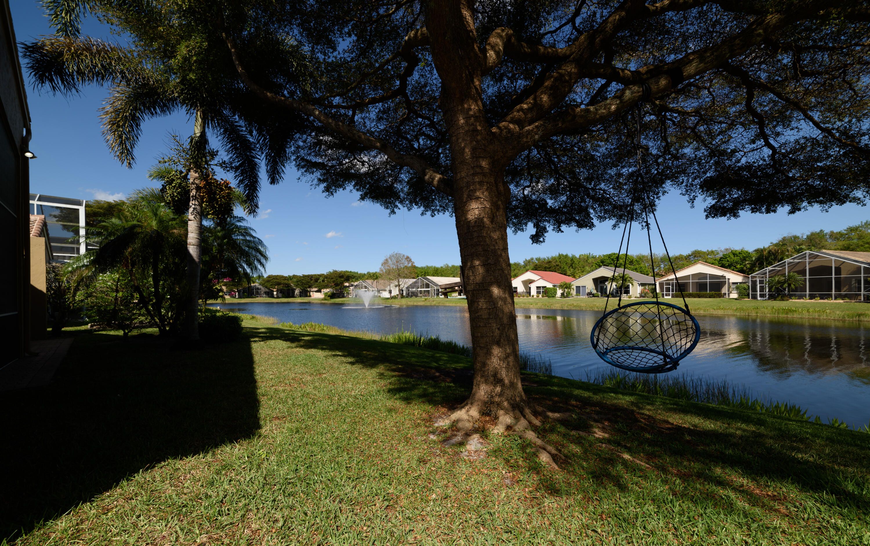 LARGEST MODEL with SUPER HIGH CEILINGS, tropical back and front yard landscaping. ABSOLUTELY PERFECT LOCATION in the MUCH DESIRED CLUB. GEORGEOUS LAKE VIEW. THREE LARGE BEDROOMS allow TONS OF LIGHT to stream in and more closets than you can count! HUGE primary closet. Primary bedroom, family room and screened in lanai overlook palm, elm, and fruit trees along the lovely Diamond Lake. Large kitchen with stainless appliances and double sink. Enormous dining room.THE CLUB HAS IT ALL! Mature landscaping line the creatively curving roads and cul de sacs where many different home models exist (THIS BEING THE LARGEST FLOORPLAN). Once renowned for its exceptional TENNIS program it still employs a tennis pro and has just added newly built pickle ball courts with night lighting. Know