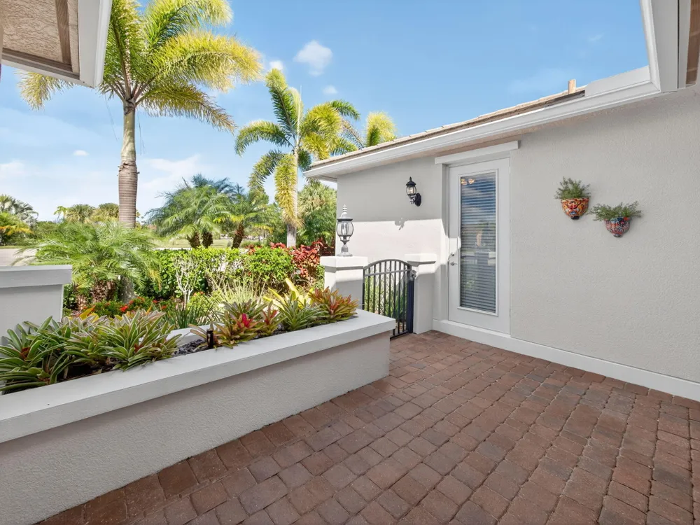 This Immaculate Limited Edition 'SpaceCoast' model features a Gated Courtyard w/ separate entrance to the Casita w/ Closet & Full Bath; Perfect for 4th Bdrm, Office, Hobby Rm or Man Cave. This is an exceptionally private & unique lot w/ Special Lake Views. Featured is Full Impact Glass, Screened Lanai w/Solar-Heated Pool, Automatic Roll Down Hurricane Protection, Dual Master Suites, Ceiling Fans, Upgraded Light Fixtures, Raised Wall Detail, Crown molding, Extensive Landscaping. Kitchen features Wall Oven & Microwave, Gas Stovetop w/ SS Hood, New Granite & Subway Tile Backsplash, Termite Prevention System, & more... Sold As-Is. POF or Pre-Approval required. Owner-occupied. LA Acompanied Showings