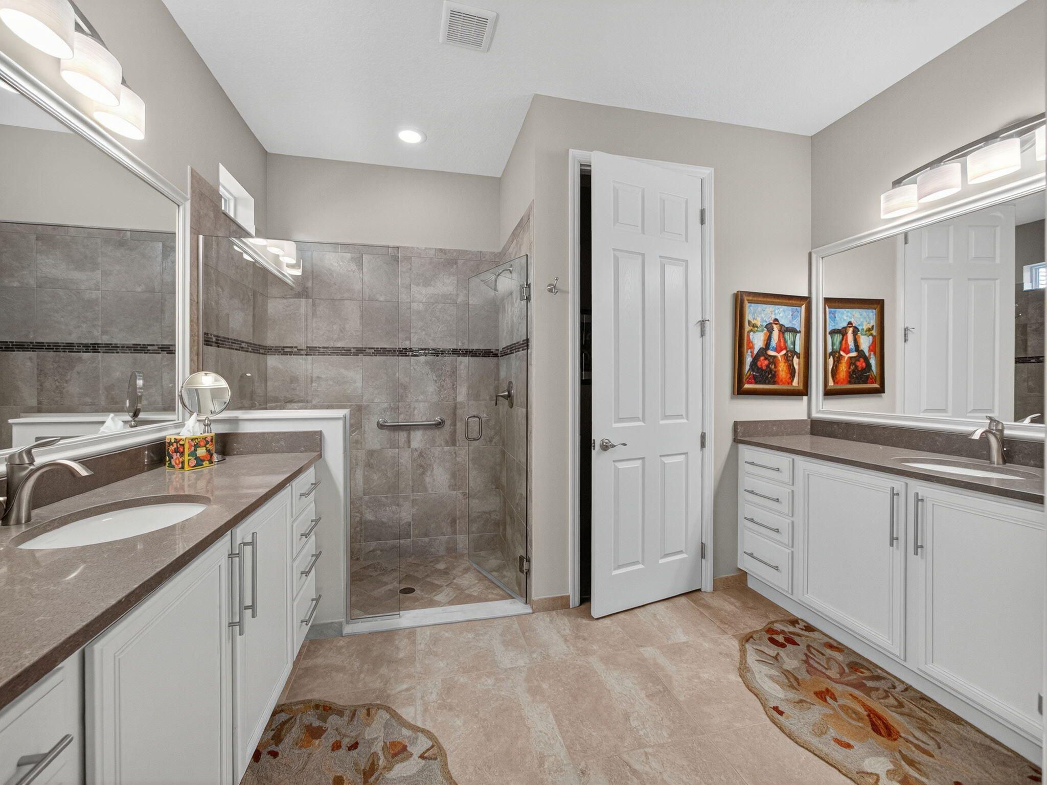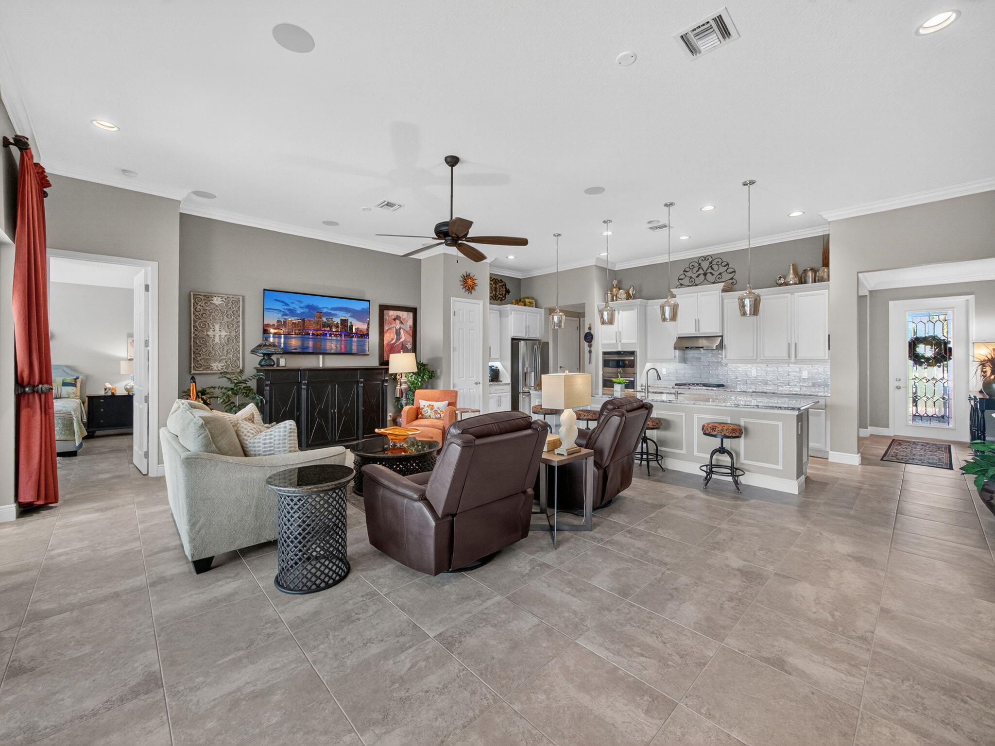 Wow, a Fourth Bedroom & Full Bath in the private-entrance Casita for a guest, Man Cave or your Hobby Room! This Immaculate Limited Edition 'SpaceCoast' w/Pool & Exceptional Lake Views on a most private cul-de-sac home site. Featured is Full Impact Glass, Screened Lanai w/ thermostatically controlled Solar-Heated Pool & Automatic Roll Down Hurricane Screen, Dual Master Suites, Formal Dining Rm, Ceiling Fans, Upgraded Light Fixtures & Closets, Raised Wall Detail, Crown molding, In-ceiling Surround Sound Speakers & Lanai Speakers w/ Vol Control, Extensive Landscaping.plus Overhead Garage Storage, Termite Prevention System, Alarm System, Fire/Smoke Detectors, Kitchen has Dual WallOven/Microwave, Under Cabinet Lighting, Lighted Pantry & Base Cabinets w/ pull-outs, new Granite Counters, Backsplash & Pendant Lights over Huge Island. This house is in NEW Condition inside & out including wall & trim paint, grout & caulking. Owner Occupied. LA to Accompany w/ 24 hrs Notice Requested. POF or Pre-Approval Required w/ FARBAR AS-IS Contract w/o a Buyer's Home Sale a contingency. Vitalia Capital Contribution & Tradition CDD Required from Buyer.