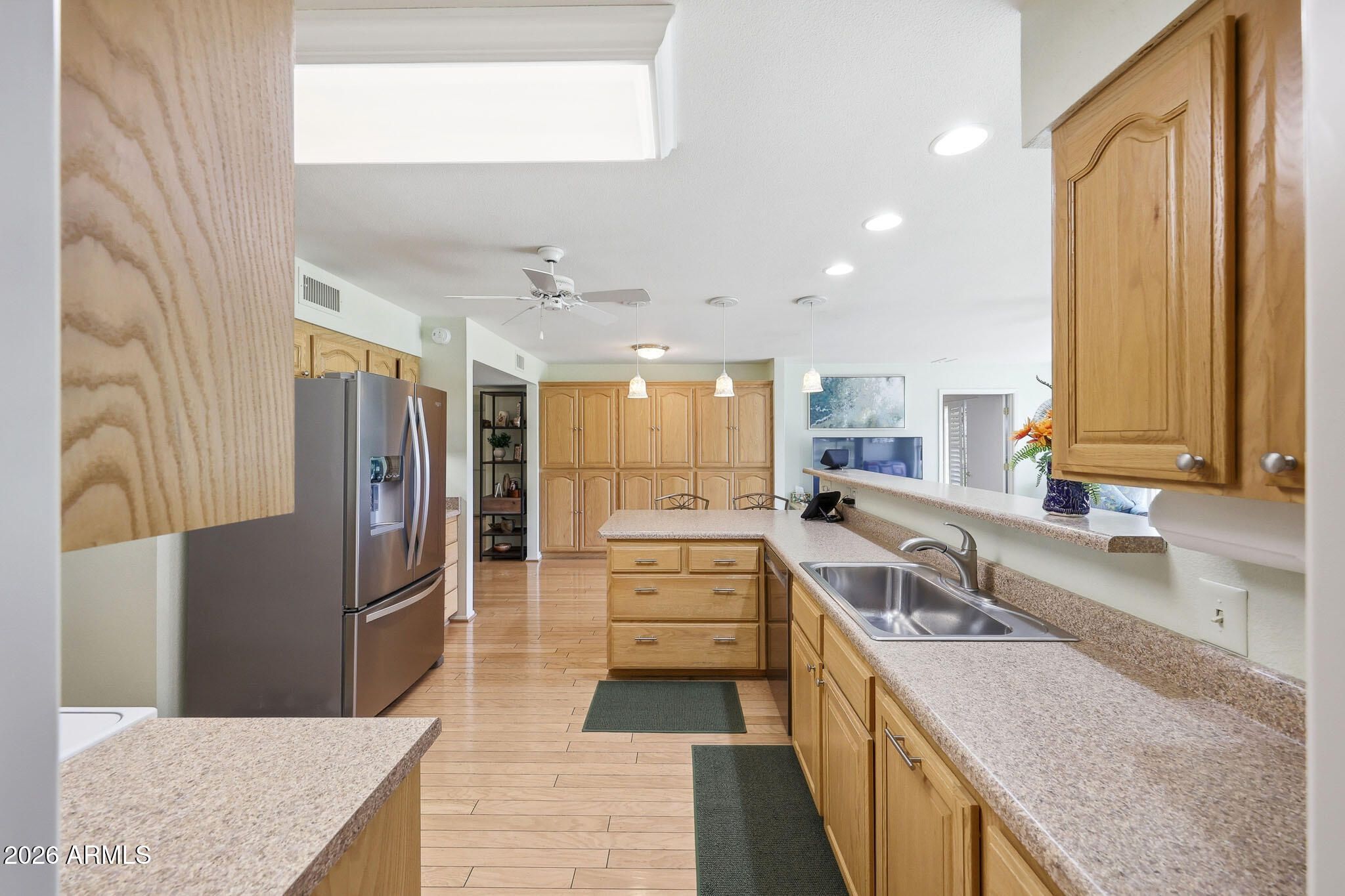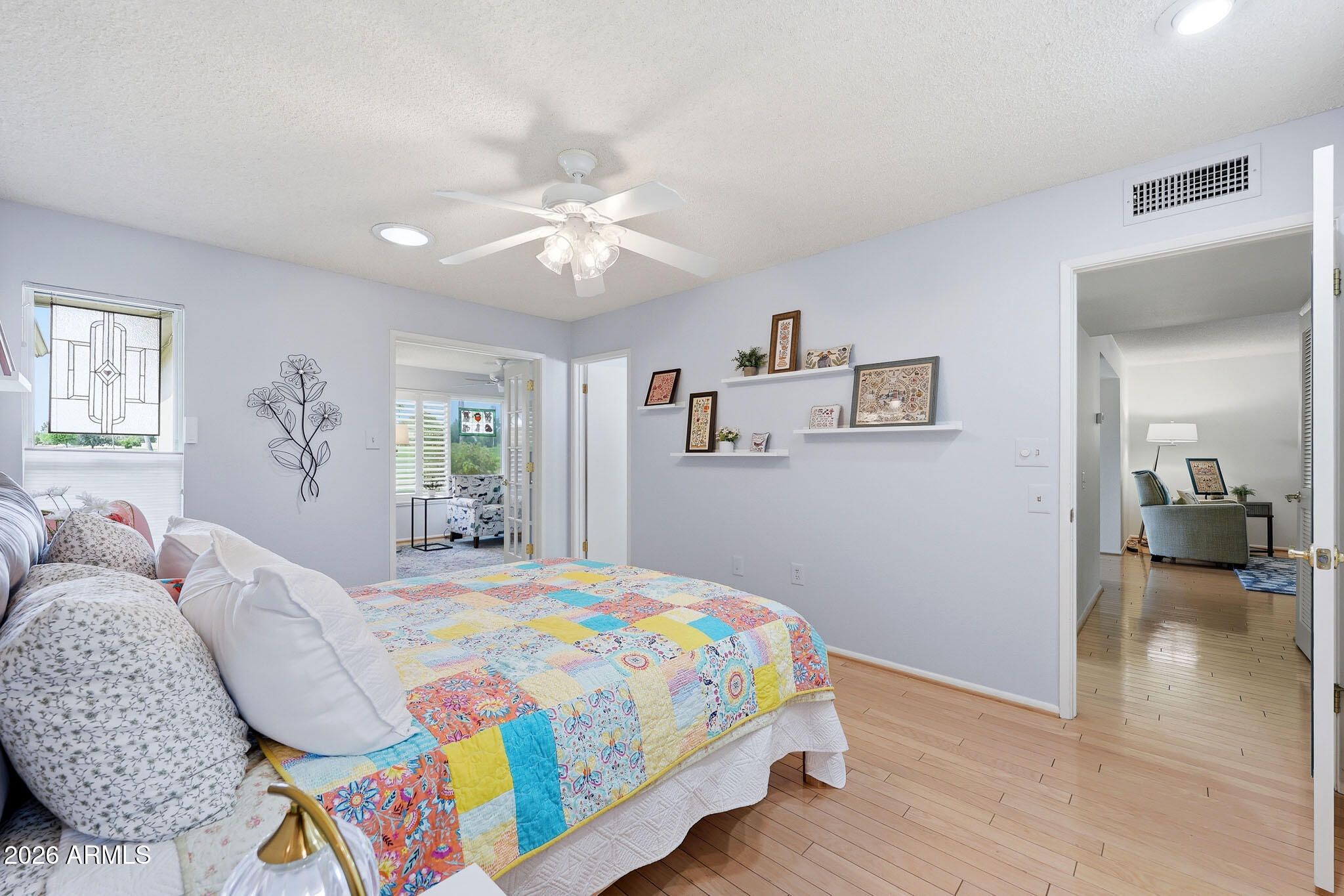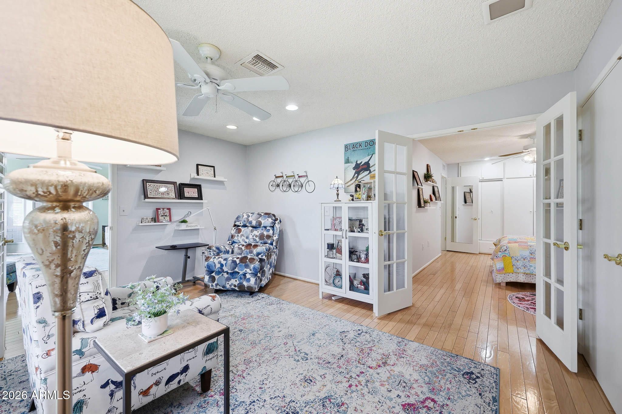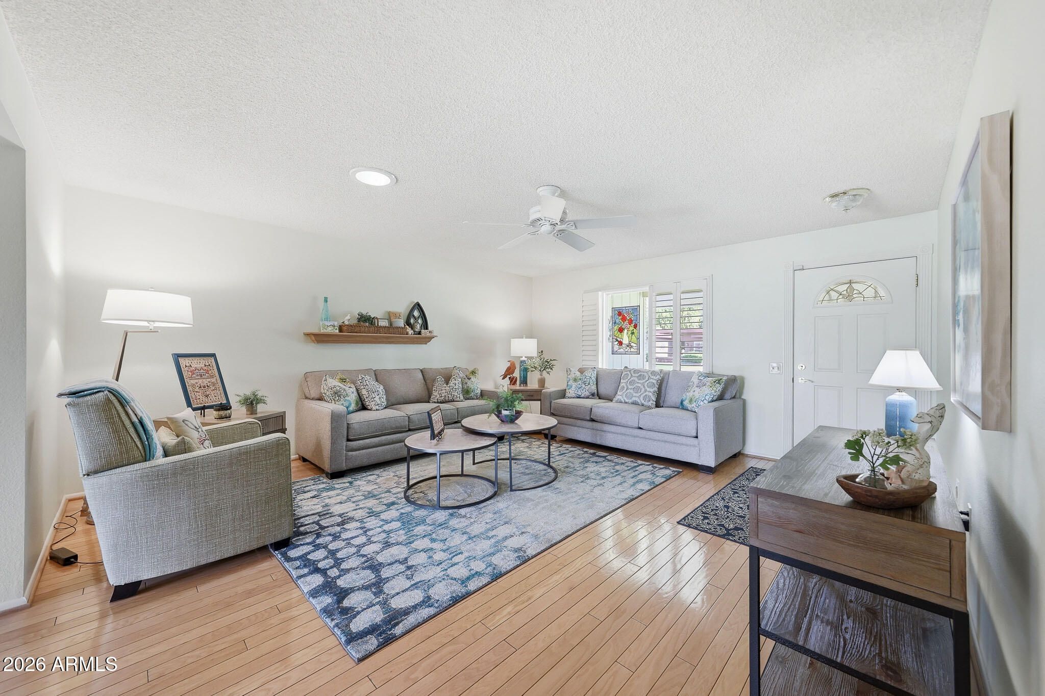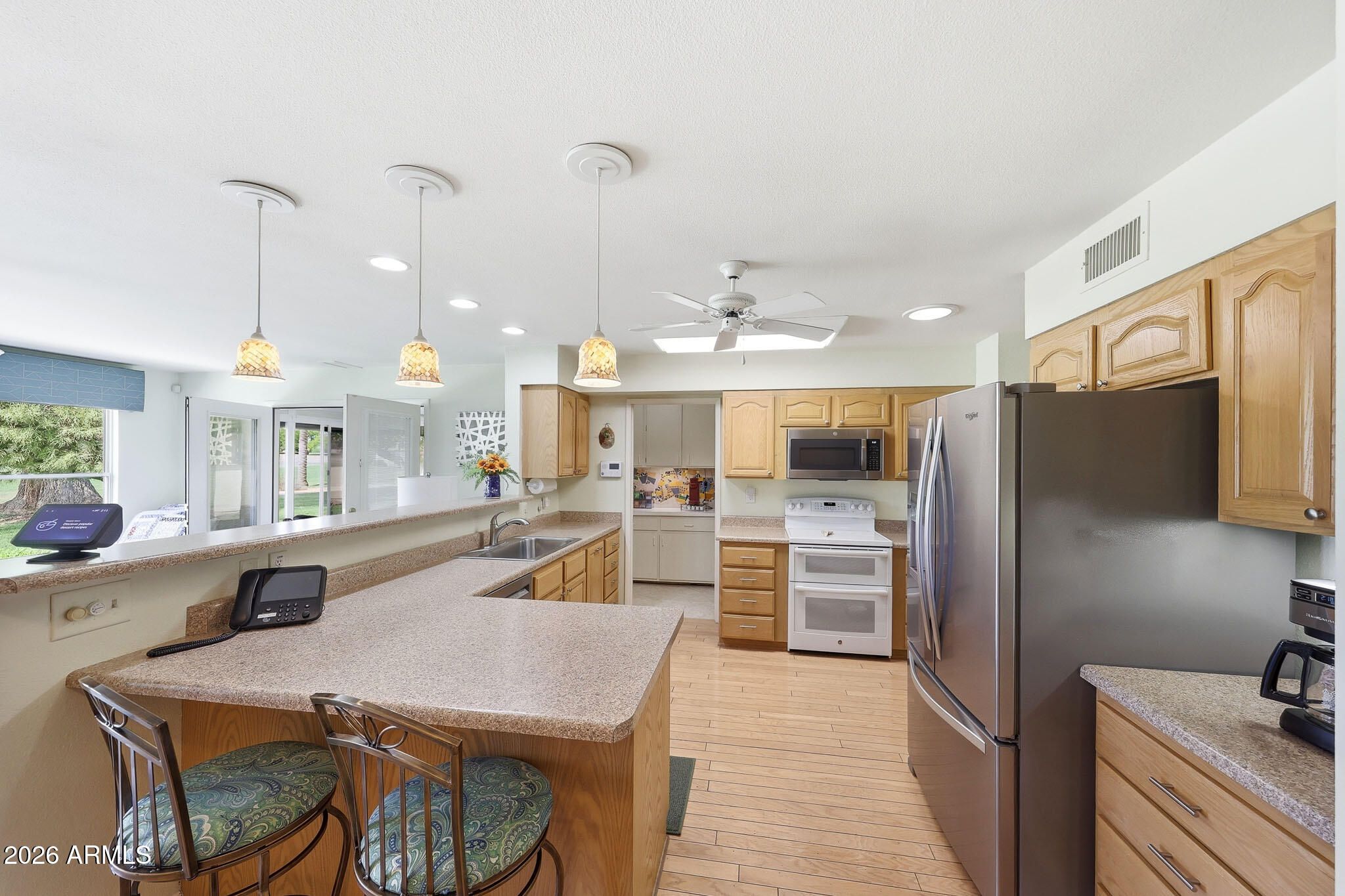 Don't Miss This Expanded Gemini Twin Home On A Golf Course Lot In Sun City, Arizona, Phase 3. From The Moment You Walk In, You Can See Straight Through The Home To One Of The Best Golf Course Views Around. Several Solar Tubes And Skylights Bring In Wonderful Natural Light, Making The Home Feel Bright, Cheerful, And Inviting. The Added Arizona Room Features A Wall Of Windows With Expansive Golf Course Views, Creating A Beautiful Space To Relax, Entertain, Or Enjoy The Sun City Lifestyle. There Is Also An Added Sun Room, Giving This Home Even More Flexible Living Space. Hardwood Flooring Runs Through Most Of The Home, With Tile In The Bathrooms. The Primary Bedroom Has Been Expanded, Offering Extra Space That Could Be Used As A Guest Area, Office, Craft Room, Or Hobby Space. The Kitchen Has Been Remodeled With An Open-Concept Feel With Updated Cabinets, Updated Countertops, And A Coffee Bar. Updated Windows And Roller Shield Shutters Add Comfort And Function. This Golf Course Gemini Twin Home Has A Lot To Offer And Even More To See In Person. Please Stop By And See It Soon!