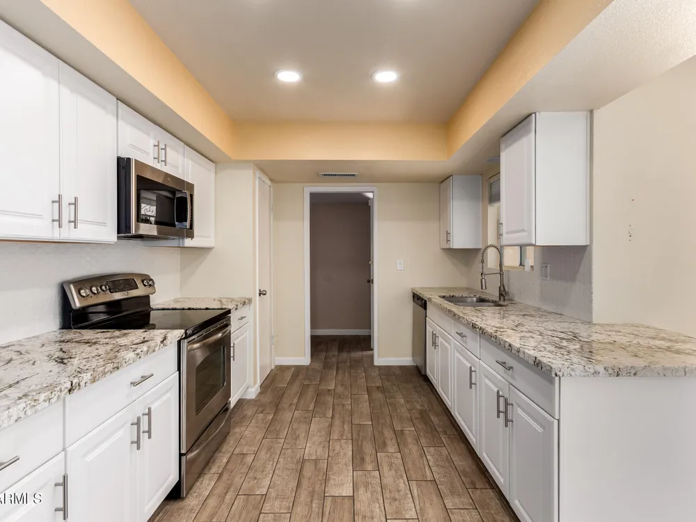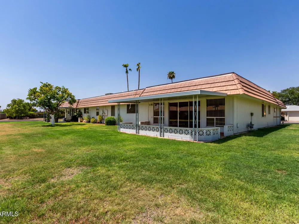 Welcome to this beautifully maintained 2-bedroom, 2-bath Gemini residence, perfectly situated on a desirable corner lot in the heart of Sun City. Move-in ready and thoughtfully designed, this home blends comfort and sophistication with its open, light-filled layout and timeless finishes. Inside, you'll find elegant wood-grain tile flooring, a soft neutral color palette, and abundant natural light that enhances every room. The chef's kitchen is a true centerpiece, featuring gleaming stainless steel built-in appliances, granite countertops, a stylish tile backsplash, and generous cabinetry for all your culinary needs. The inviting primary suite offers a serene retreat with an ensuite bath and spacious walk-in closet. Adding to your peace of mind, the home's air conditioning system was replaced in 2023. Beyond the home, Sun City living offers a lifestyle like no other. Enjoy world-class amenities including multiple recreation centers, golf courses, sparkling pools, state-of-the-art fitness facilities, and an array of social clubs and activities designed to fit every interest. Whether it's tennis, woodworking, art classes, or simply enjoying Arizona's endless sunshine, Sun City provides the perfect backdrop for an active, connected, and fulfilling lifestyle. This is more than just a homeit's an opportunity to embrace resort-style living every single day.