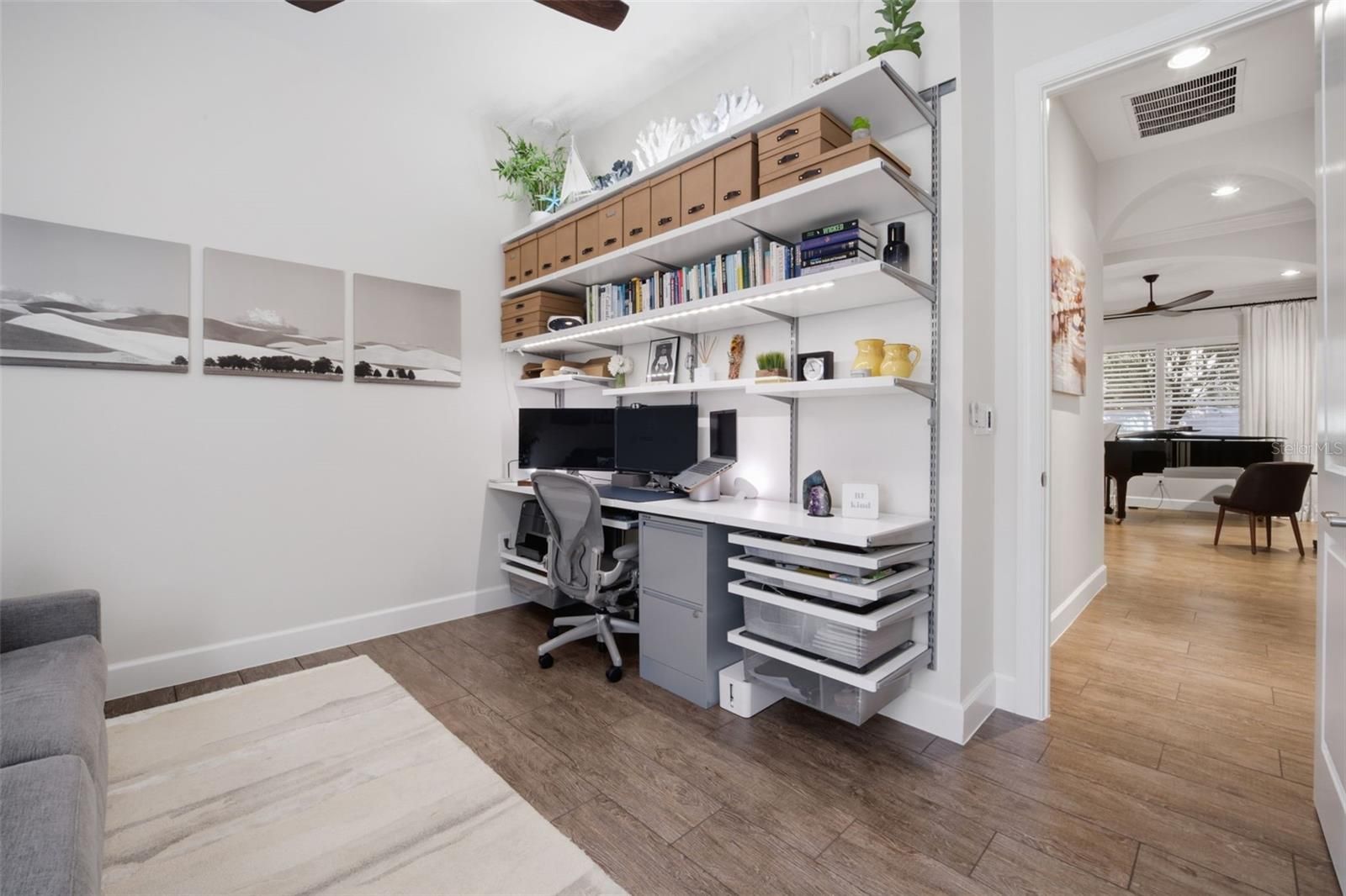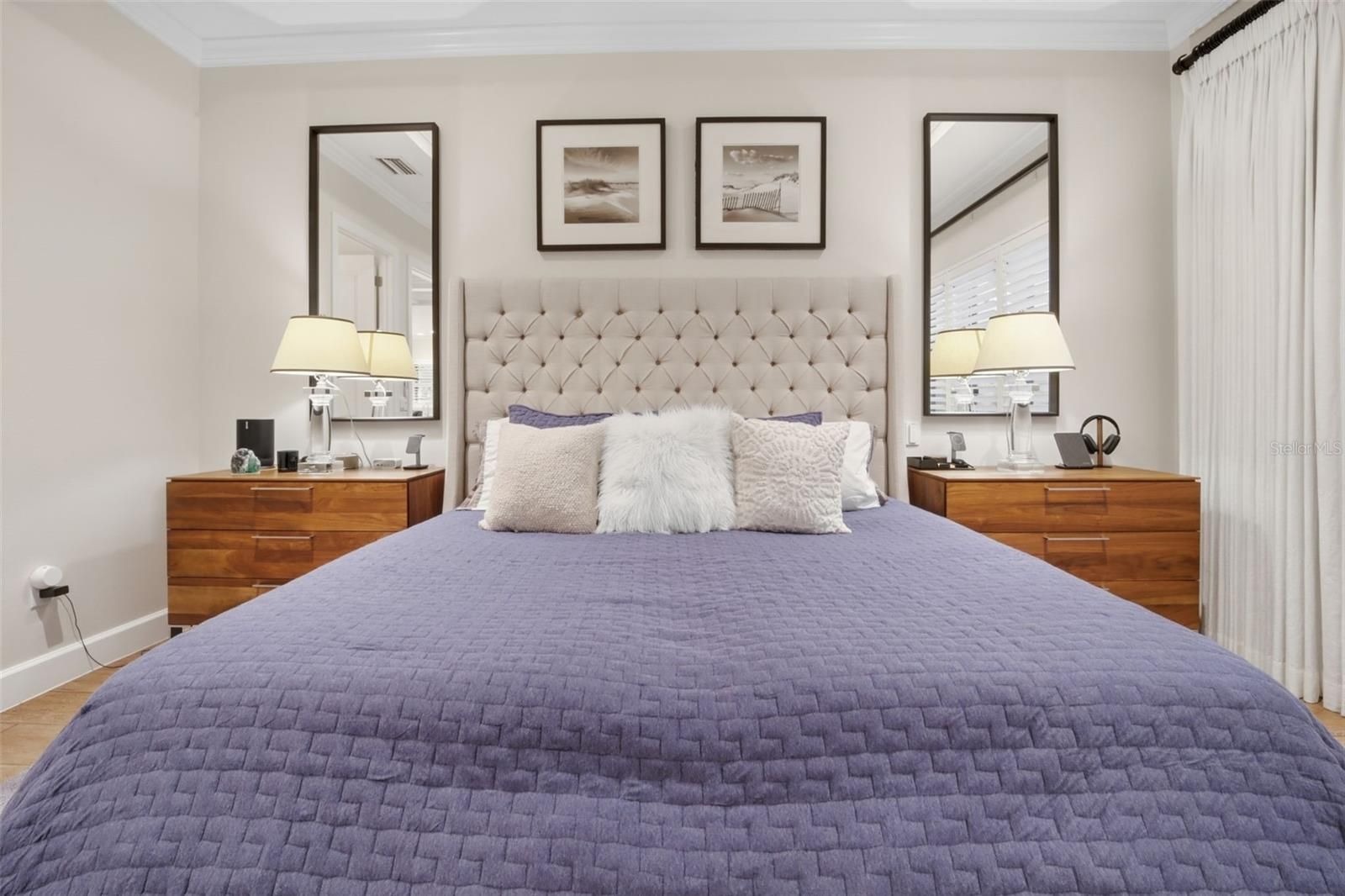 - Built-in Features, Ceiling Fan(s), Crown Molding, High Ceilings, Living/Dining Room, Open Floorplan, Solid Surface Counters, Solid-Wood Cabinets, Split Bedrooms, Thermostat, Tray Ceiling(s), Walk-In Closet(s), Window Treatments