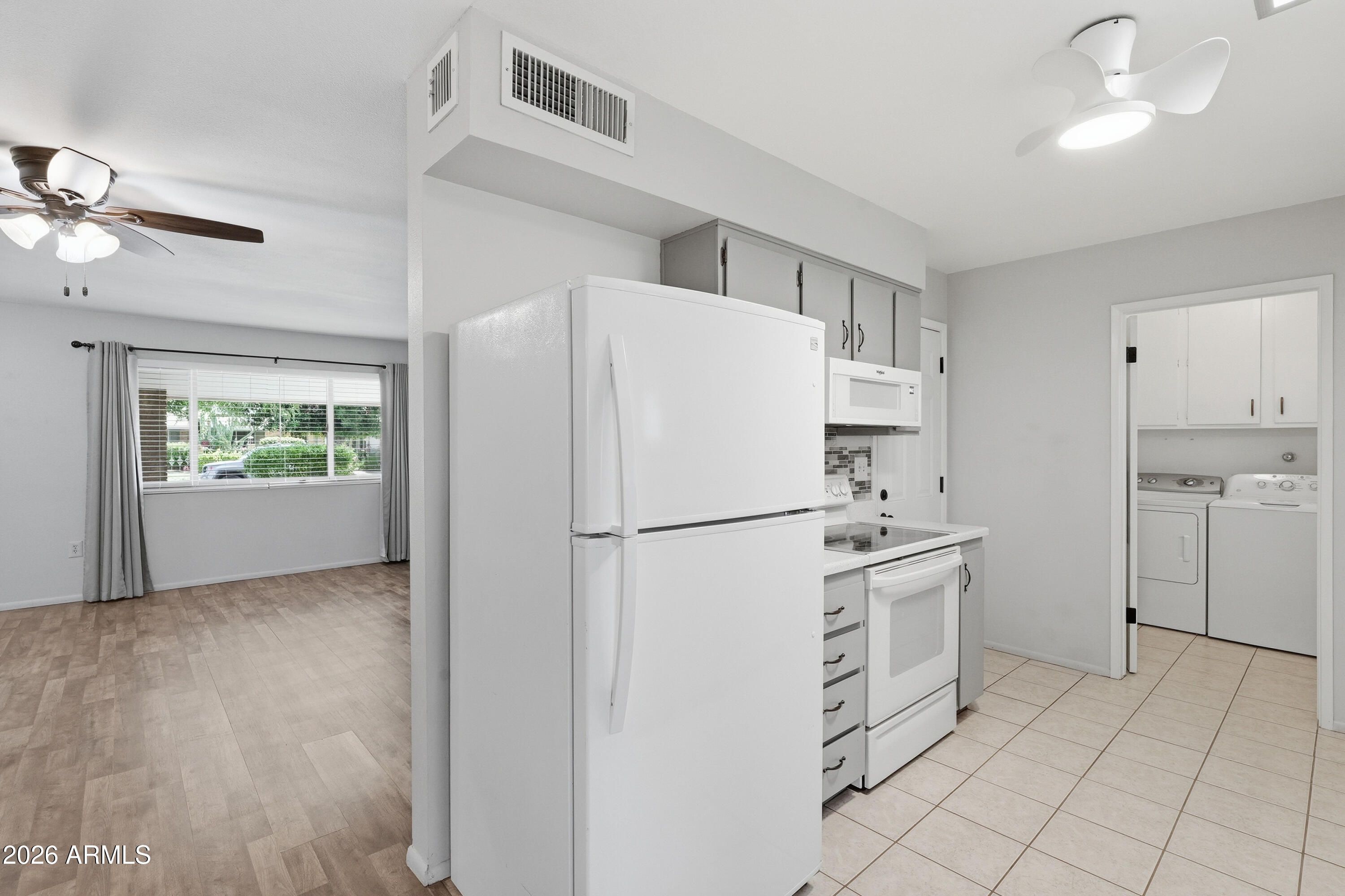 - Dryer, Washer, Water Softener Owned, Reverse Osmosis, Refrigerator, Built-in Microwave, Dishwasher, Disposal, Electric Range