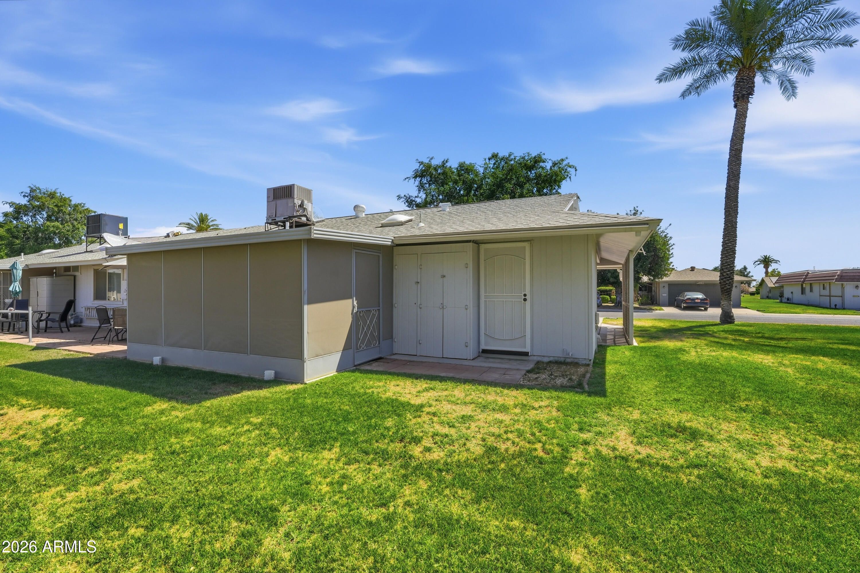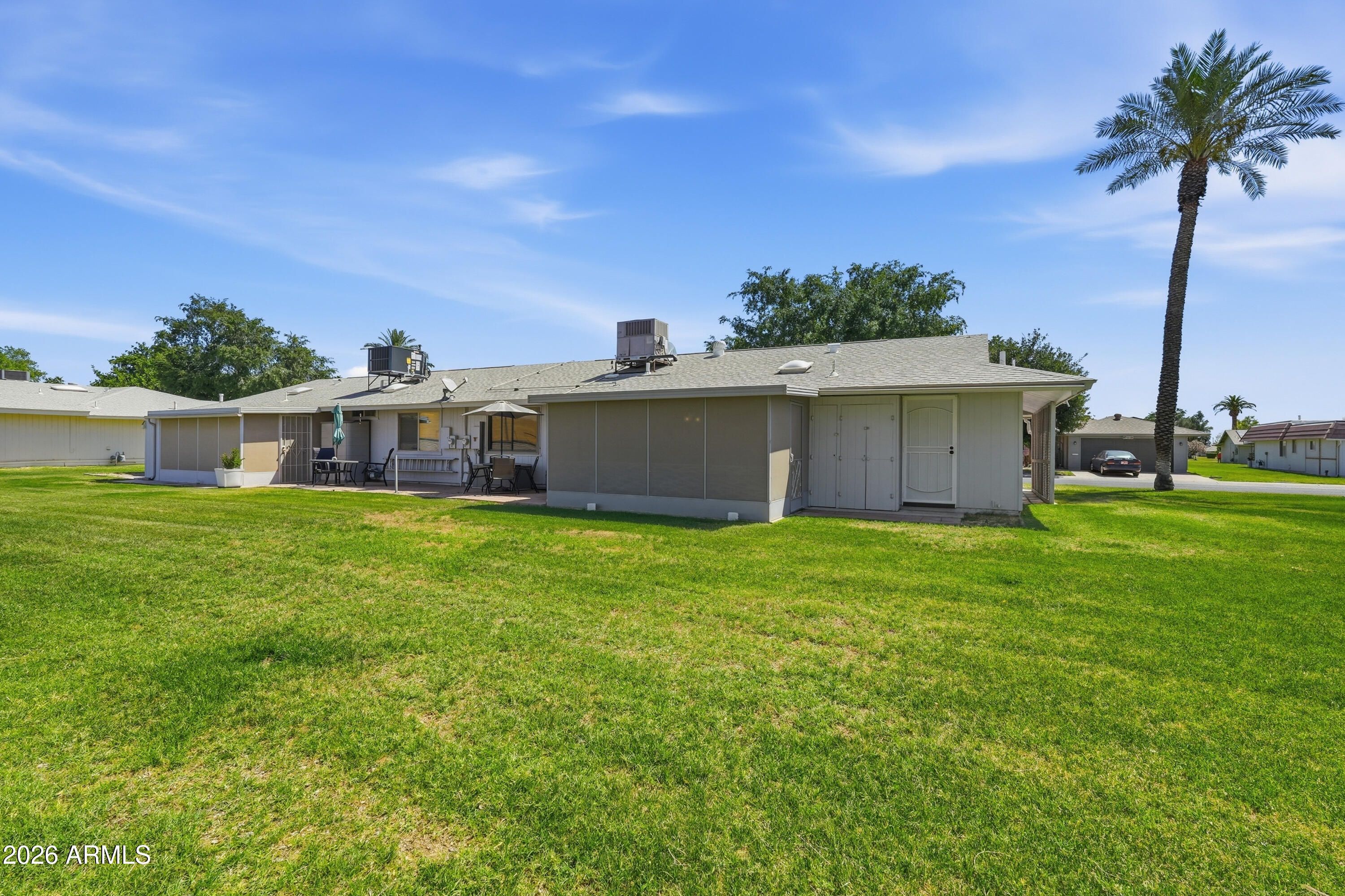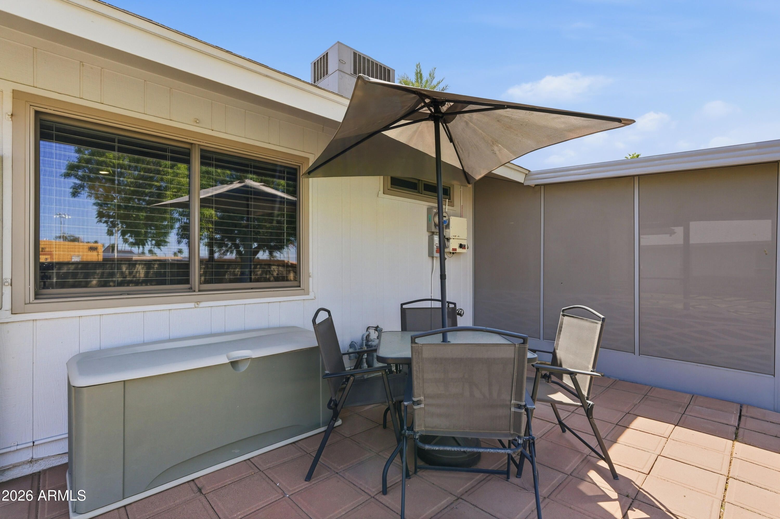 Approximately 1,062 square feet Gemini Twin featuring 2 bedrooms and 1 bathroom. The home includes owned solar panels, a water softener, and a reverse osmosis system. The bathroom has been upgraded, and the home features newer Anderson windows, luxury vinyl flooring, and carpeting in the bedrooms. The window treatments are newer blinds, and the home has newer insulation and a newer hot water tank. There is a screened-in sunroom to enjoy your morning coffee and a retractable privacy screen. Enjoy all the amenities Sun City has to offer.