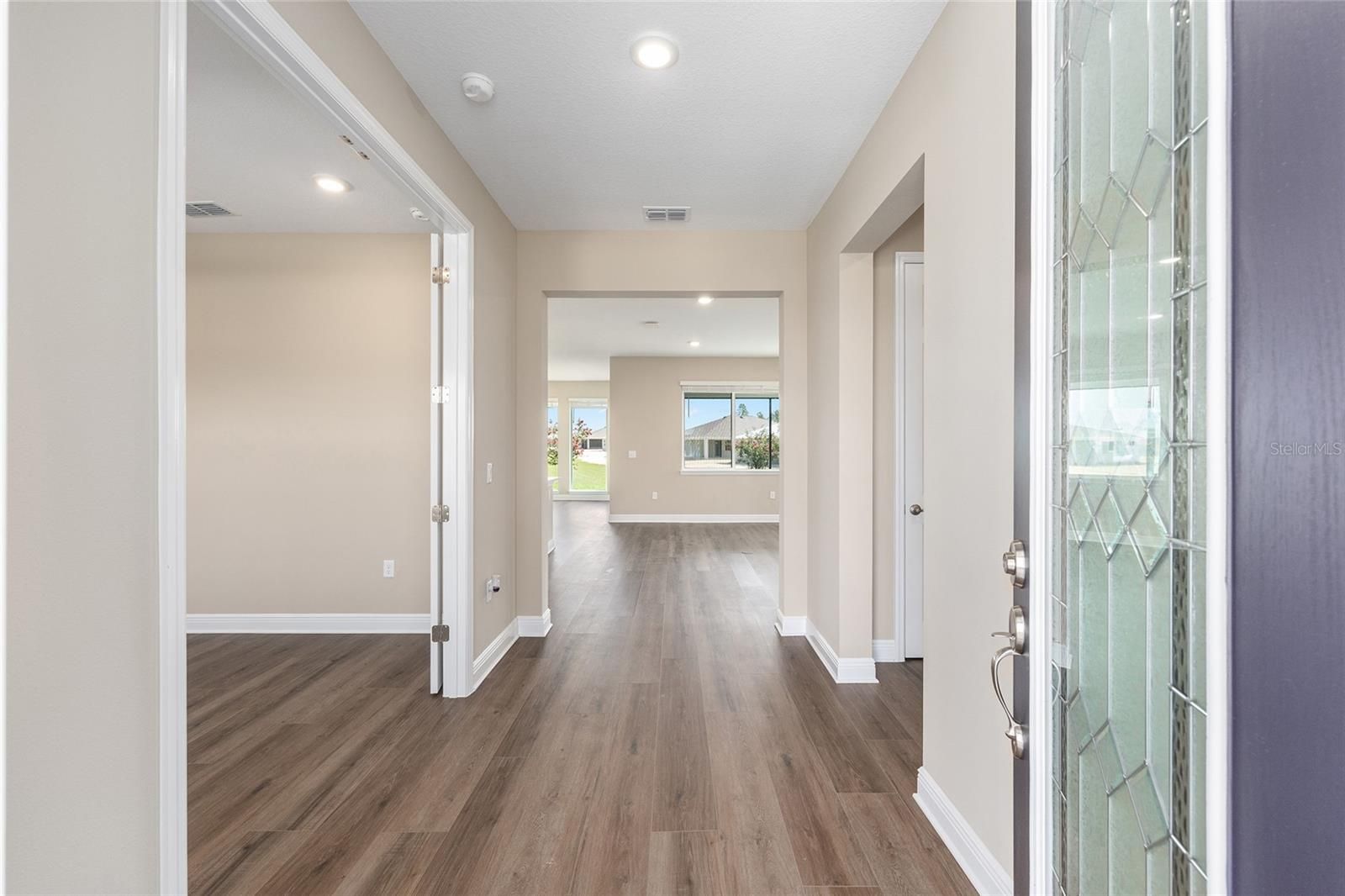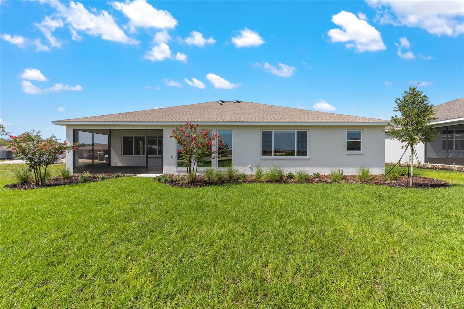 Step into effortless elegance with this brand-new Beatrix model, located in the heart of Ocala’s most sought-after gated 55+ community-On Top of the World. Designed for both comfort and style, this 2-bedroom, 2-bathroom home features a spacious open-concept layout, upscale finishes, and a versatile flex room with French doors—perfect for a home office, den, or creative space. The chef-inspired kitchen is a true centerpiece, showcasing quartz countertops, a generous center island, stainless steel appliances, and sleek cabinetry with under-cabinet lighting. Whether you're hosting guests or enjoying a quiet evening in, the sunlit dining area flows effortlessly to a screened lanai, offering tranquil views of the property. The luxurious primary suite is your personal retreat, complete with a walk-in closet with direct access to the laundry room, and a spa-like ensuite bathroom featuring his-and-her style vanities with high-end quartz finishes and a beautifully tiled walk-in shower with a glass door. A thoughtfully designed guest wing offers privacy and comfort for visiting friends or family. This home also includes a spacious 2-car garage with an attached golf cart garage—perfect for exploring the community or quick trips to nearby shopping and amenities. Enjoy access to resort-style amenities, golf cart-friendly pathways, and the vibrant, active lifestyle that defines On Top of the World. Don’t miss your chance—schedule your private tour today! This Beatrix beauty won’t last long!