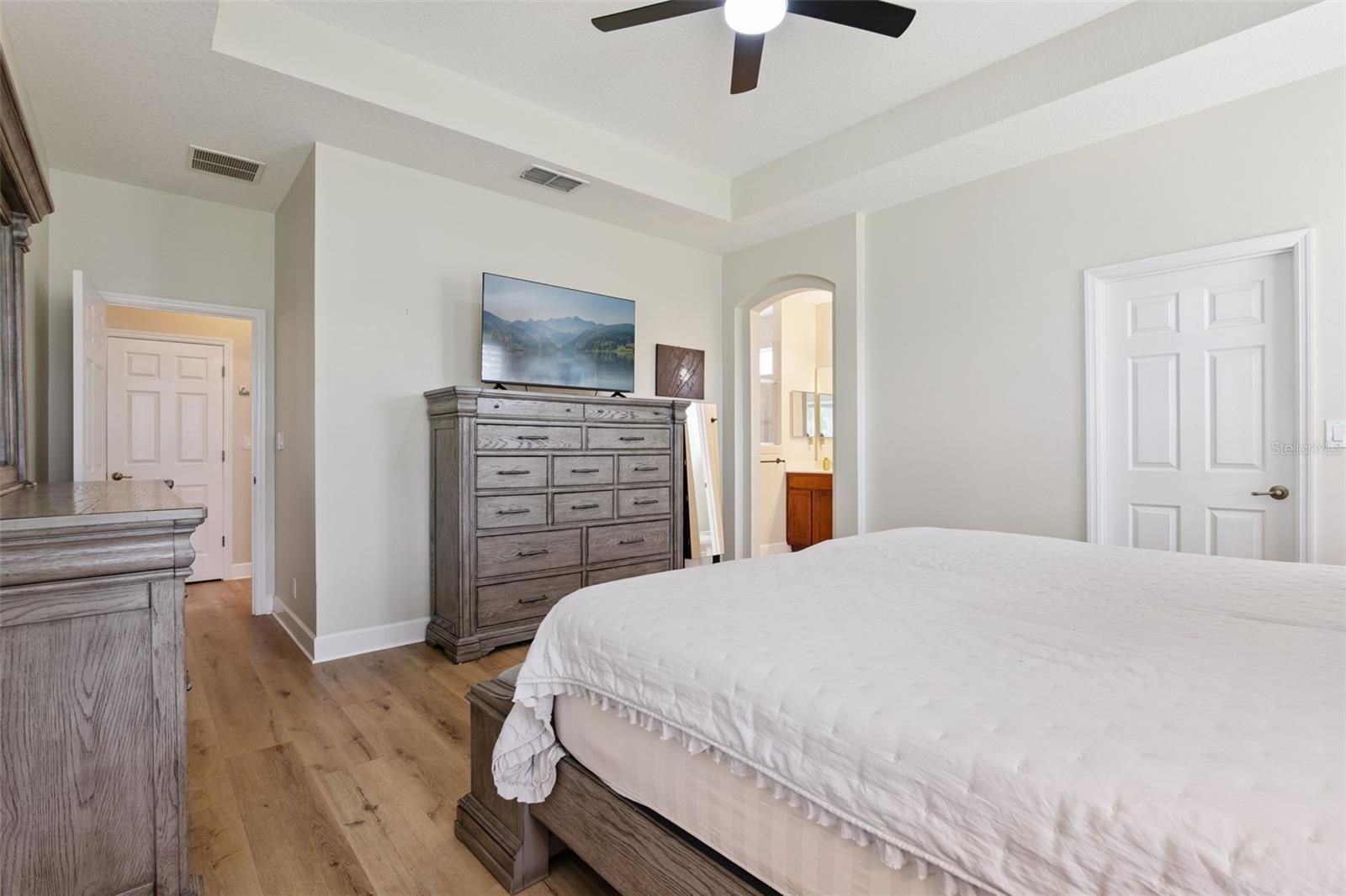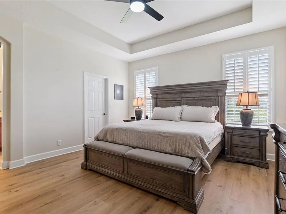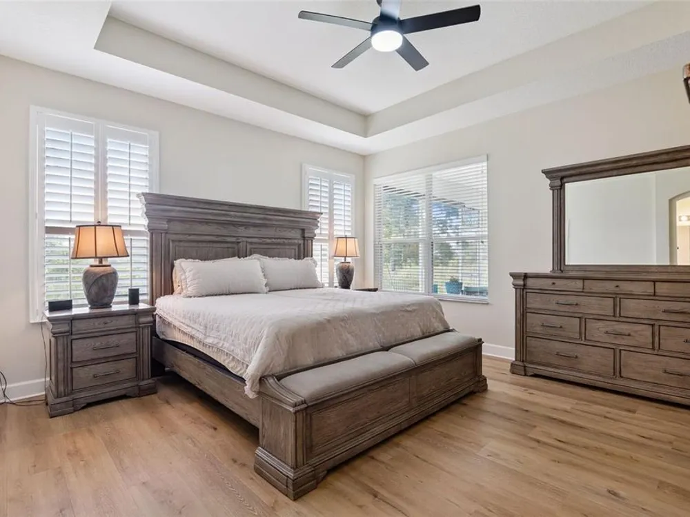 - Ceiling Fan(s), Open Floorplan, Main Level Primary, Solid-Wood Cabinets, Split Bedrooms, Thermostat, Tray Ceiling(s), Walk-In Closet(s), Window Treatments