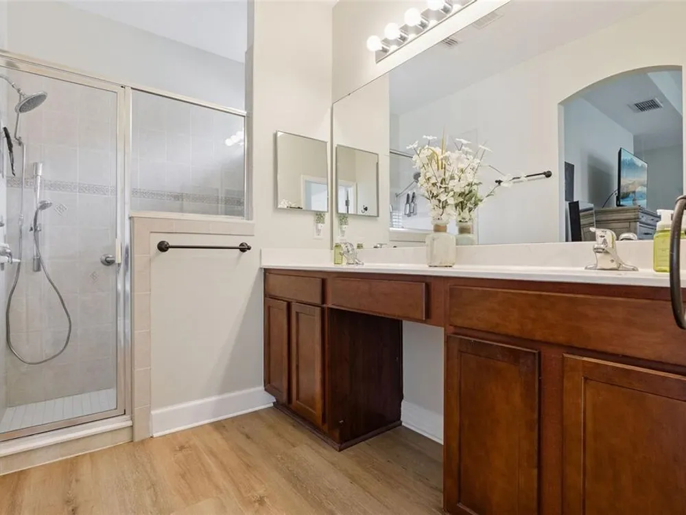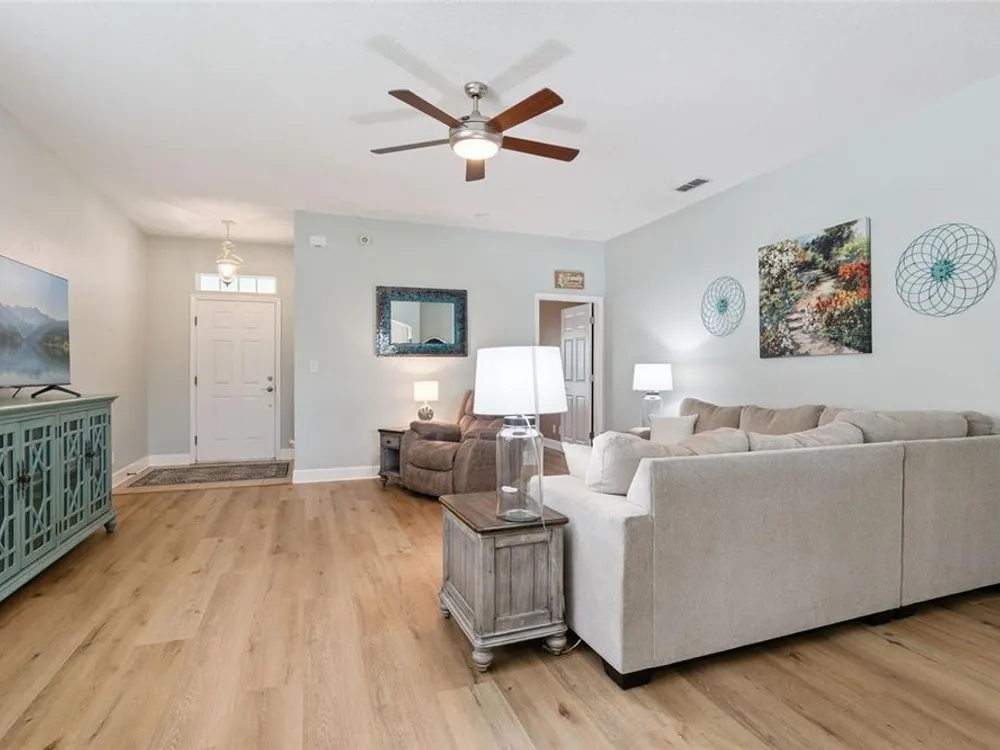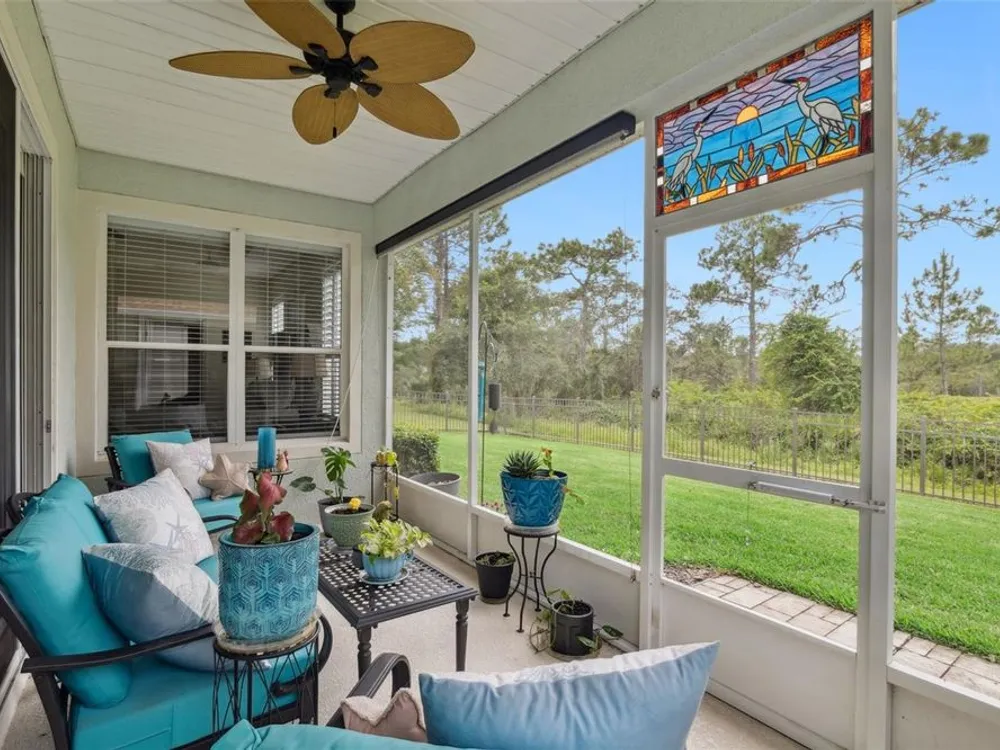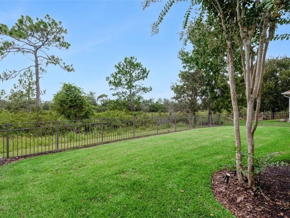 St. Joe 3 Bedroom/2 Bath Cardinal floor plan with a fenced backyard that has been impeccably maintained & a fabulous conservation area view within the Victoria Gardens 55+ neighborhood. Features include luxury vinyl flooring, New Roof & Water Heater replaced on 10/2023, A/C condenser 18’, Plantation style shutters, 5” baseboards, ceiling fans in all Bedrooms/Great Room/Lanai, “no carpet”, water softener & a filtration system. The Light & Bright 17'x 21' Great Room allows you flexibility for furniture placement. Kitchen offers 42" Cherry cabinets w/ crown molding & a 4-burner natural gas range. Primary suite provides a tray ceiling, walk-in closet w/ organizer & an en suite with raised height vanity, dual sinks & a spacious glass enclosed walk-in shower w/ bench seat & a grab bar. You will enjoy your morning coffee or late afternoon beverage on the 17'x 8' screened enclosed covered patio with a remote-controlled shade overlooking the fenced backyard & a scenic conservation area view. Utility room has storage cabinets, washer, electric dryer & a natural gas connection for the future. The 20’ x 21’ garage offers a laundry tub & storage shelving. Victoria Garden residents have access to their own Private Clubhouse. HOA fee includes lawn care, Spectrum HFC TV & internet, and reclaimed water for yard irrigation. Community is within 1 mile of I-4 that offers great access to the east coast beaches, Orlando (40 minutes) and 3 International airports within 1 hour.