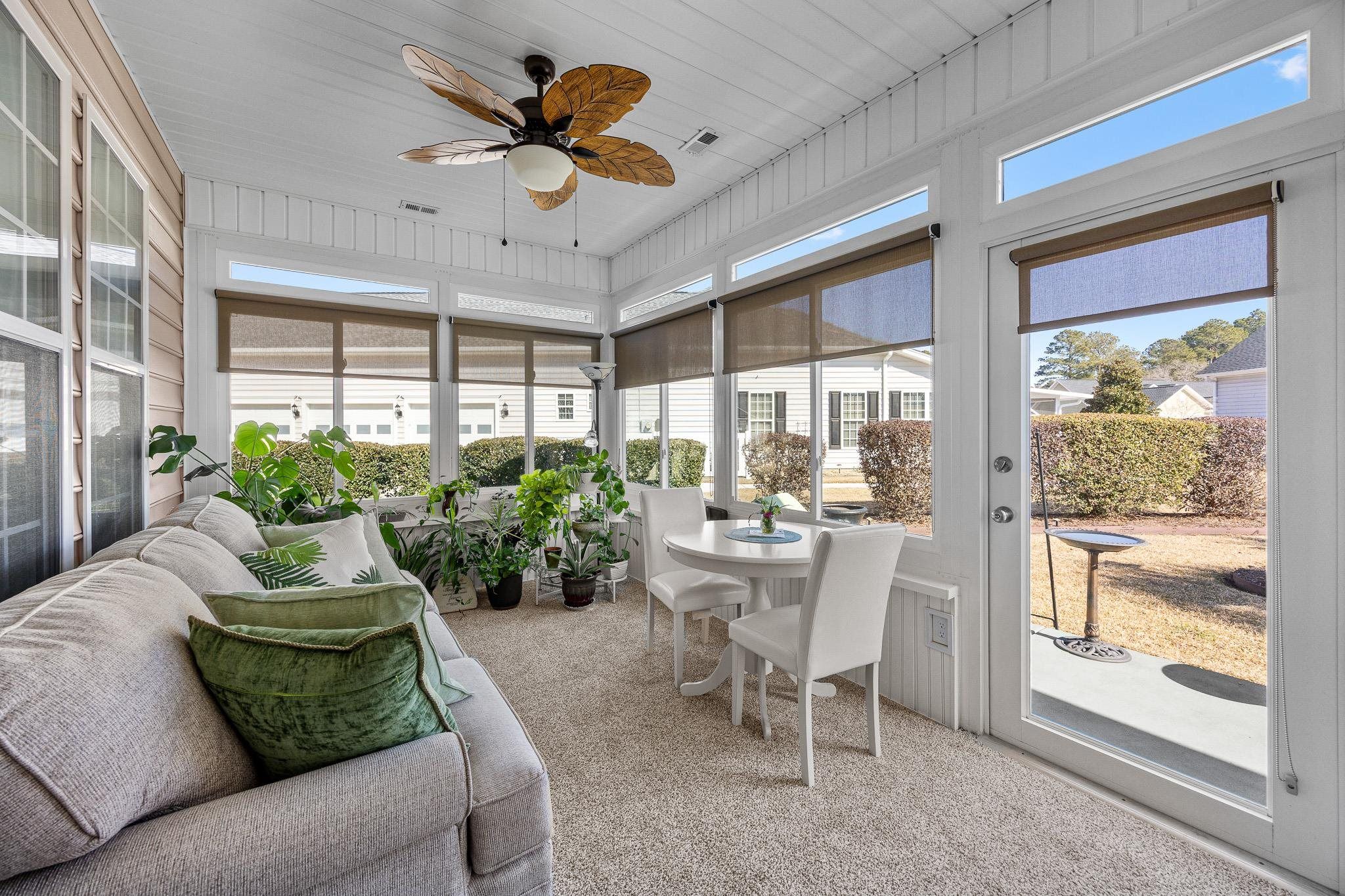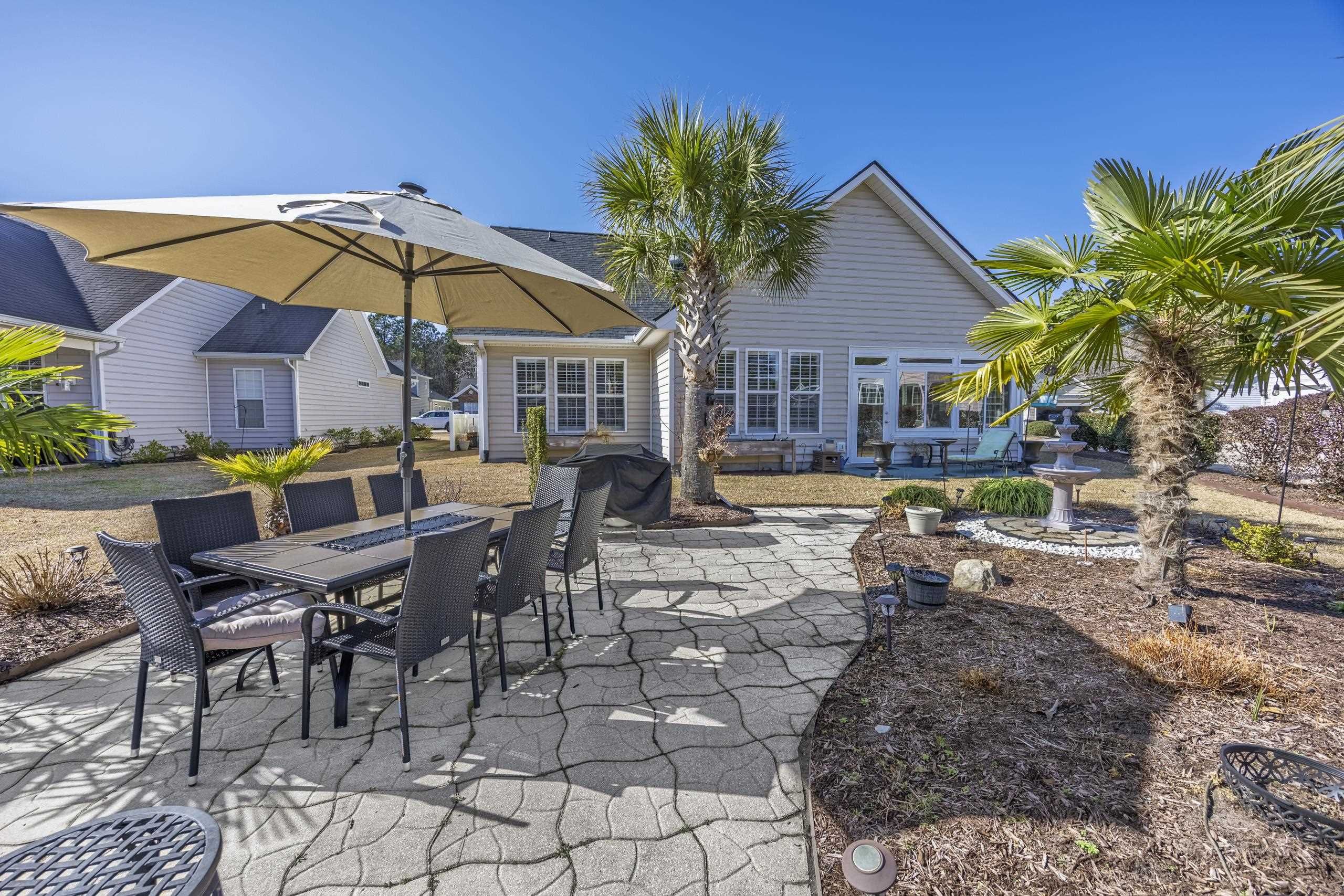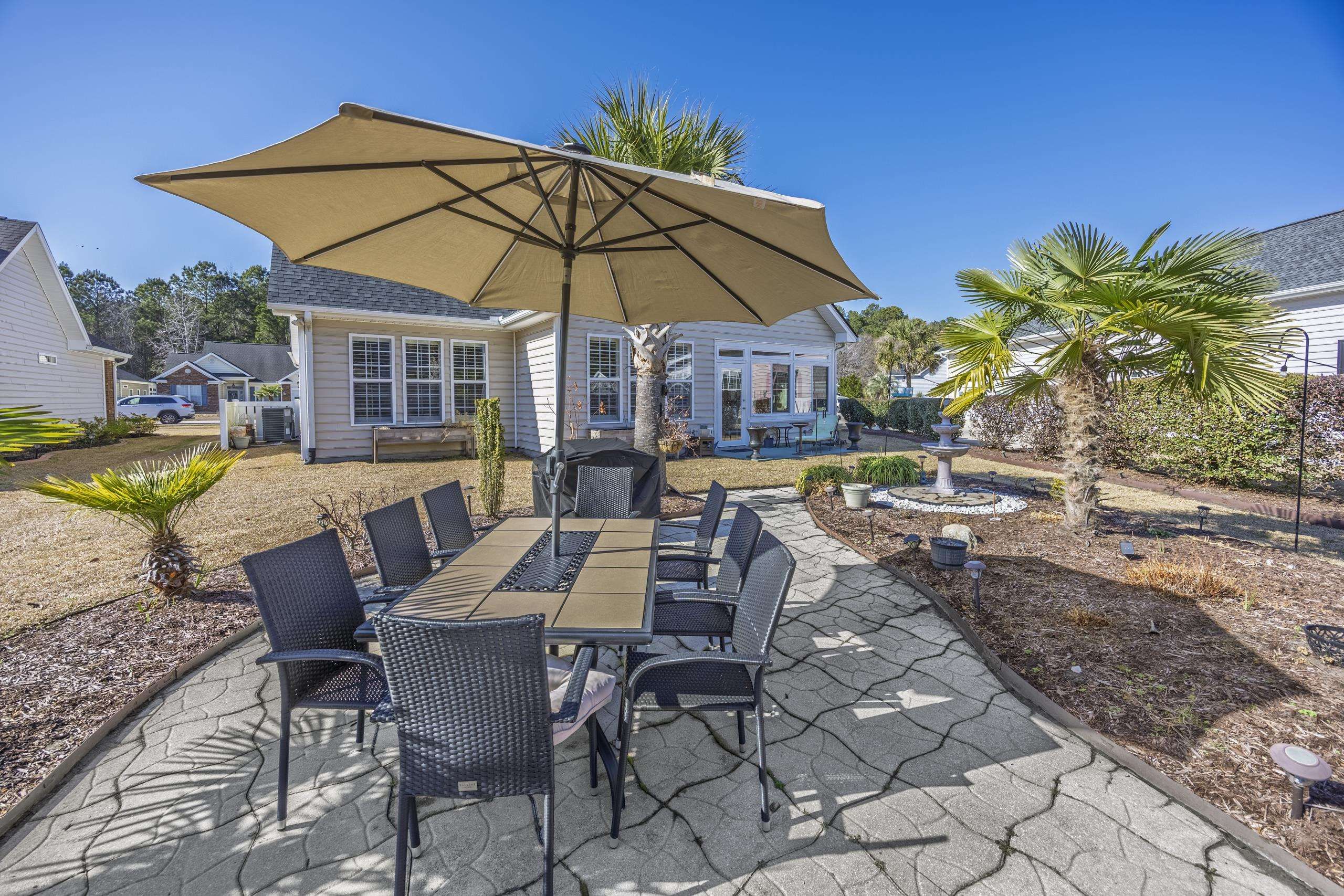 Welcome to 1011 Rudder Court, perfectly situated in one of the area's premier 55+ communities — Myrtle Trace South. Ideally located on the border of Myrtle Beach and Conway, this home offers exceptional convenience. The community pool is just around the corner, and you’re minutes from grocery stores, shopping, golf courses, medical facilities, restaurants, and more. It’s truly a fantastic place to call home. This beautifully designed 3-bedroom, 2-bath residence features a desirable split-bedroom, open-concept floor plan with a natural, easy flow. Gorgeous wood flooring extends throughout the main living areas, while abundant windows and vaulted ceilings create a bright, airy, and spacious feel. A pocket door near the guest wing allows you to create a private retreat for visitors, complete with a full bath and a generously sized bedroom — large enough to comfortably accommodate a king-size bed. Home chefs will appreciate the well-appointed kitchen featuring granite countertops, ample cabinetry, and a charming breakfast area enhanced by beautifully crafted built-ins for additional storage. The sunroom, recently updated with new flooring, serves as a peaceful haven — perfect for bird watching, morning coffee, or simply relaxing. The spacious primary suite offers comfort and style, while the adjoining ensuite bath boasts several upgrades, highlighted by a tiled shower that truly stands out. Additional features include: • Utility sink • Lawn irrigation system • Extended garage for extra storage or workspace & built-in storage within the garage will convey. And a HUGE BONUS — the HOA cuts the lawn for you! Enjoy low-maintenance living in a vibrant, convenient, and welcoming community.