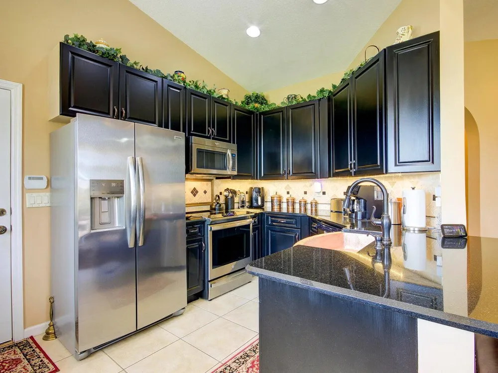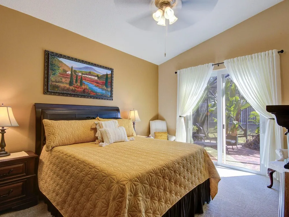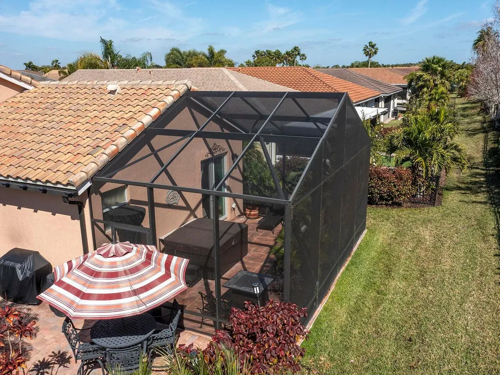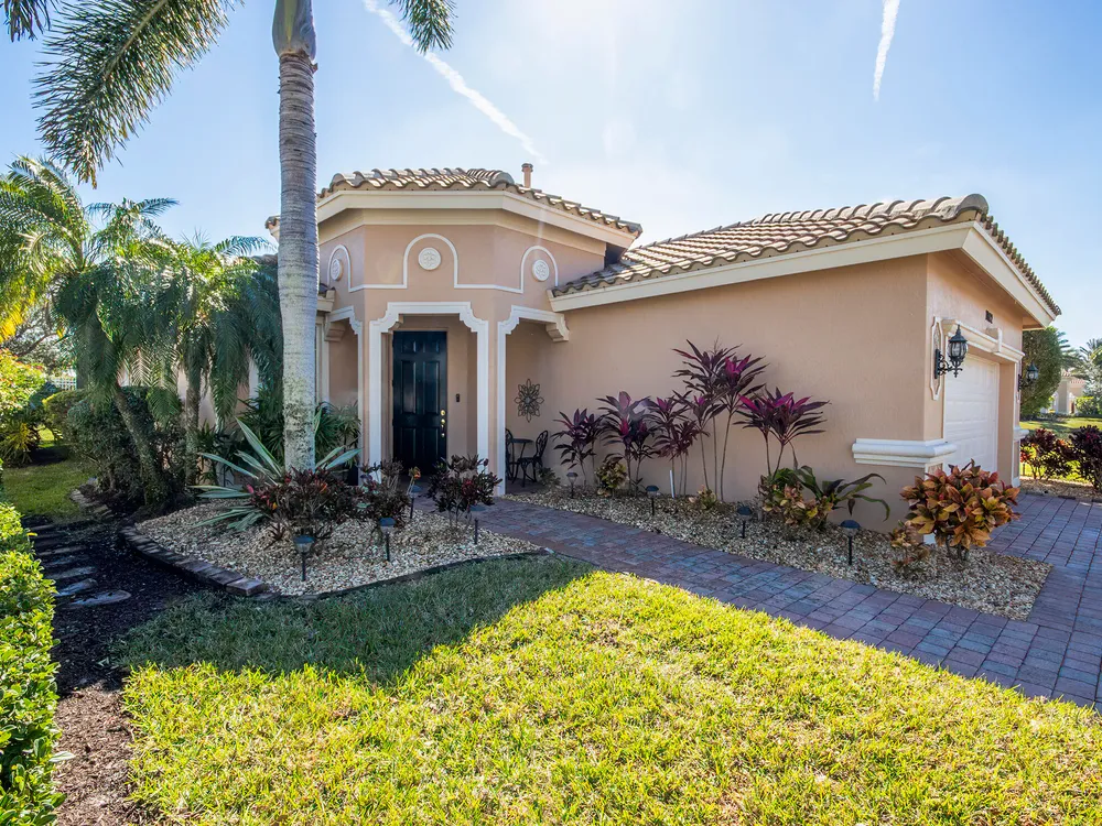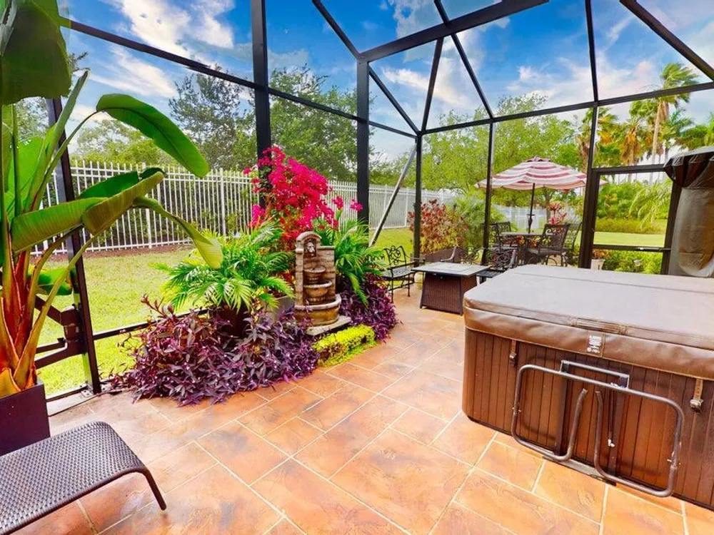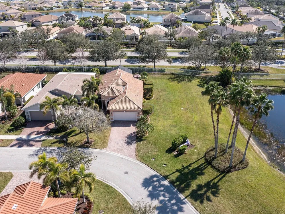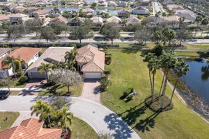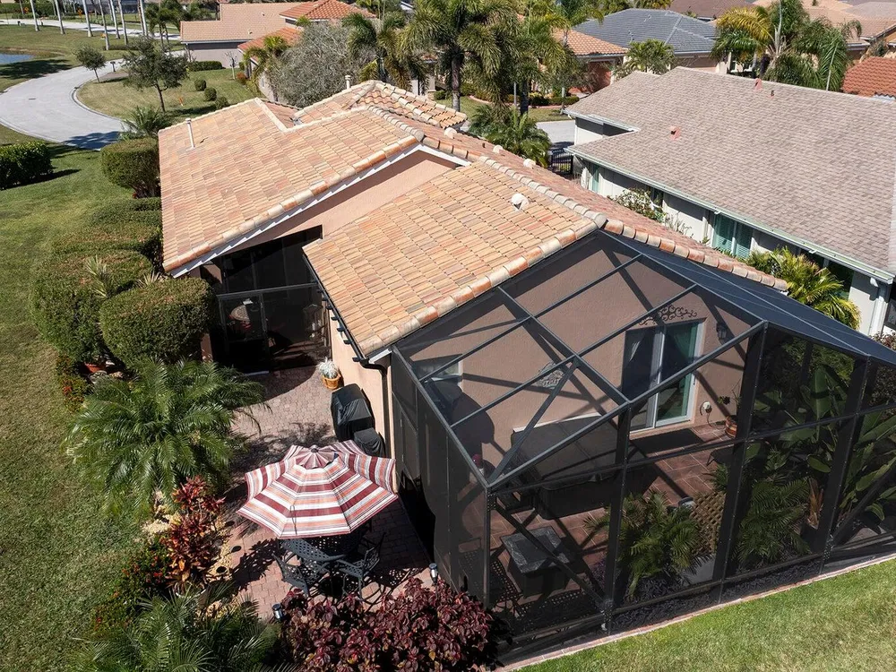 Come and explore the Old World charm of this Mediterranean style home located close to the entrance for easy access to and from the community.This 3/2 home boasts an open floor plan with voluminous 13ft ceilings which create an impressive area for living and entertaining. The elegant kitchen with double pantries, custom copper sink, granite counters. All NEW APPLIANCES/WARRANTY The owners have added thousands of dollars in renovations and upgrades inside and outside! The outside of the home has all new landscaping, side lanai has been recently screened in and the BBQ patio extended 35ft to provide plenty of space overlooking the LAKE.Additional screened in lanai with (privacy)hot tub was added to the back of the house/ master access. TONS OF STORAGE.IMPACT WINDOWS/DOORS