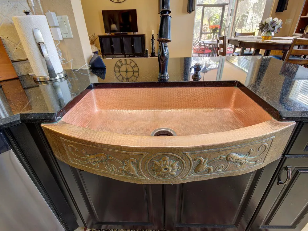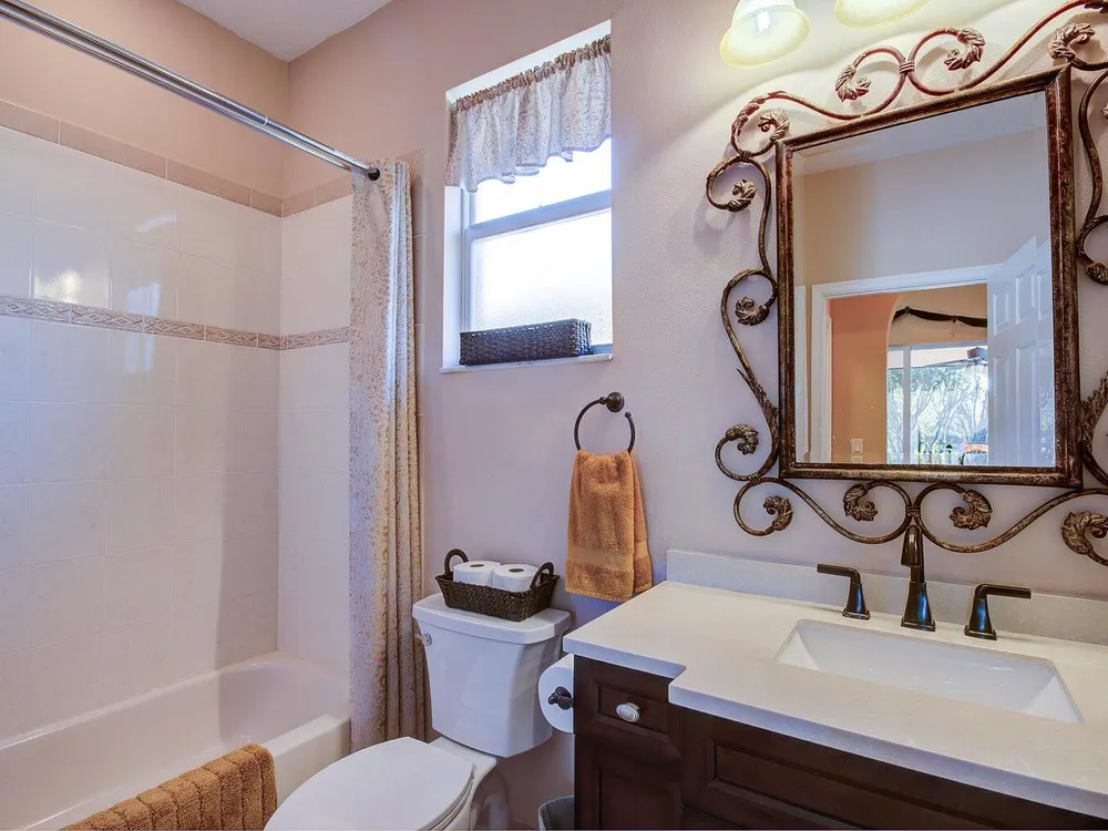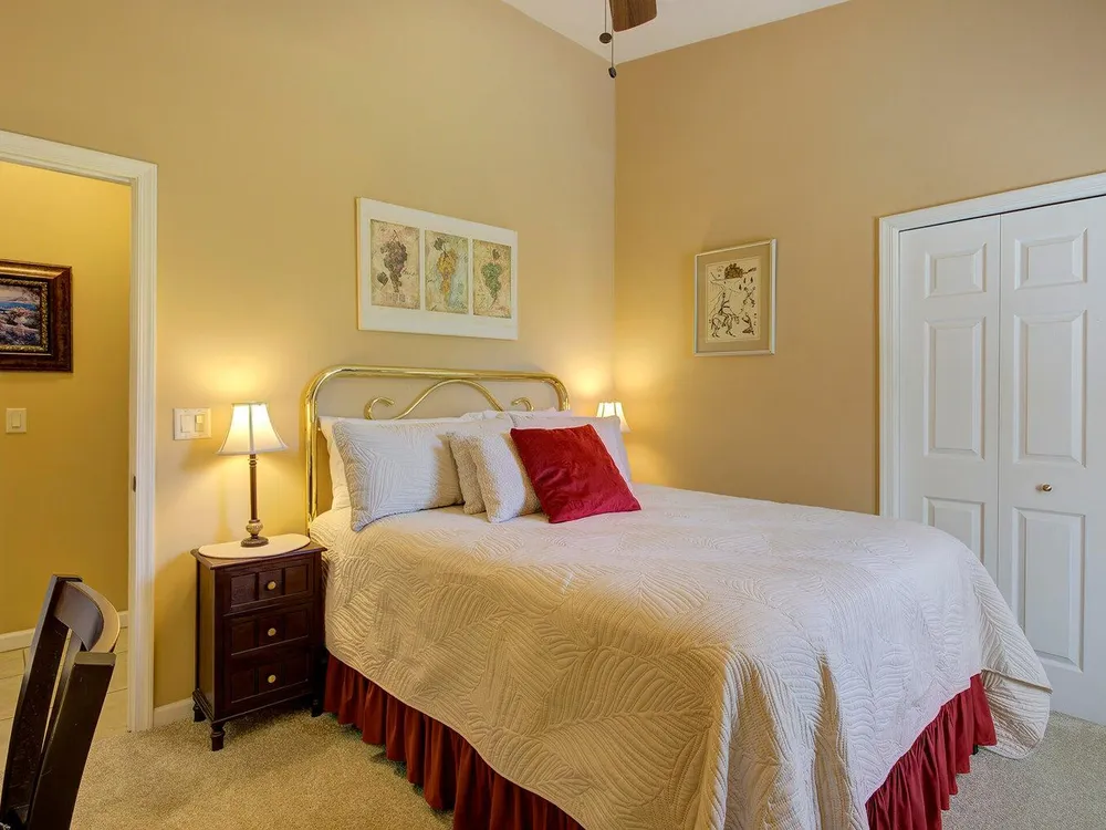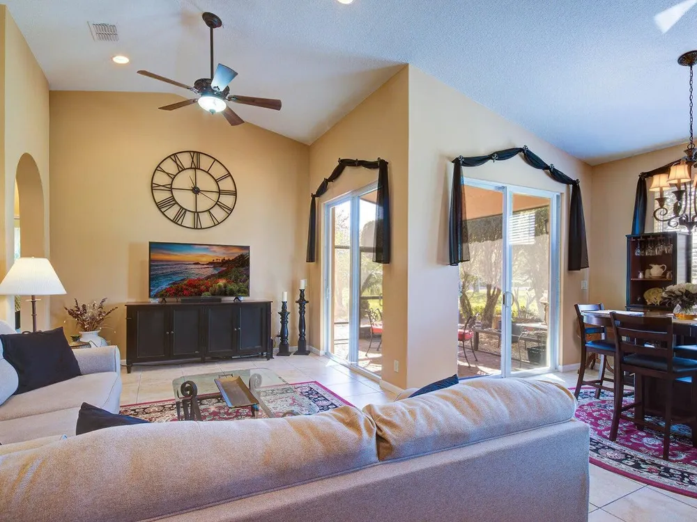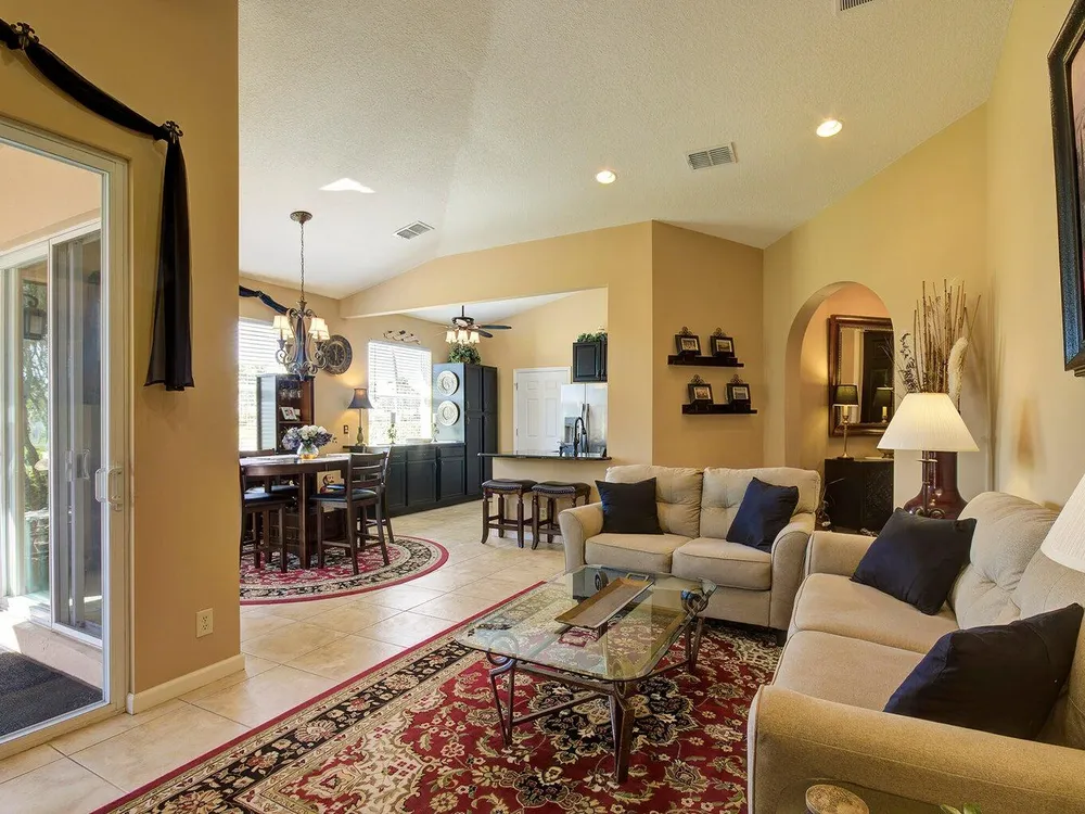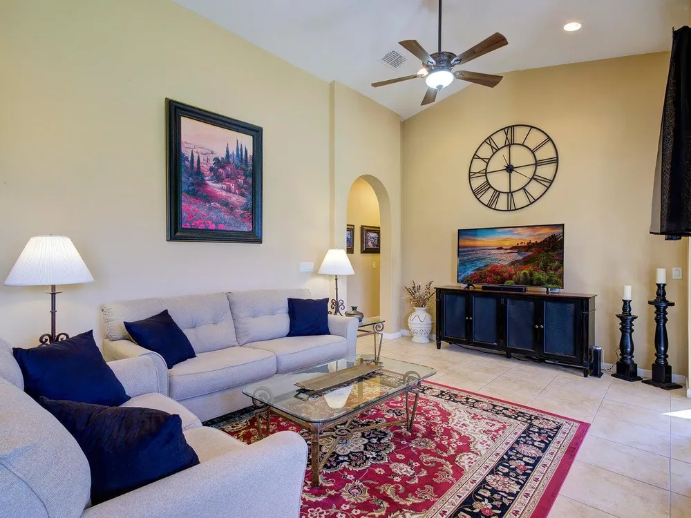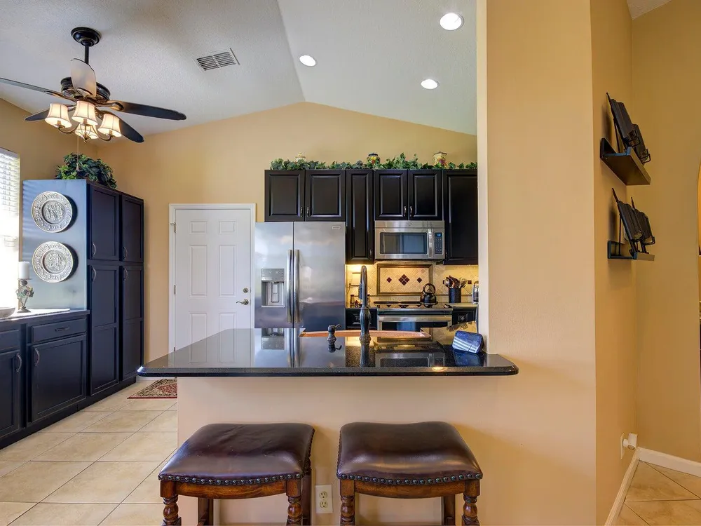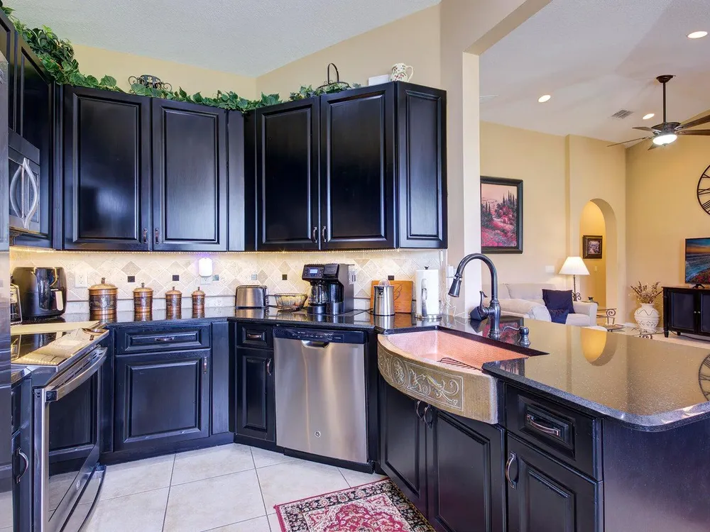Come and explore the Old World charm of this Mediterranean style home located close to the entrance for easy access to and from the community.This 3/2 home boasts an open floor plan with voluminous 13ft ceilings which create an impressive area for living and entertaining. The elegant kitchen with double pantries, custom copper sink, granite counters. All NEW APPLIANCES/WARRANTY The owners have added thousands of dollars in renovations and upgrades inside and outside! The outside of the home has all new landscaping, side lanai has been recently screened in and the BBQ patio extended 35ft to provide plenty of space overlooking the LAKE.Additional screened in lanai with (privacy)hot tub was added to the back of the house/ master access. TONS OF STORAGE.IMPACT WINDOWS/DOORS