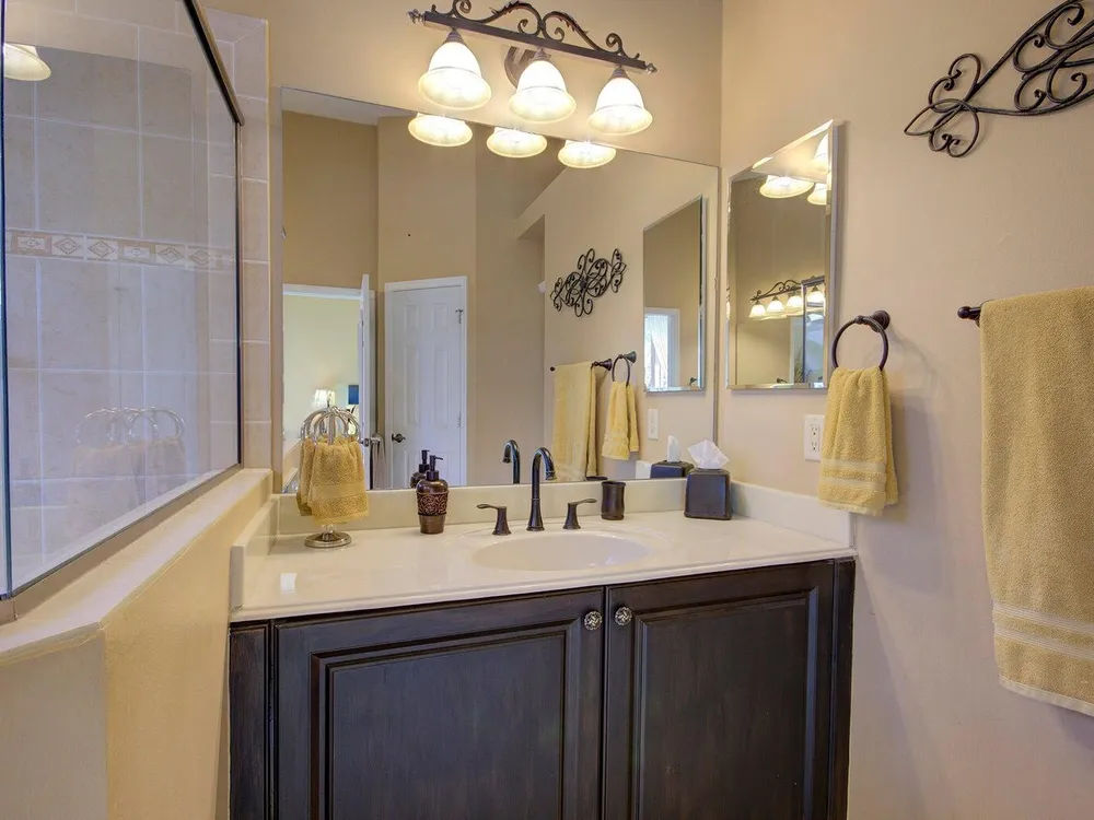 - Entry Level Living Area, Pantry, High Ceilings, Walk-In Closet(s), Attic, Dual Sinks, Primary Downstairs