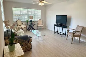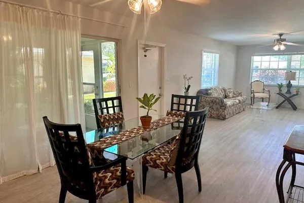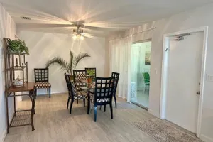 THIS CHARMING LIGHT & BRIGHT, TURNKEY, CORNER VILLA IS NICELY UPGRADED & RENOVATED. CLEAN, NEUTRAL & MOVE IN READY ! THE BIG TICKET ITEMS ARE COMPLETED FOR YOU: IMPACT WINDOWS, LUX VINYL FLOORING 2024, AC & WATER HEATER 2023, LOVELY NEWER PATIO ENCLOSURE WITH ACCORDIAN SHUTTERS. FRESHLY PAINTED, WITH NEW BLINDS. GARBAGE DISPOSAL 3/25 & ''NO'' POPCORN CEILINGS ! KITCHEN WAS UPDATED WITH WHITE RAISED PANEL CABINETRY & GRANITE TILE TOPS. THE WASHER & DRYER ARE RELOCATED TO THE HALL CLOSET ALLOWING FOR A FULL SIZE KITCHEN PANTRY PLUS A LAZY SUSAN CORNER CABINET FOR GREAT ADDITIONAL STORAGE & FUNCTIONALITY. BOTH BATHROOMS HAVE ALSO BEEN REMODELED WITH DESIGNER CABINETRY, LIGHTING & FIXTURES. THE PRIMARY SUITE IS HUGE & THE LRG WALK-IN CLOSET IS SUCH A BONUS ! EASY TO SHOW THIS MUST SEE VILLA!